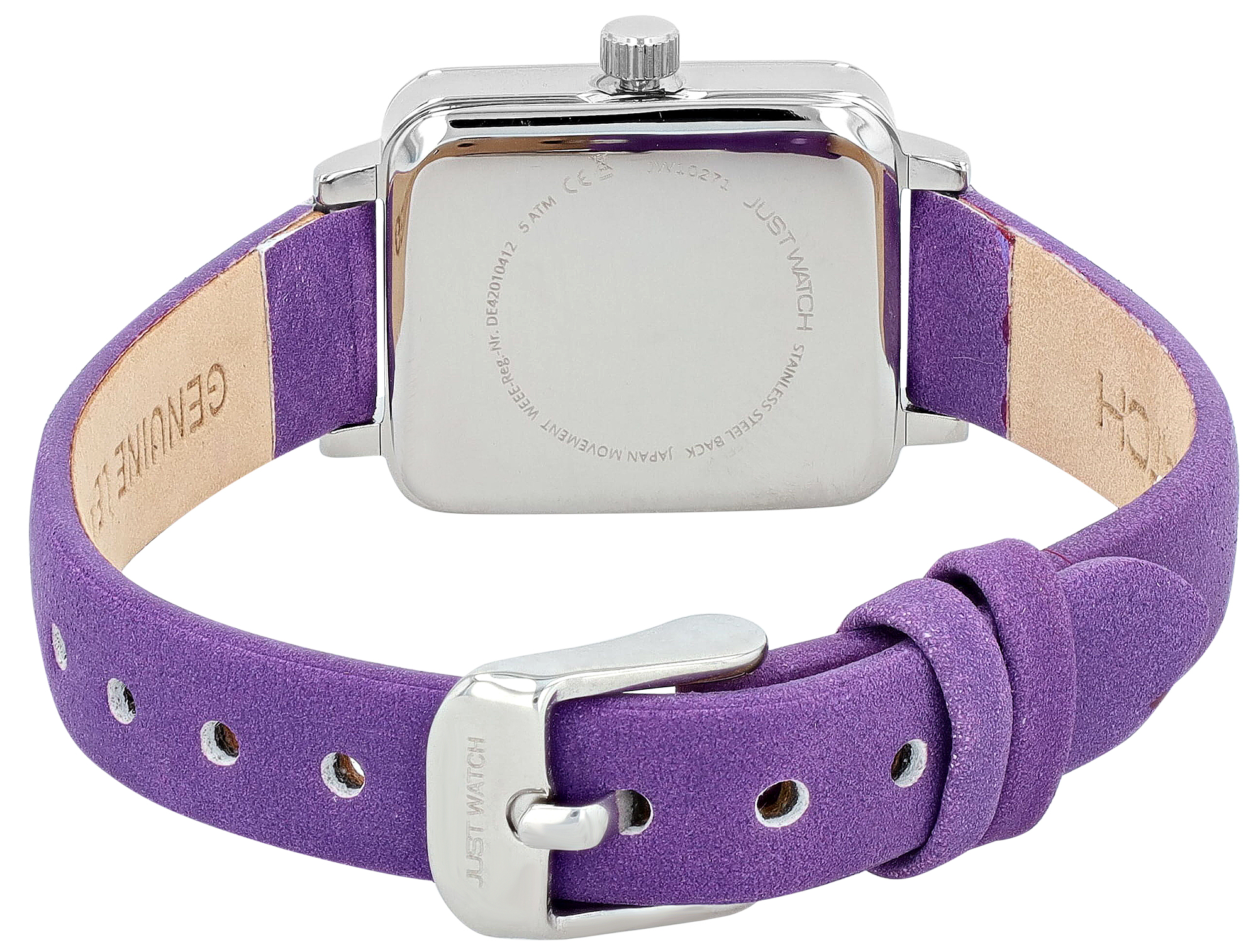 Productinformatie "JUST WATCH Damenuhr "Aveline" mit Echtlederband, eckiges Design, lila/ silberfarben"