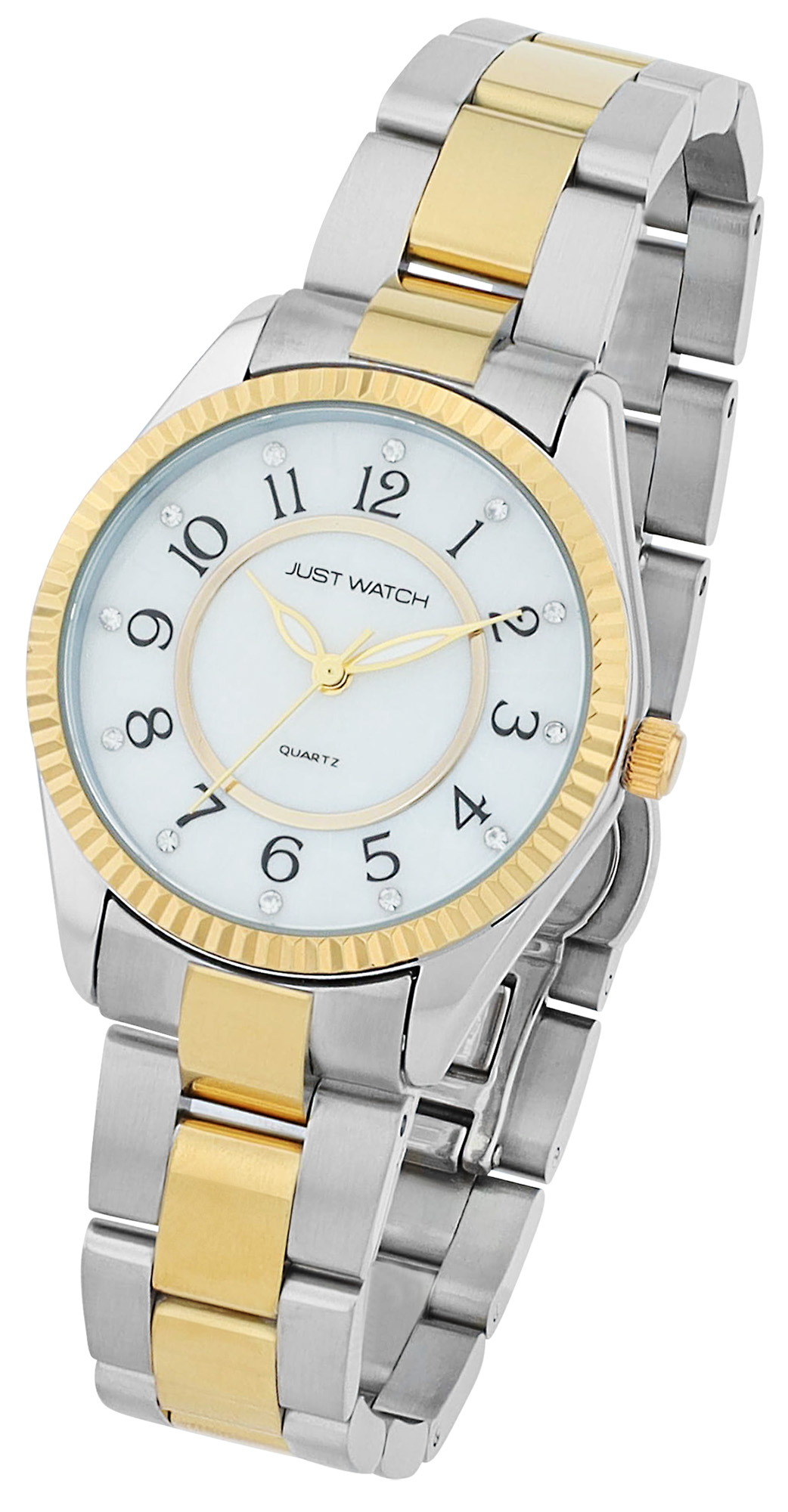 Productinformatie "JUST WATCH Damenuhr "Lunaria" mit Edelstahlband, Simili, Ø 32 mm, bicolor/ Perlmutt"