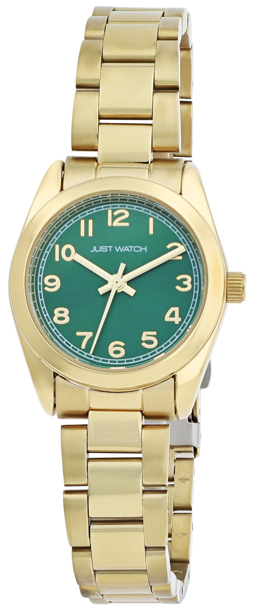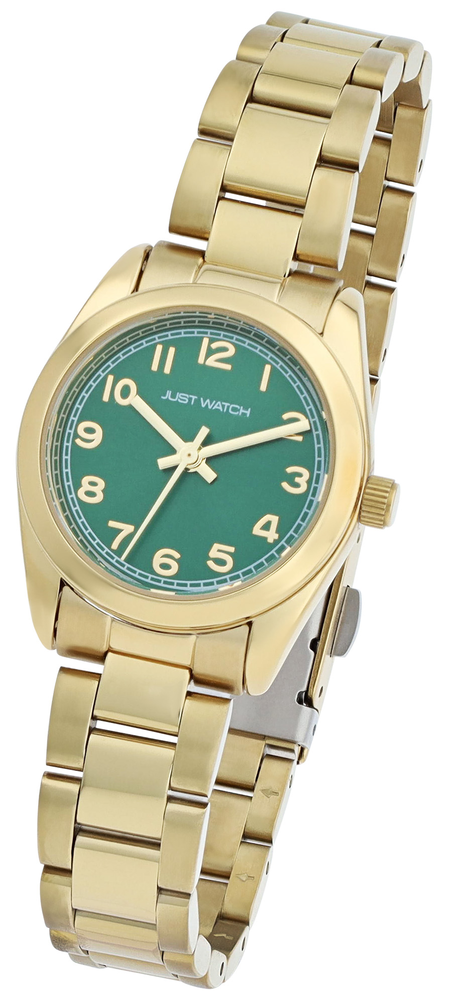 Productinformatie "JUST WATCH Damenuhr "Mathilda" mit Edelstahlarmband, Ø28 mm, goldfarben/grün, 5ATM"