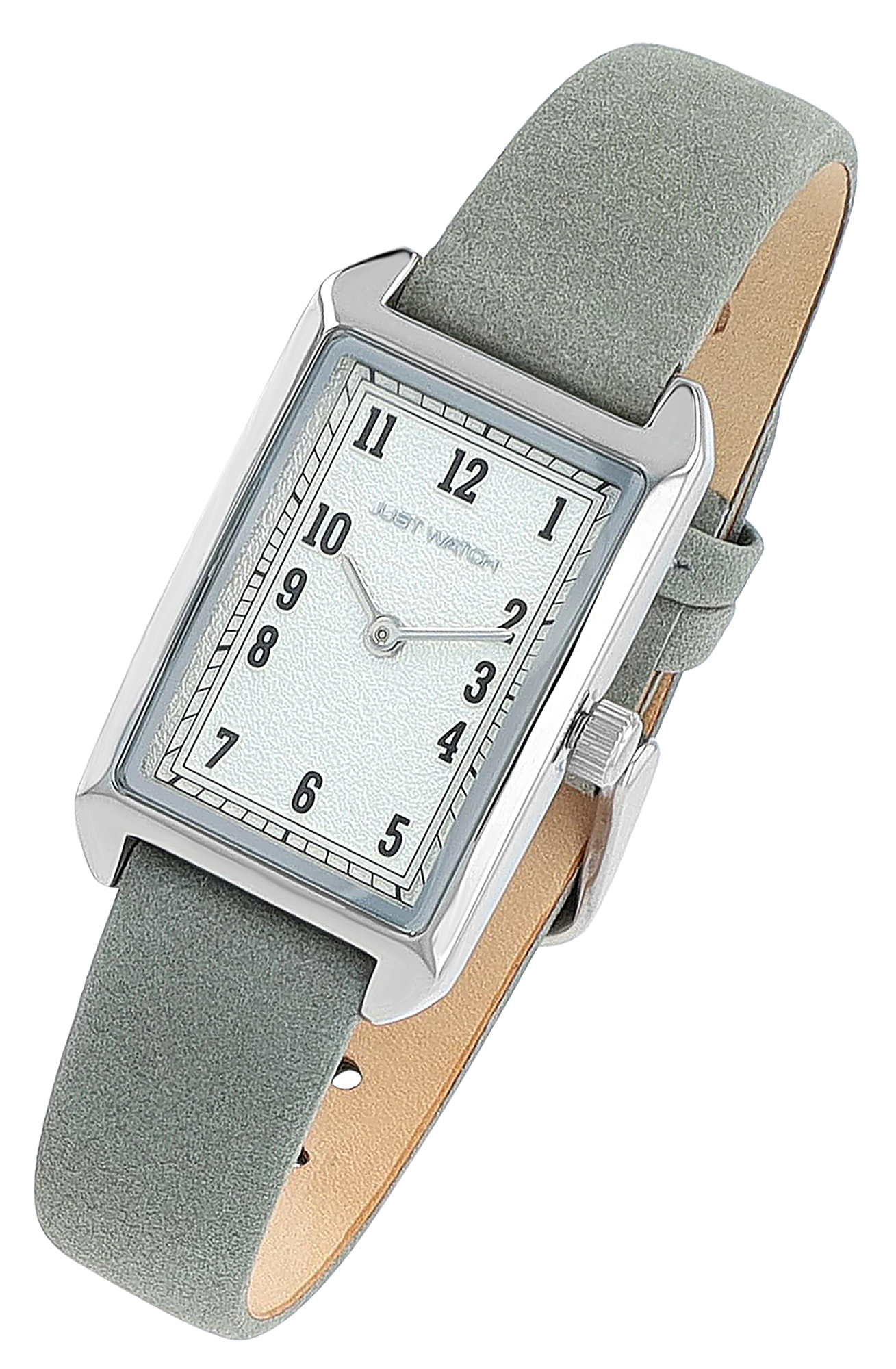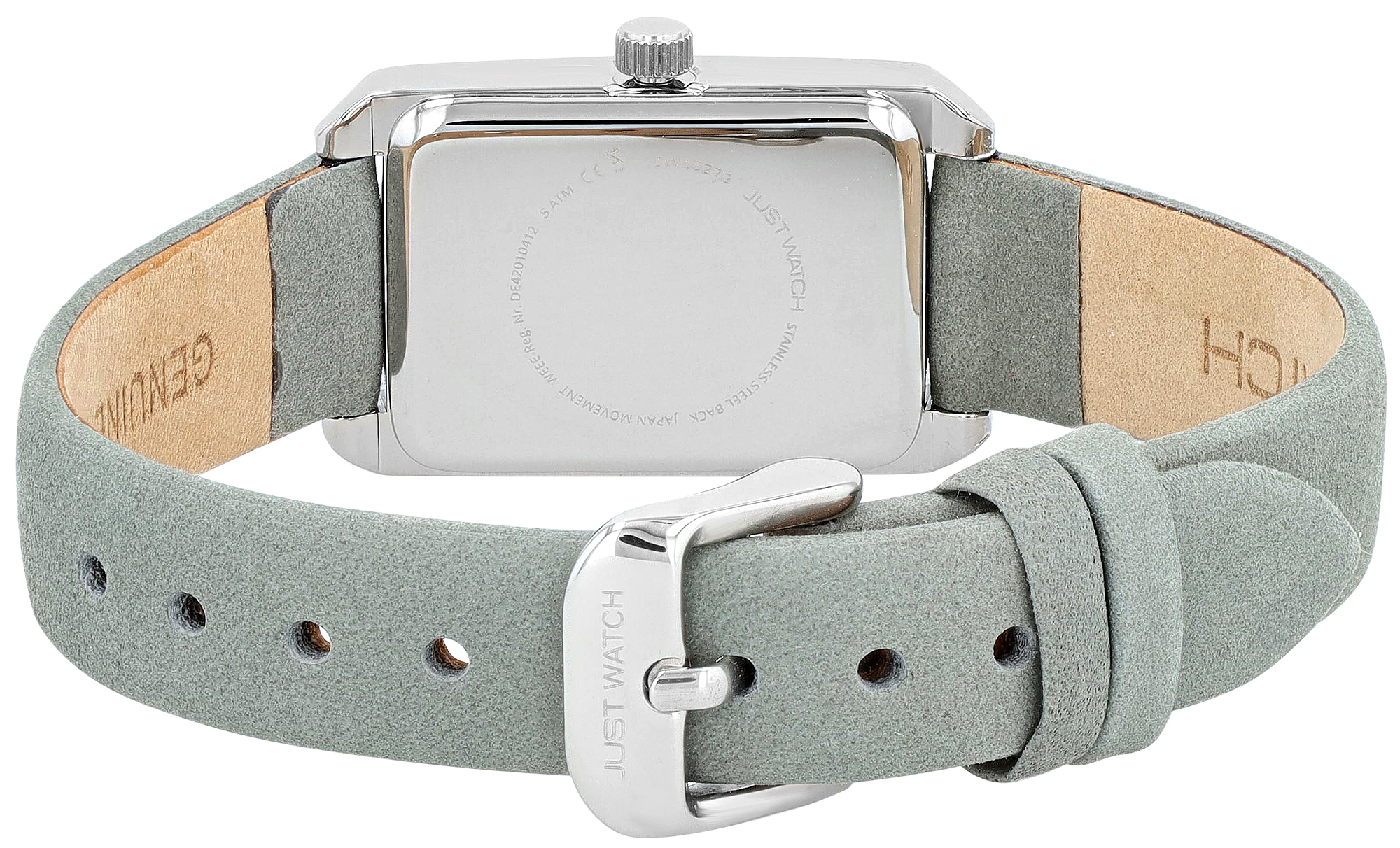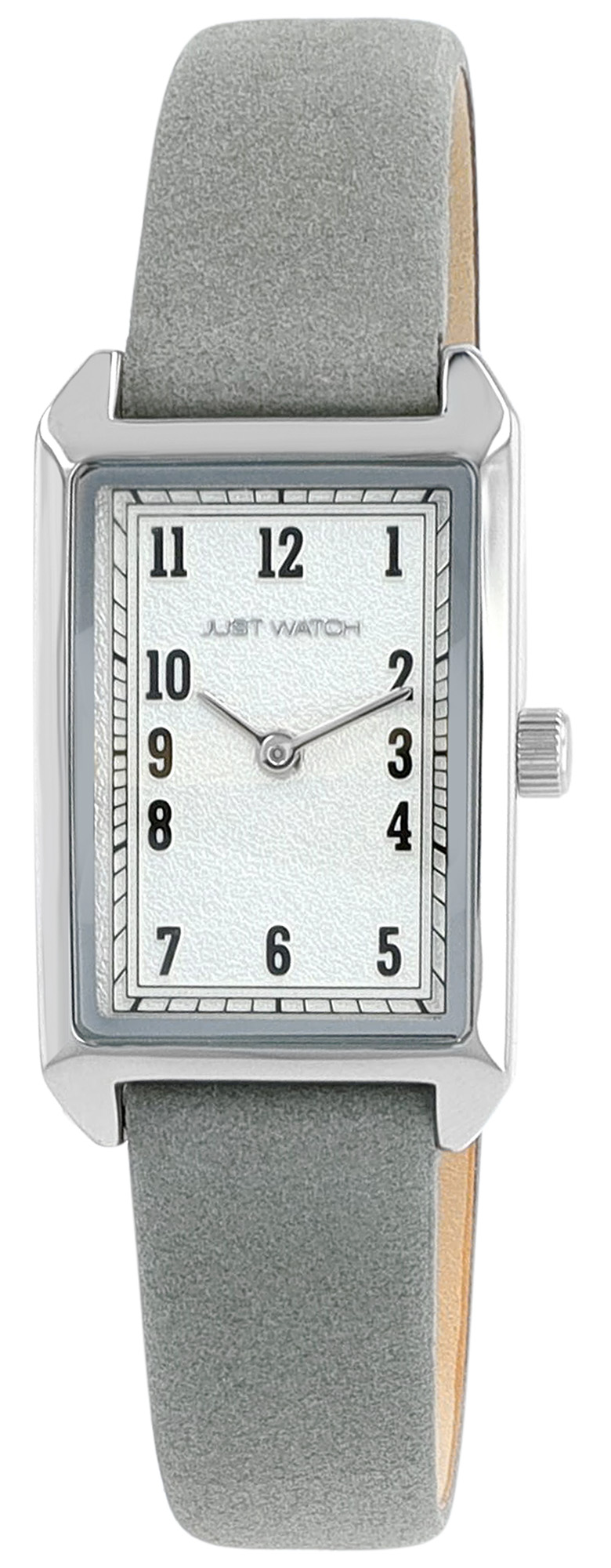 Productinformatie "JUST WATCH Damenuhr "Mireya" mit Echtlederband, eckiges Design, grau/ silberfarben"
