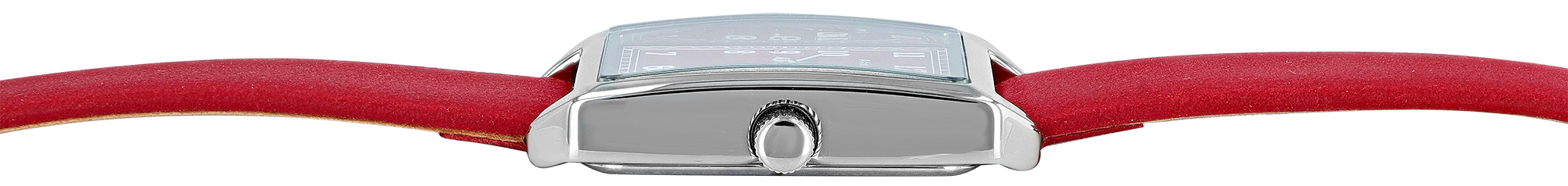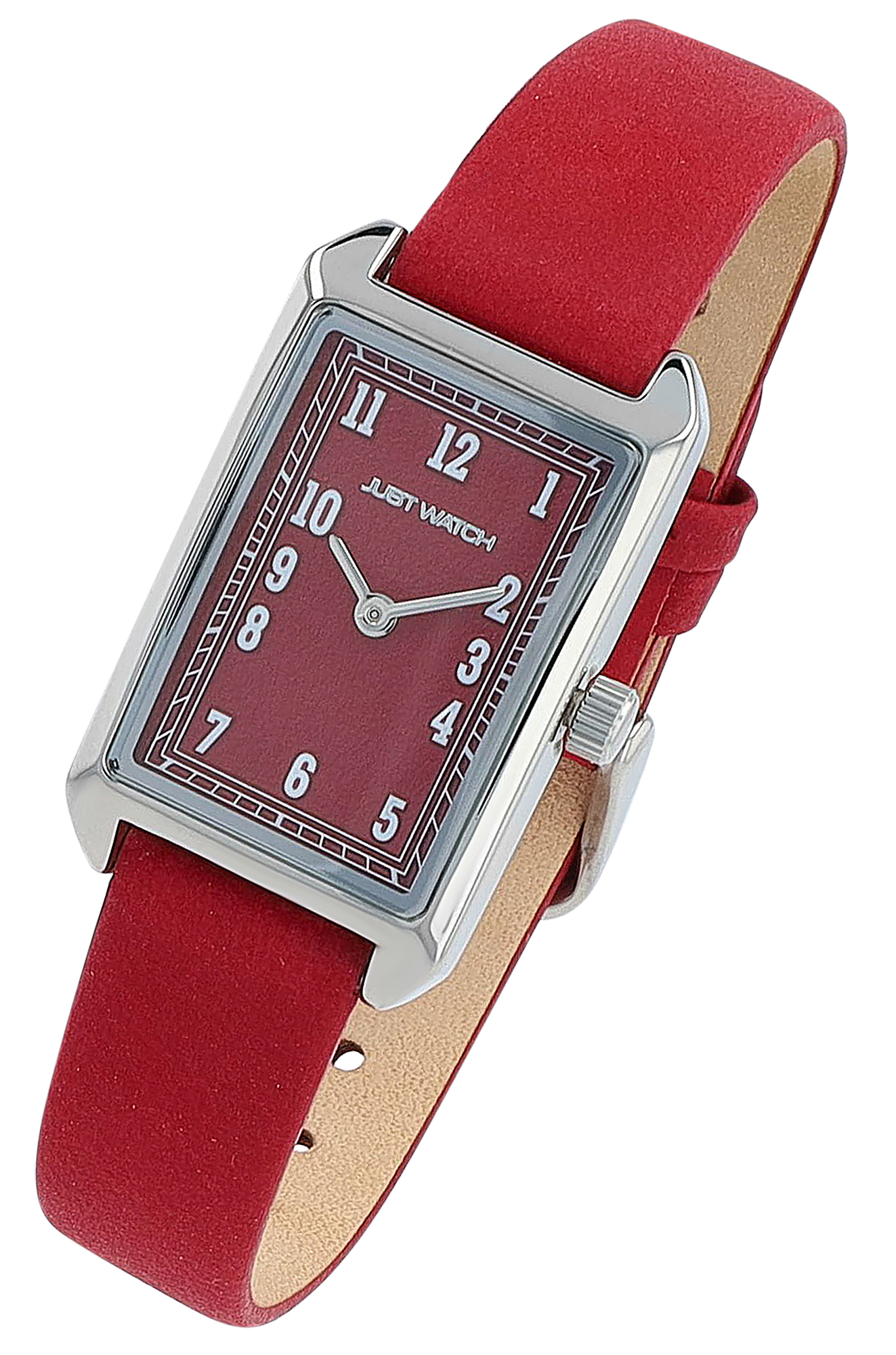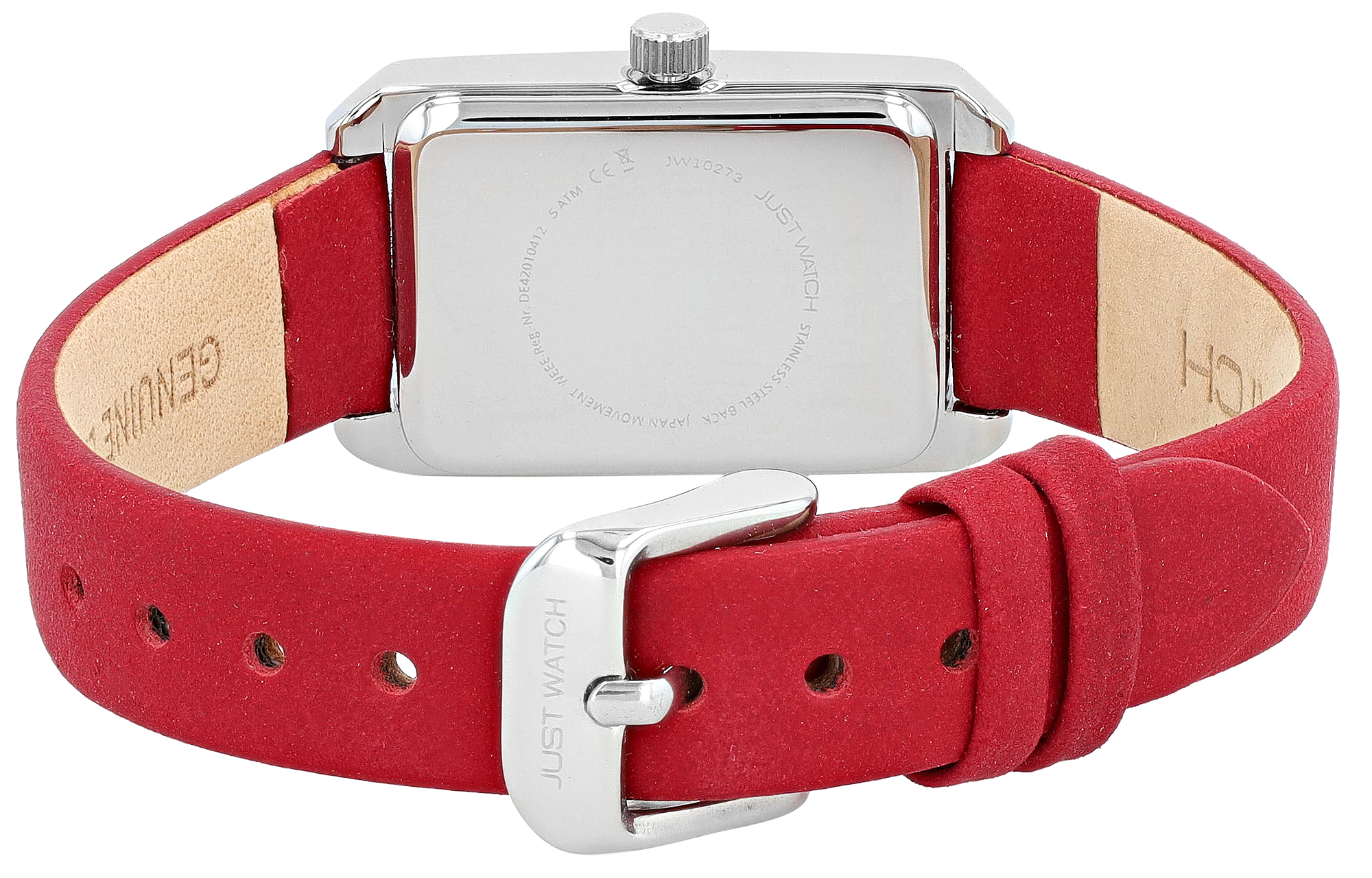 Productinformatie "JUST WATCH Damenuhr "Mireya" mit Echtlederband, eckiges Design, rot/ silberfarben"