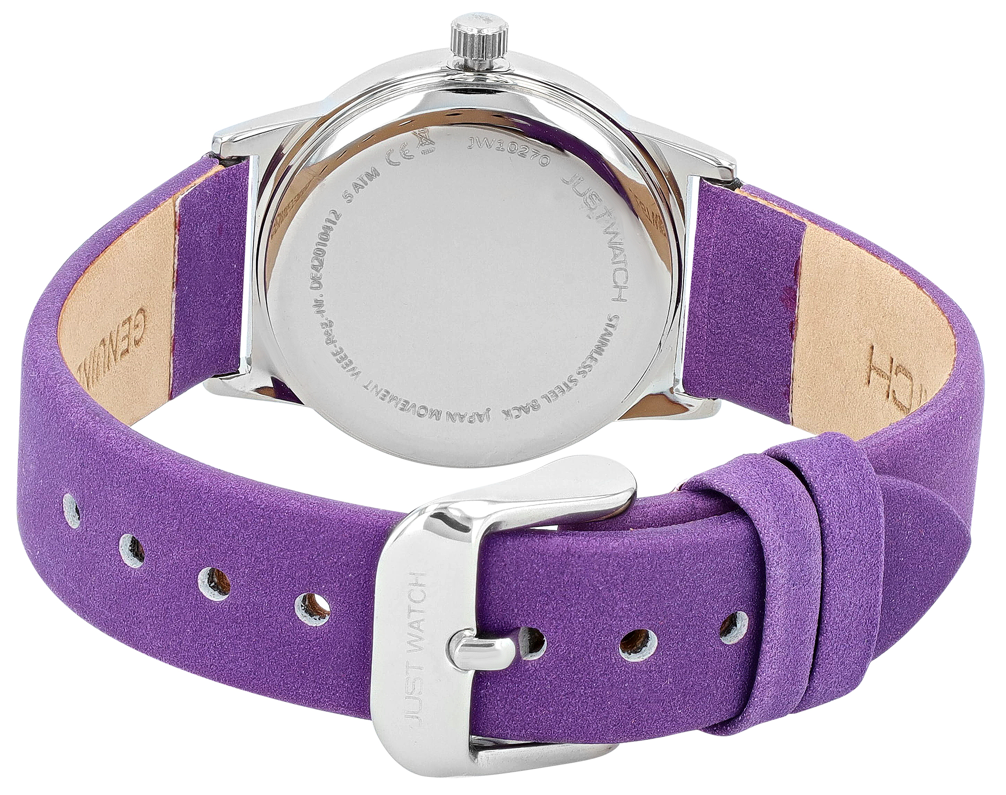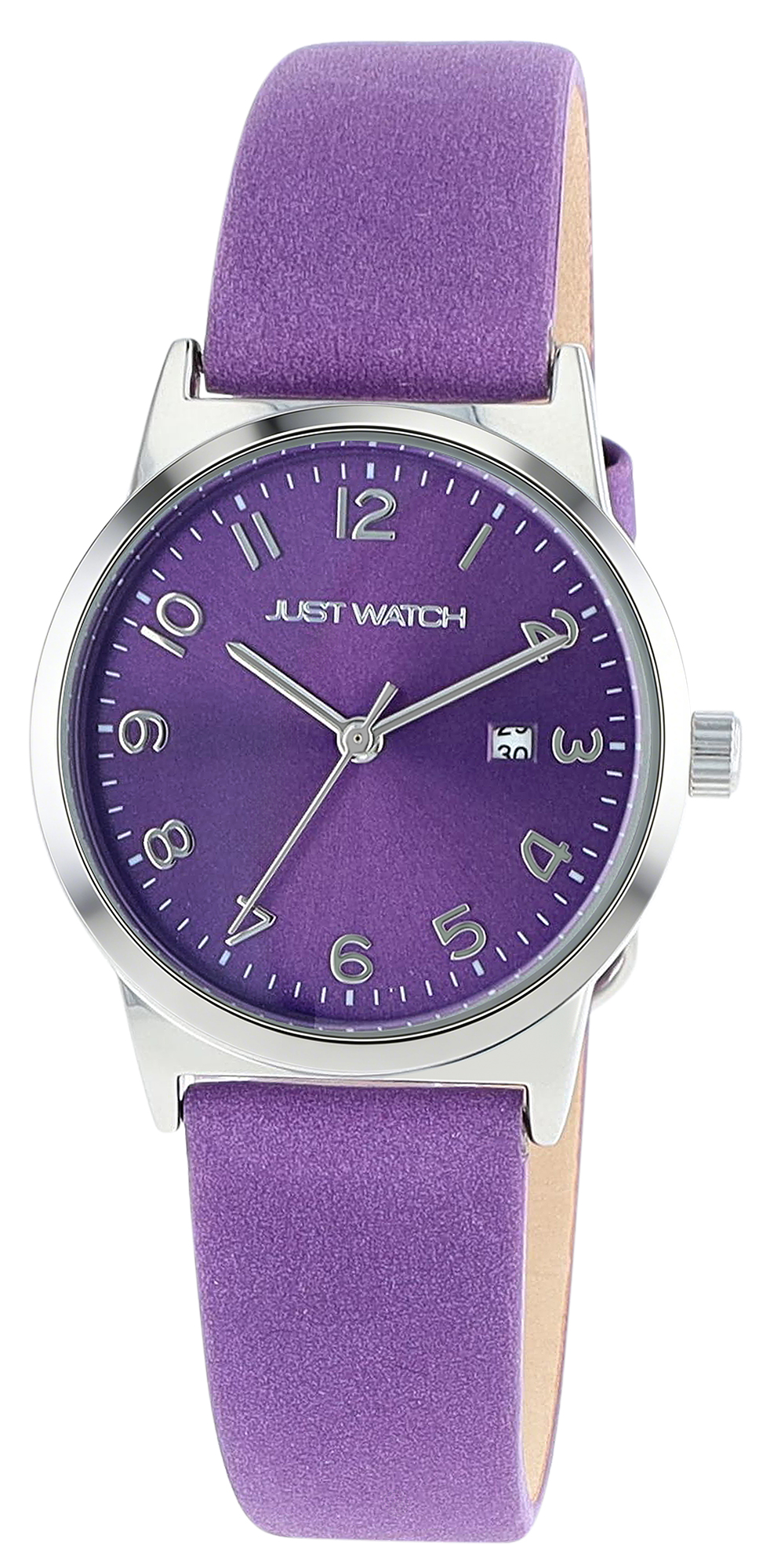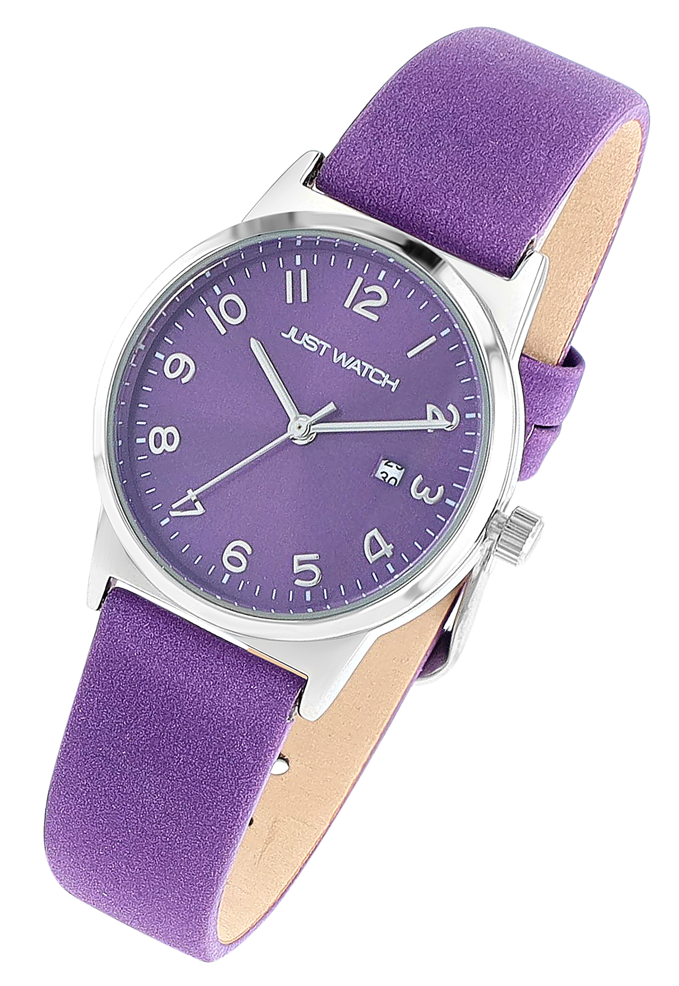 Productinformatie "JUST WATCH Damenuhr "Naia" mit Echtlederband, Ø 30 mm, lila/ silberfarben"