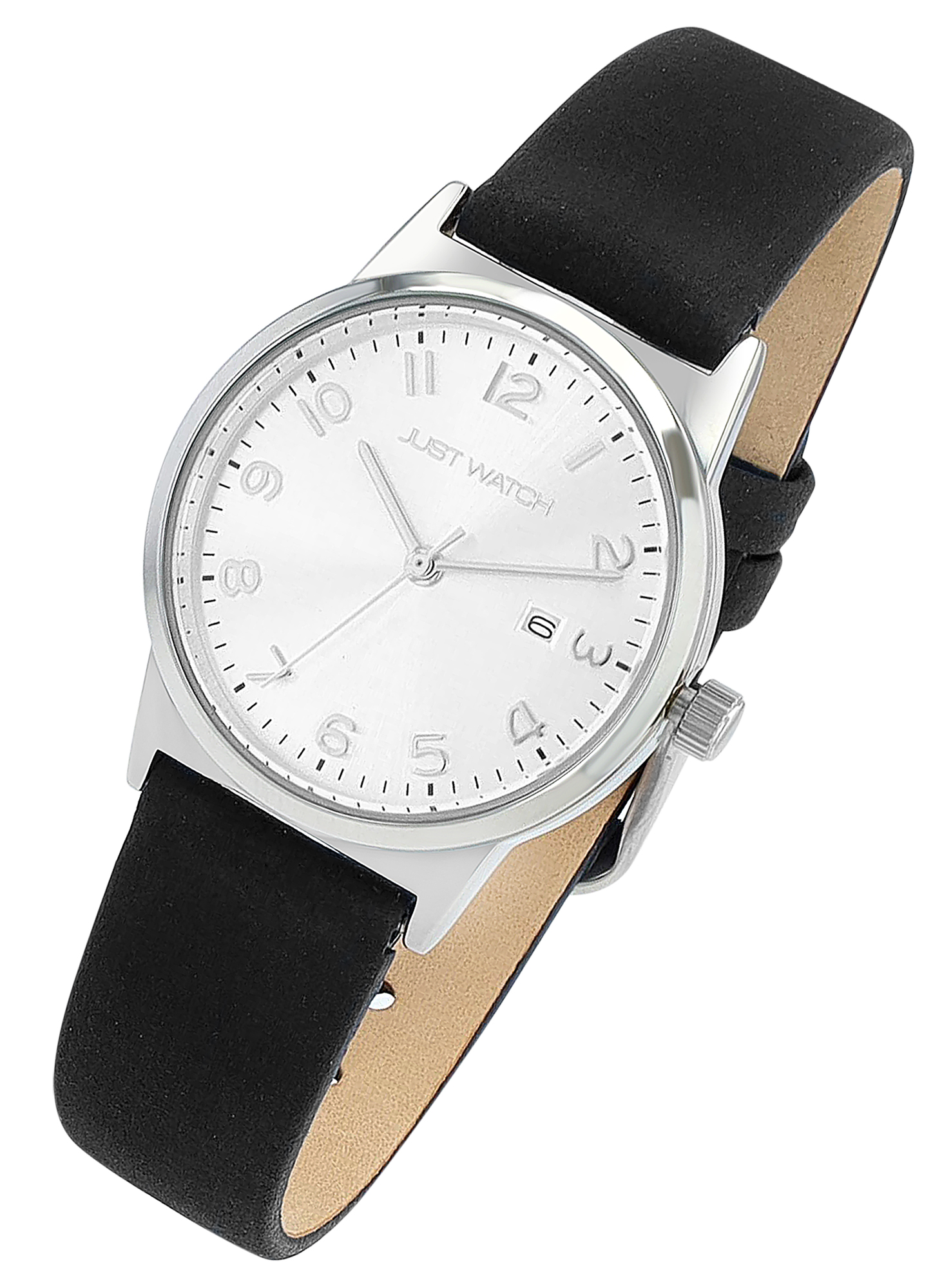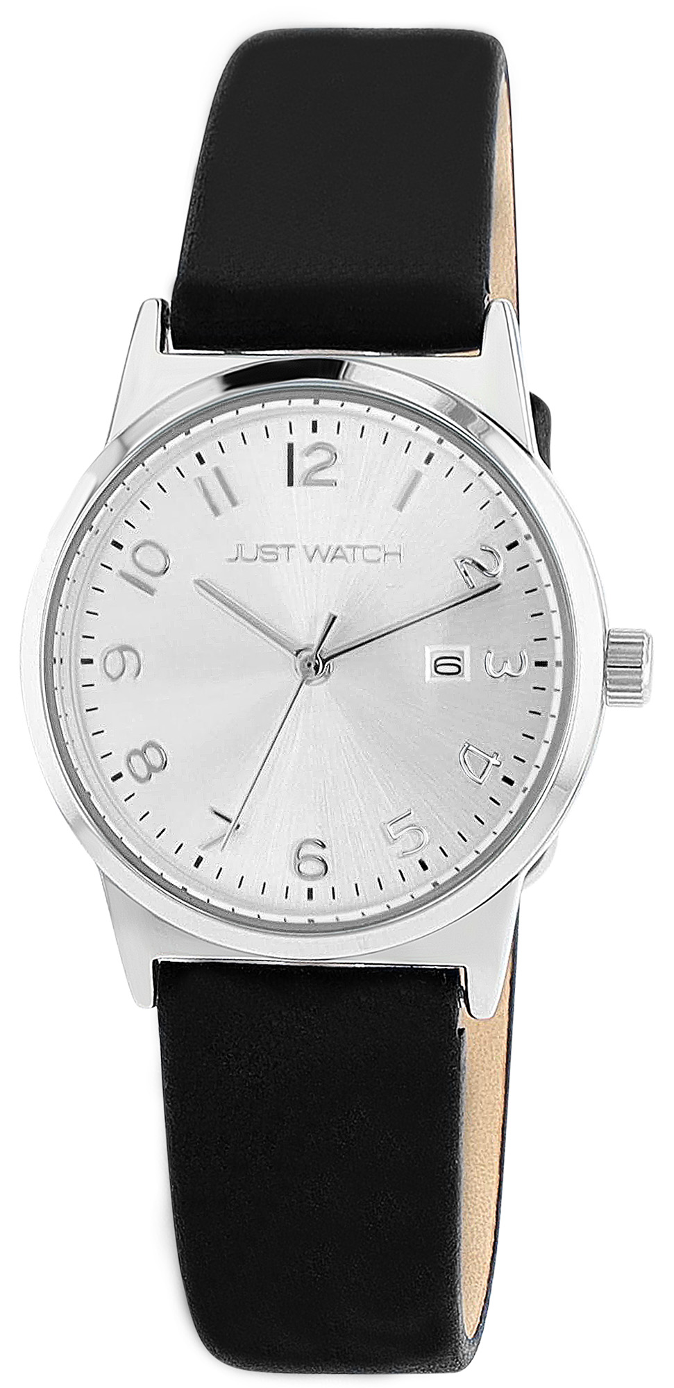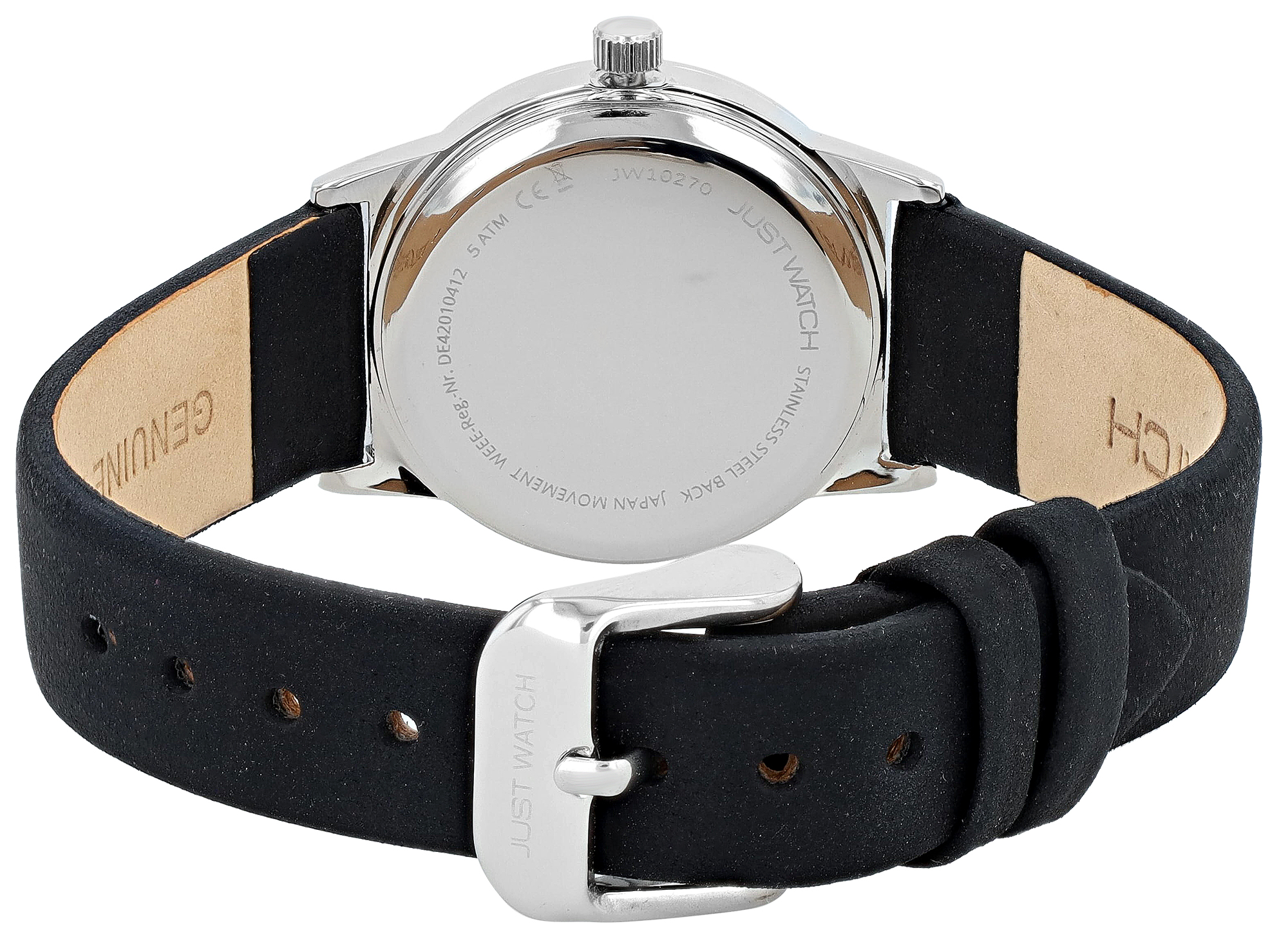 Productinformatie "JUST WATCH Damenuhr "Naia" mit Echtlederband, Ø 30 mmm schwarz/ silberfarben"