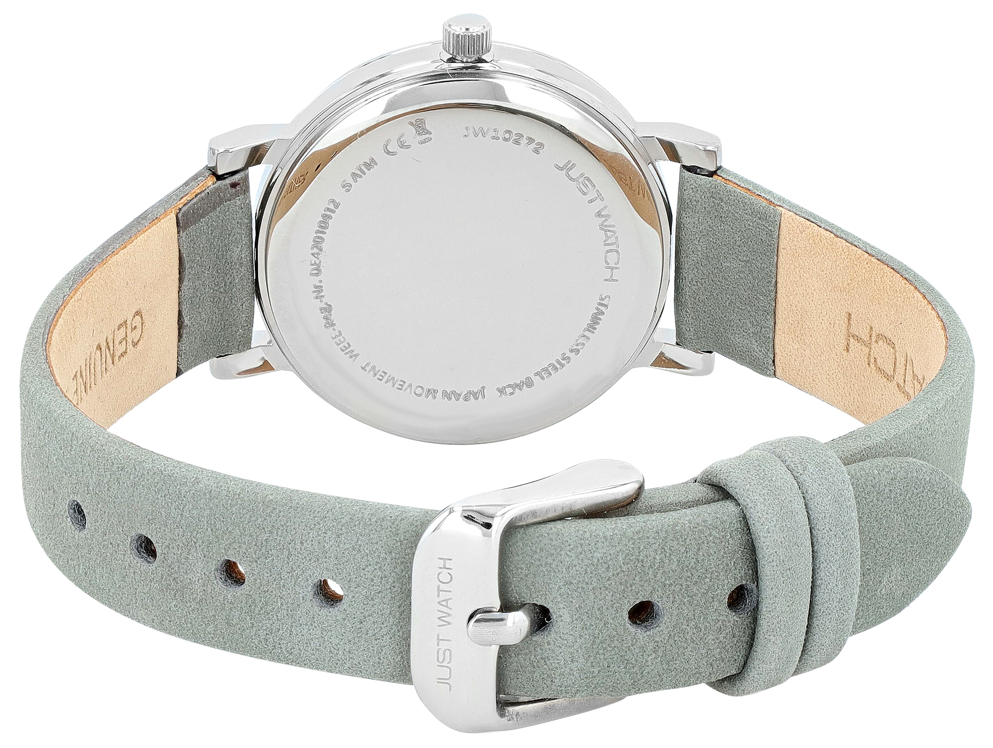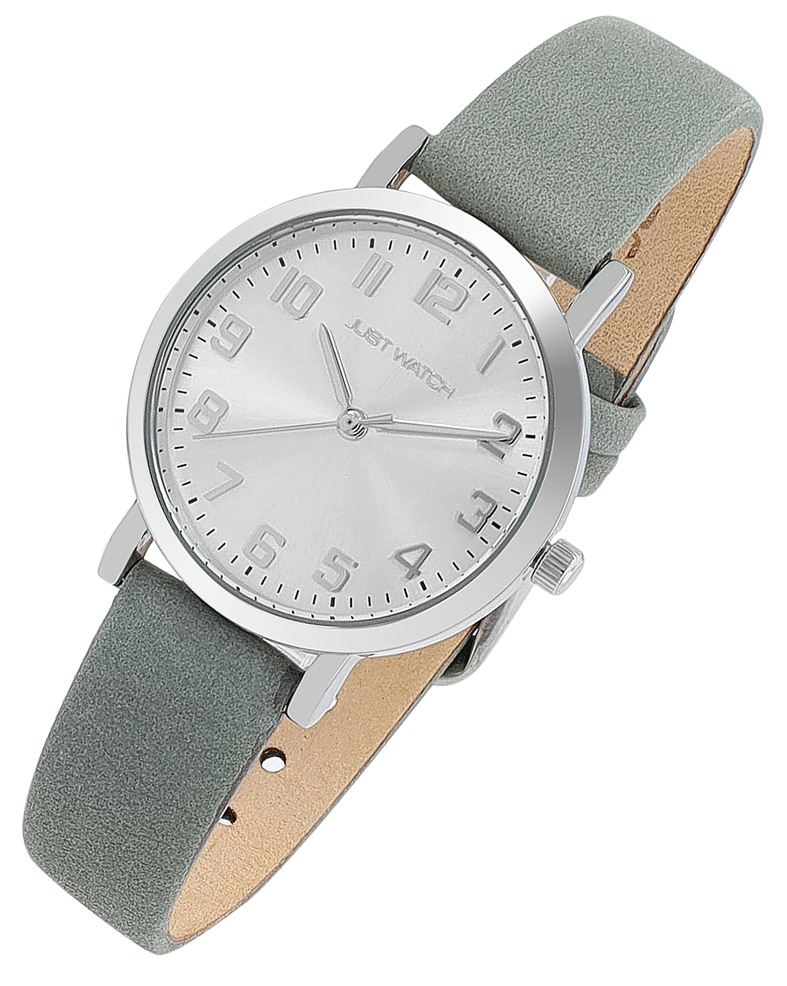 Productinformatie "JUST WATCH Damenuhr "Sana" mit Echtlederband, Ø 30 mm, grau/ silberfarben"