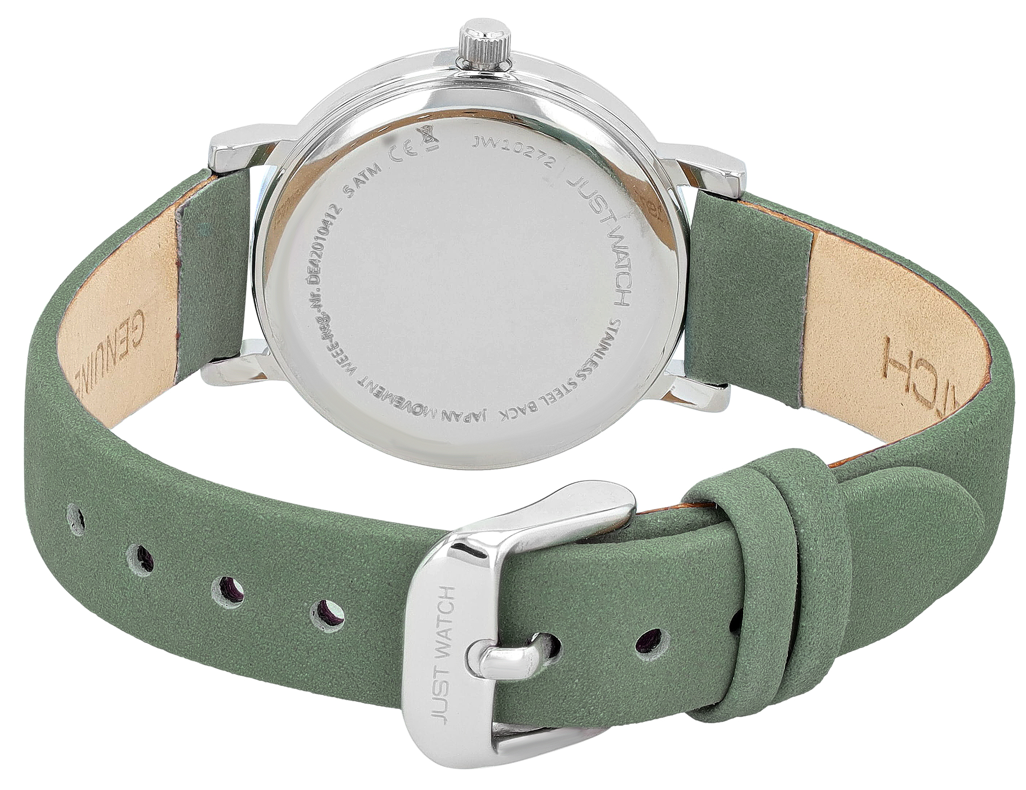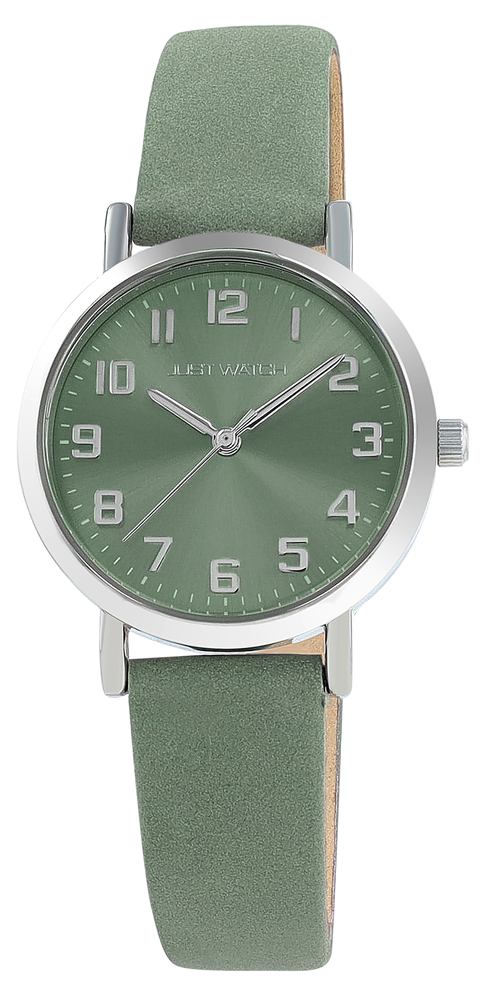 Productinformatie "JUST WATCH Damenuhr "Sana" mit Echtlederband, Ø 30 mm, salbeigrün/ silberfarben"