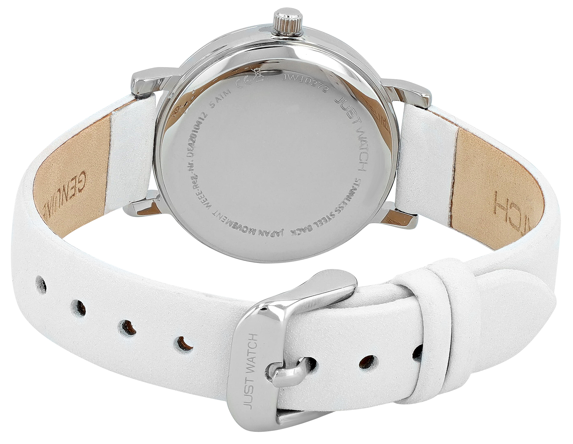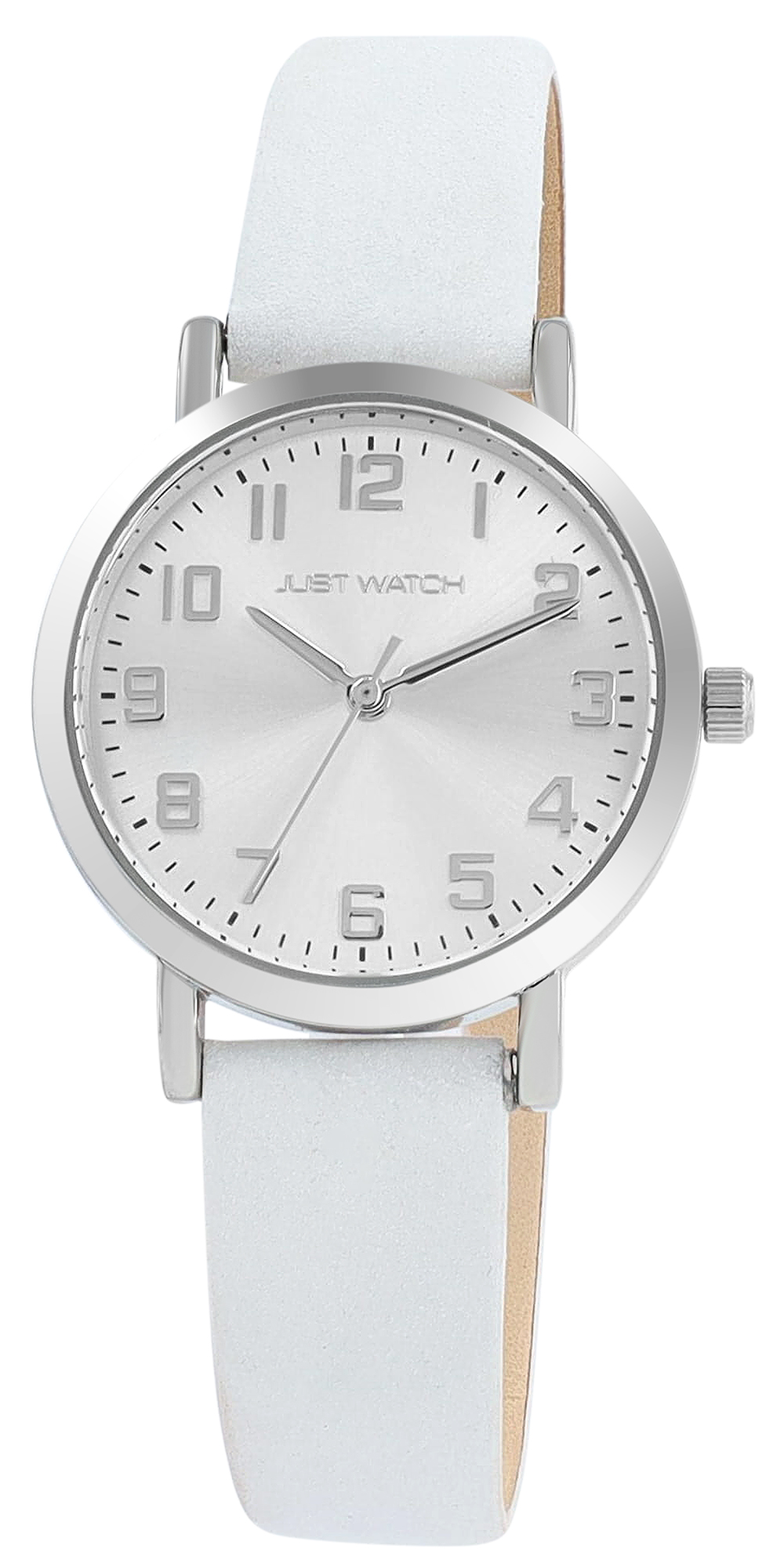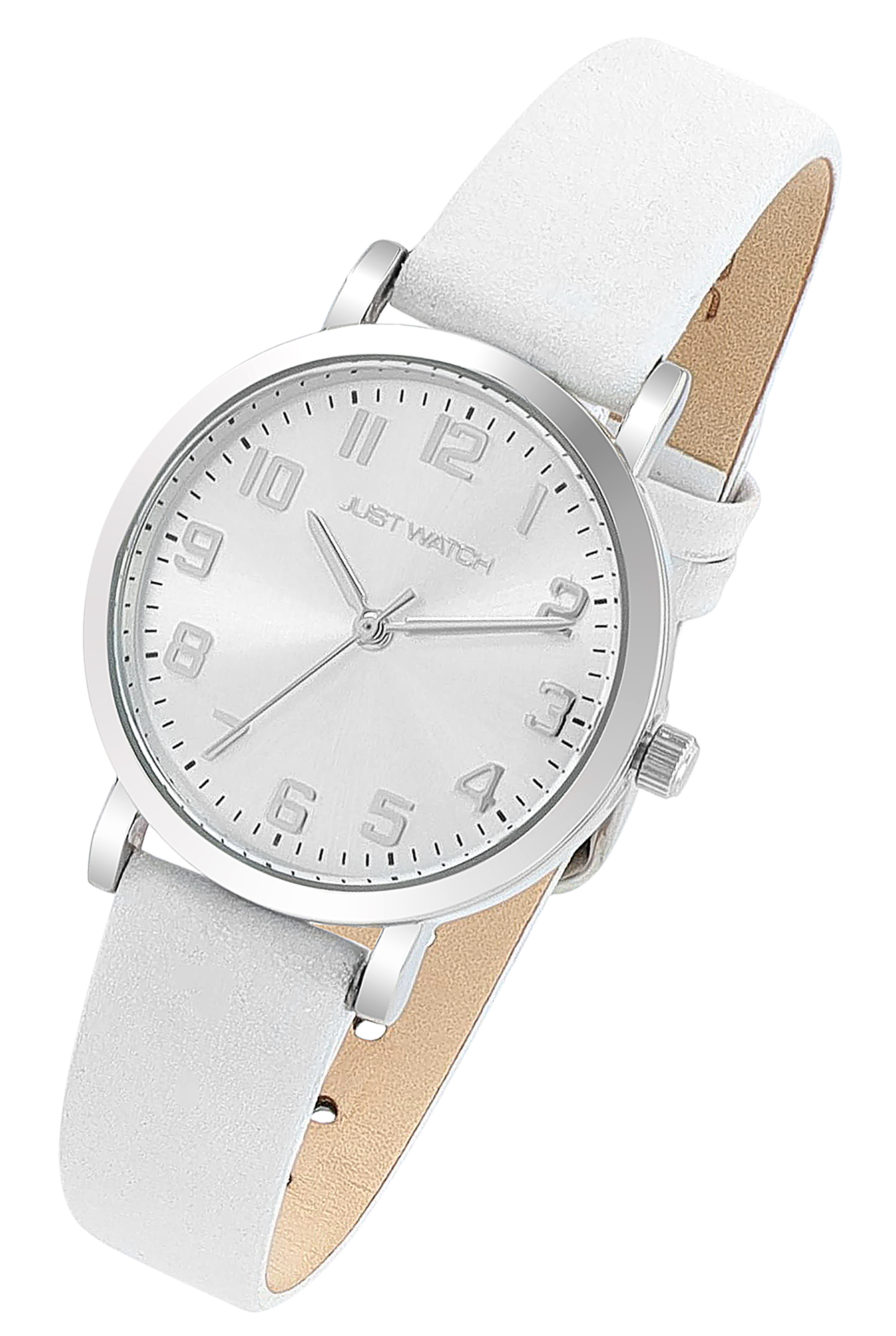 Productinformatie "JUST WATCH Damenuhr "Sana" mit Echtlederband, Ø 30 mm, weiß/ silberfarben"
