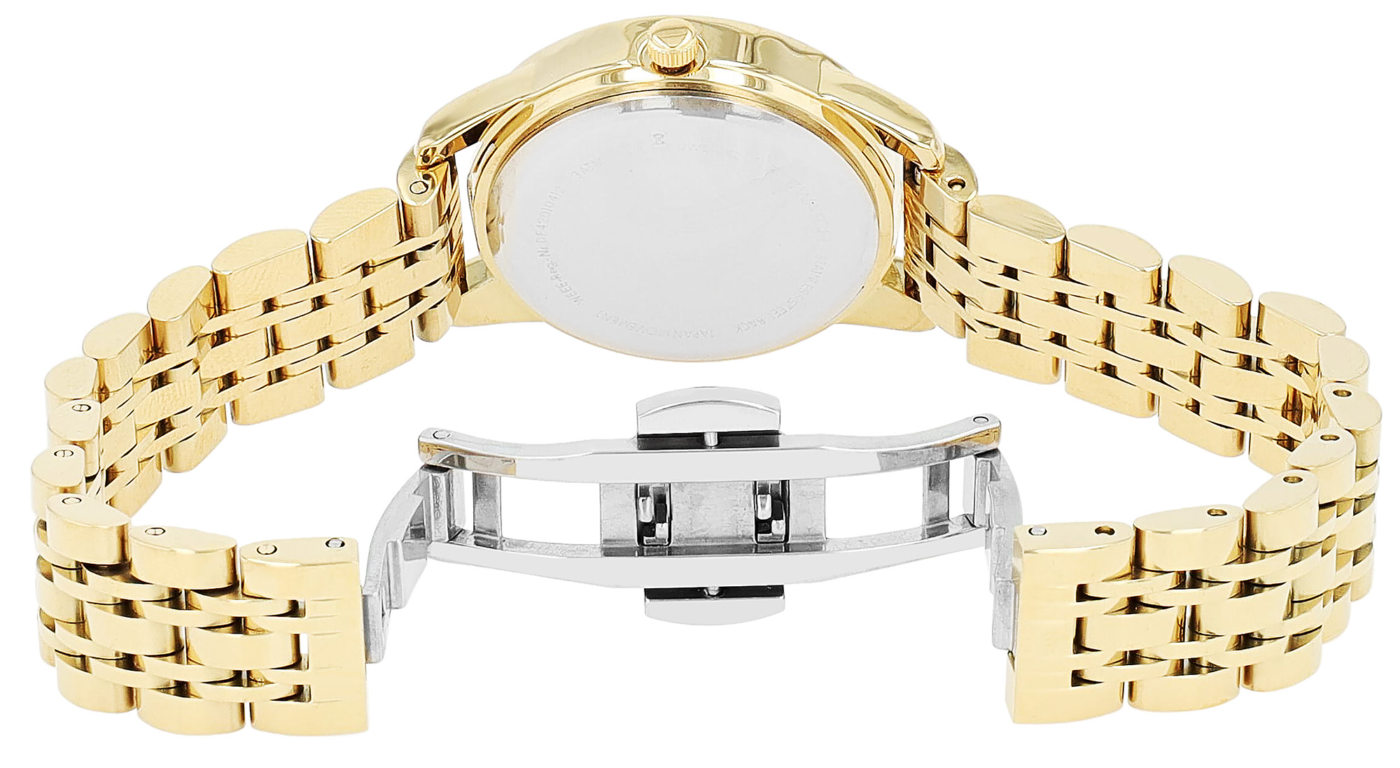 De hoogwaardige roestvrijstalen schakelarmband met een brugbreedte van 14 mm zorgt voor een comfortabele pasvorm en wordt stevig om de pols bevestigd met een praktische vlindersluiting. De totale lengte van het horloge is 20 cm.