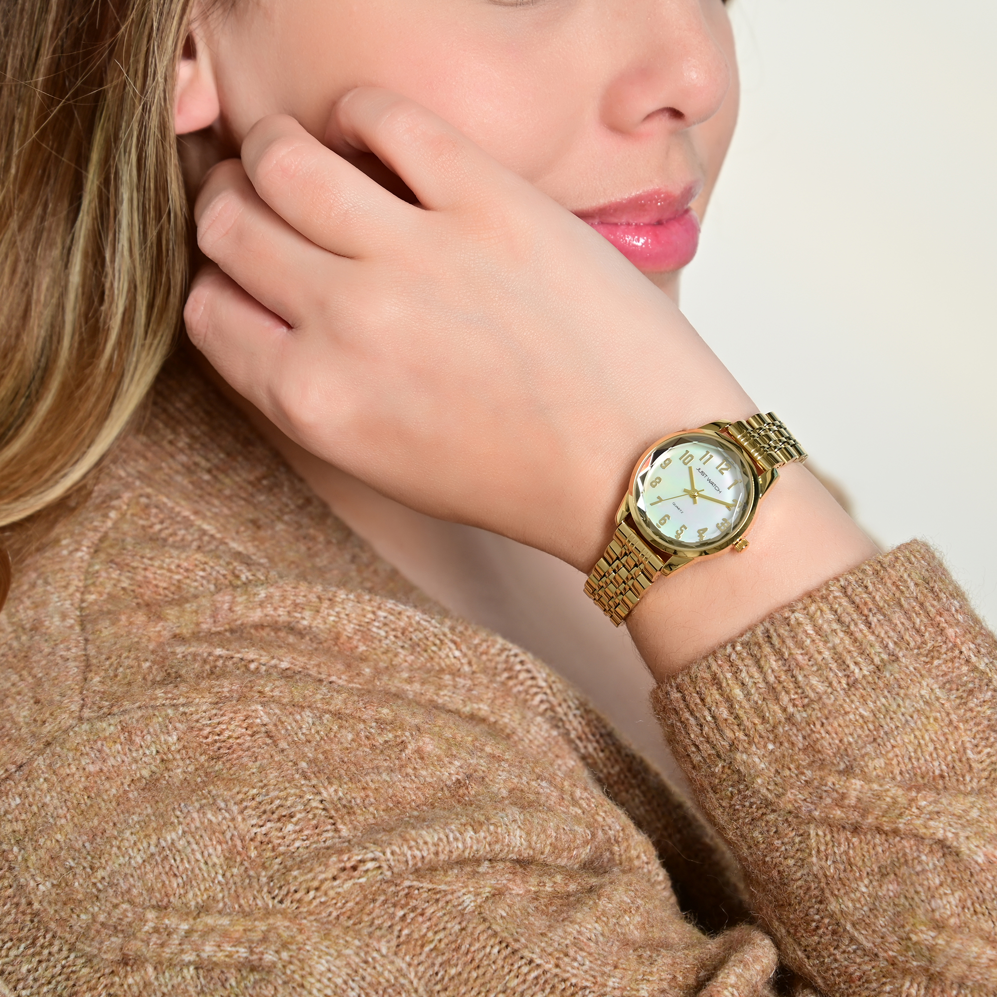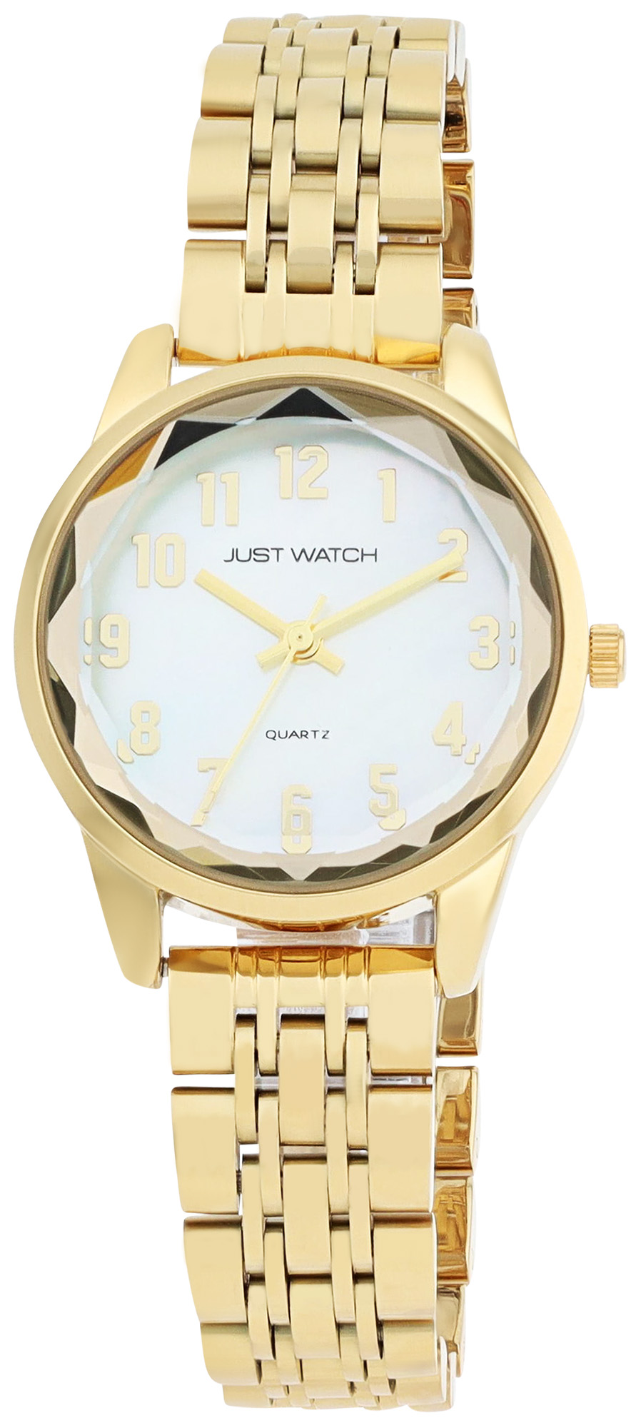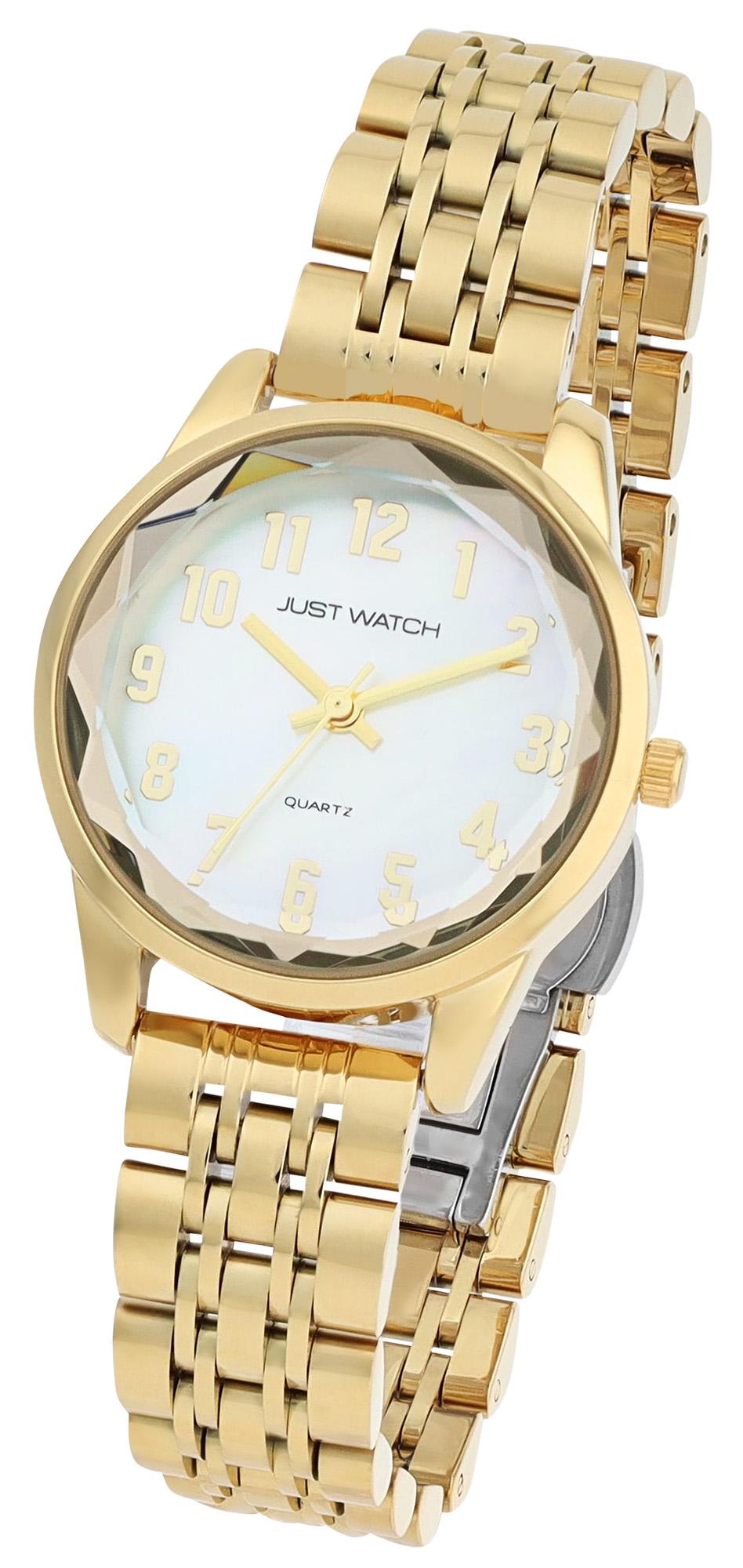 Productinformatie "JUST WATCH Damenuhr "Valentia" mit Edelstahlband, Ø 30 mm, goldfarben/ Perlmutt"