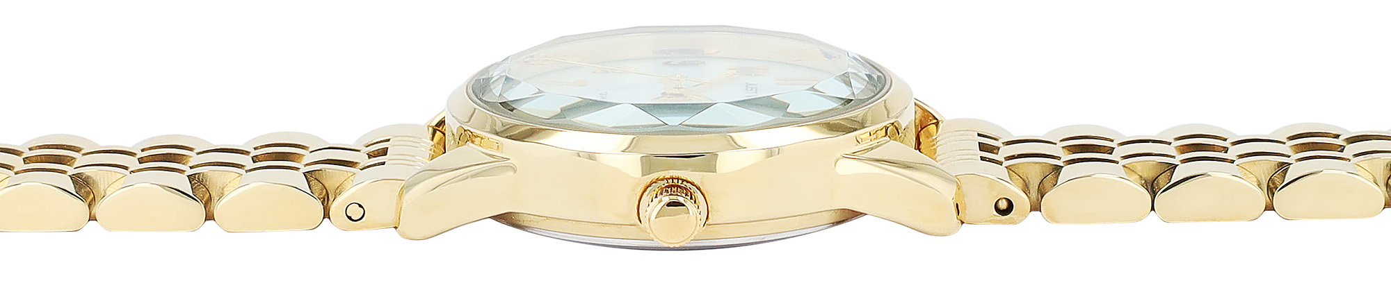 In de ronde kast met een diameter van 30 mm zit een gehard mineraalglas. Een bijzonder detail is de facetgeslepen snede van het mineraalglas, dat het licht op een unieke manier breekt en het horloge een elegante en sprankelende look geeft.