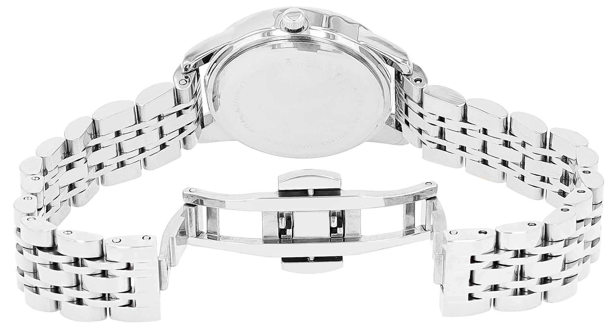 De hoogwaardige roestvrijstalen schakelarmband met een brugbreedte van 14 mm zorgt voor een comfortabele pasvorm en wordt stevig om de pols bevestigd met een praktische vlindersluiting. De totale lengte van het horloge is 20 cm.