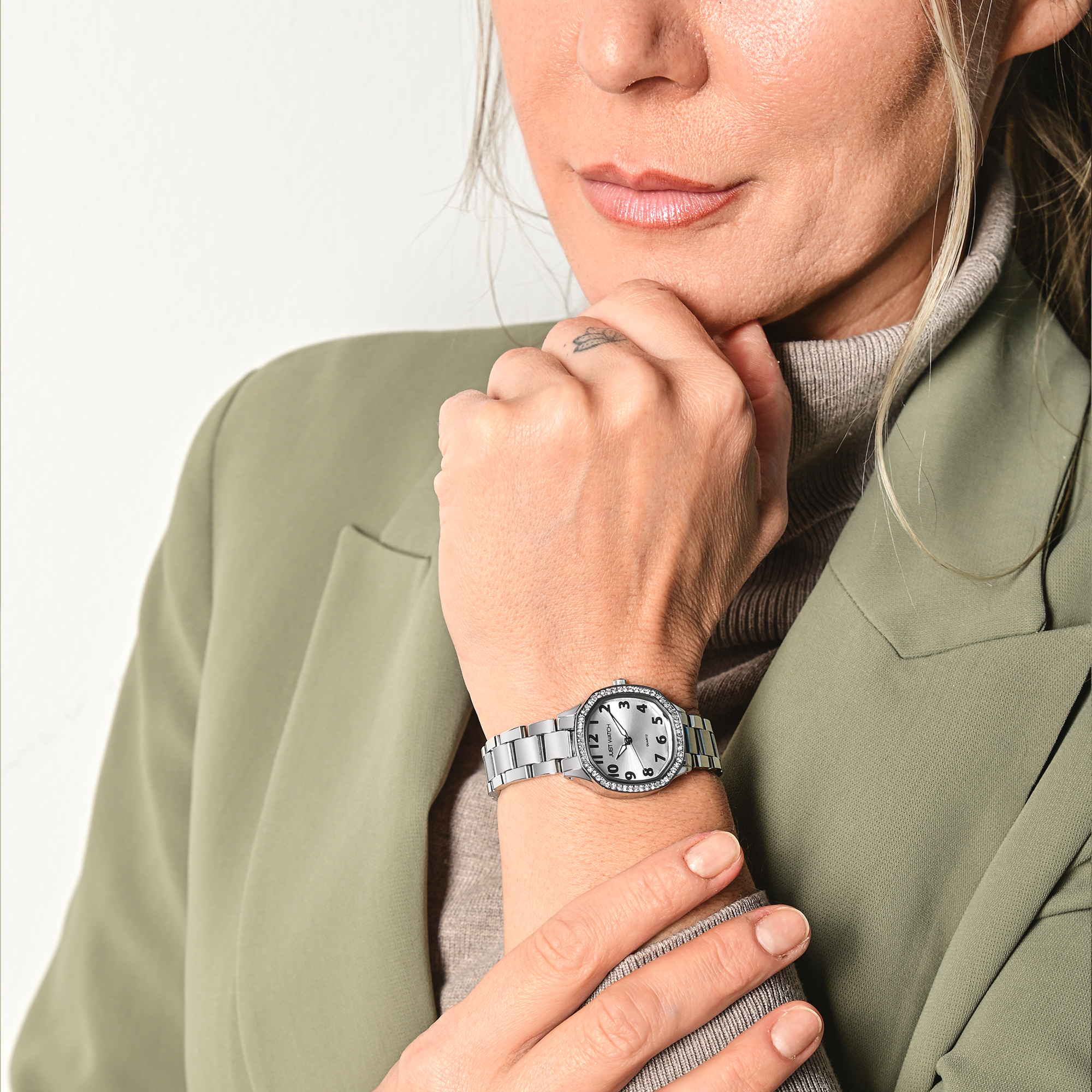 Bied je klanten het stijlvolle dameshorloge "Elva" van JUST WATCH aan! Dit elegante horloge heeft een verfijnde roestvrijstalen armband met een comfortabele vlindersluiting en een fonkelende lunette bezet met similisteen. De afgeronde tonneaukast van 35 x 28 x 8 mm geeft het horloge een tijdloze elegantie en benadrukt het moderne design met een vrouwelijke touch.