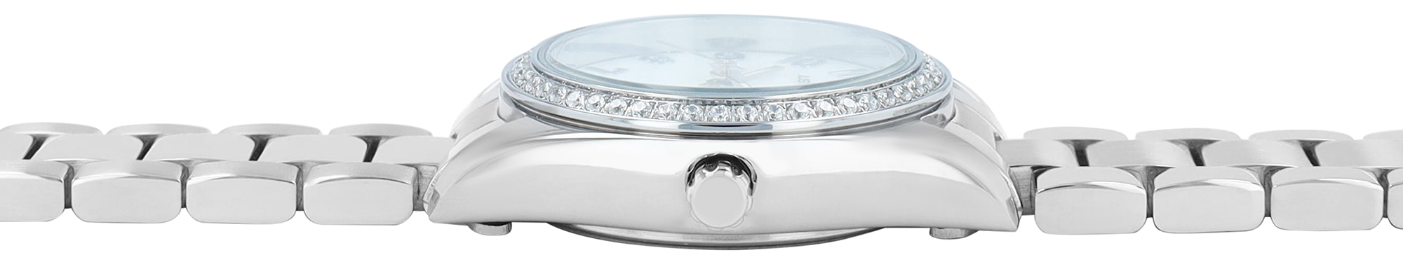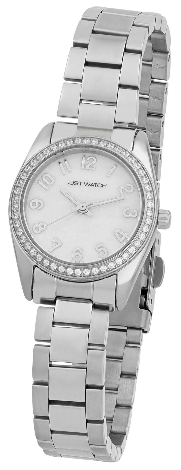 Productinformatie "JUST WATCH dameshorloge "Gerda" met roestvrij stalen armband, Ø 26 mm, zilverkleurig/parelmoer wit, 5 ATM"