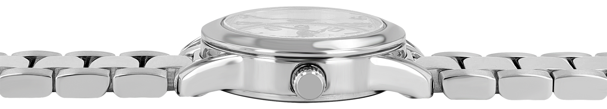 Met een totale lengte van 20 cm kan het horloge individueel worden aangepast aan de pols dankzij de verwijderbare schakels. De delicate 12 mm brede roestvrijstalen armband is veilig bevestigd met een vouwsluiting. De metalen kast met een diameter van 23 mm geeft het horloge een discrete maar stijlvolle look. De roestvrijstalen achterkant van de kast zorgt voor een comfortabele pasvorm en een lange levensduur. Een heldere wijzerplaat met Arabische cijfers en lichtgevende wijzers zorgt voor een uitstekende leesbaarheid.