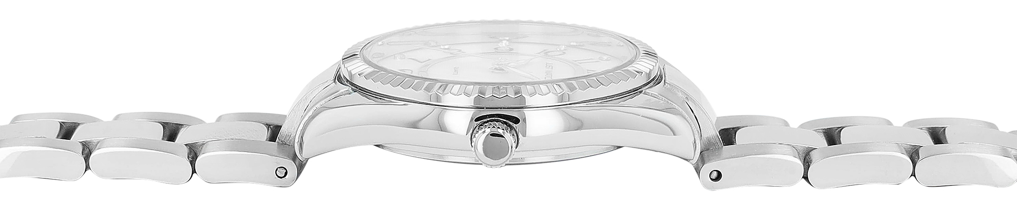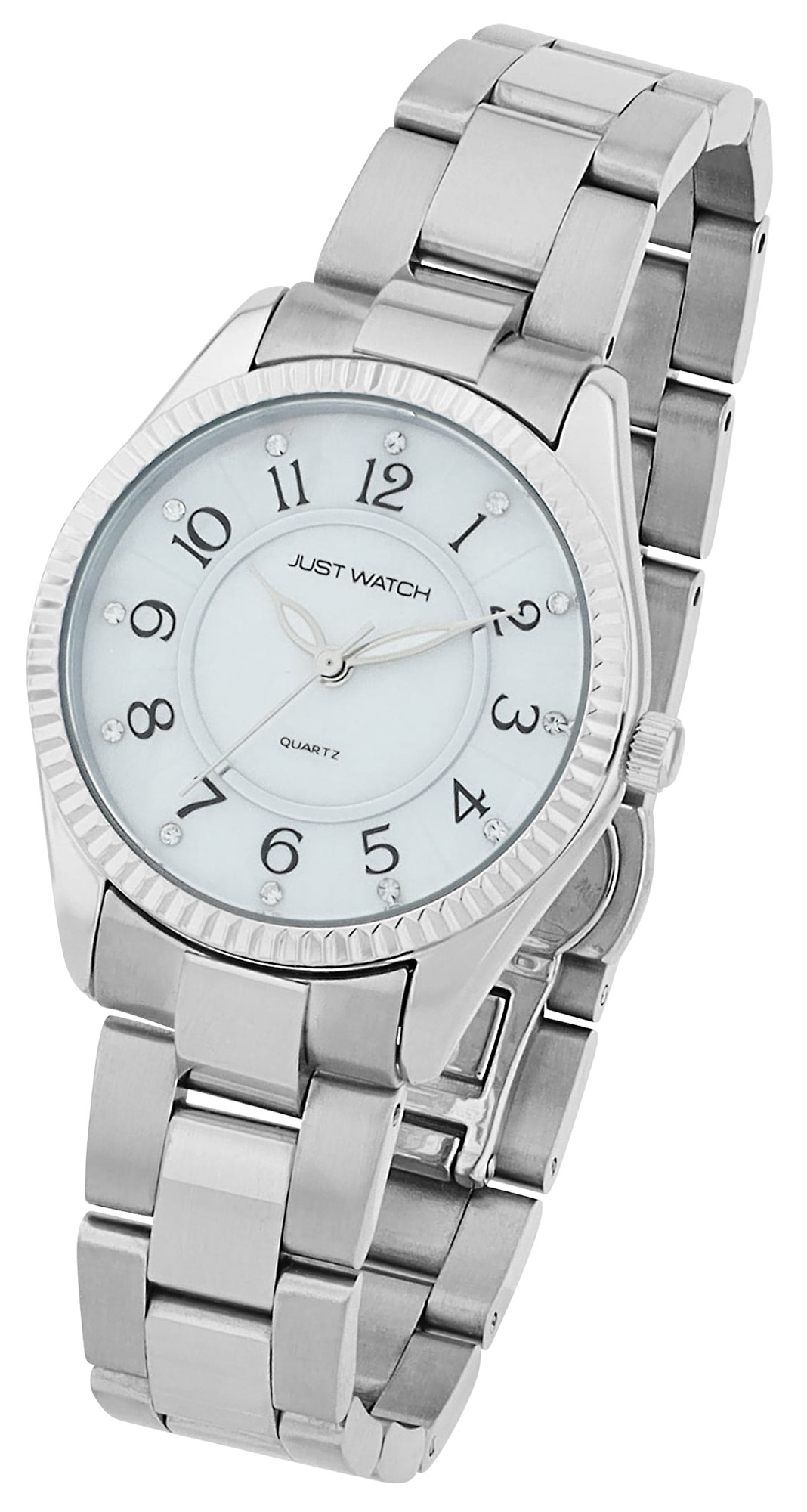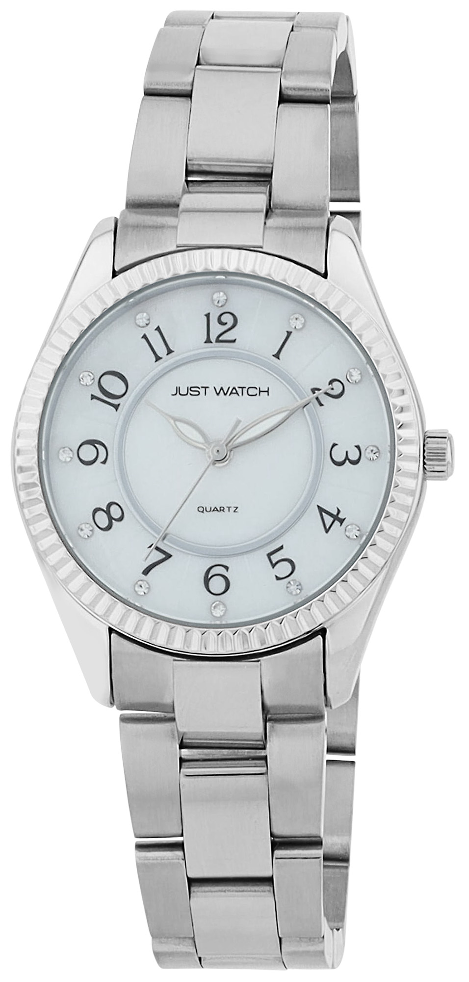 Productinformatie "JUST WATCH dameshorloge "Lunaria" met roestvrij stalen armband, Simili, Ø 32 mm, zilverkleurig/parelmoer"