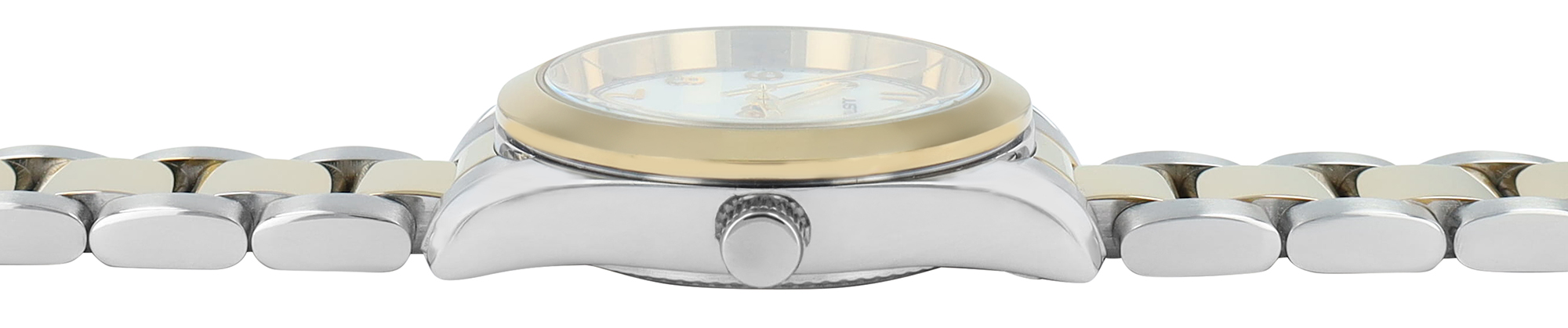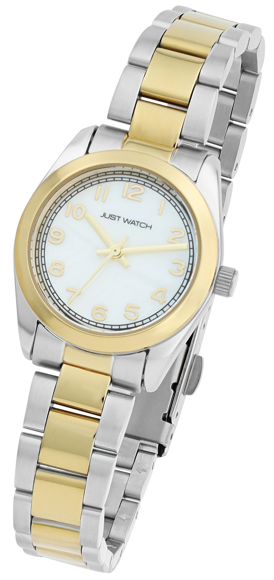 Productinformatie "JUST WATCH dameshorloge "Mathilda" met roestvrij stalen armband, Ø28 mm, tweekleurig parelmoer, 5ATM"