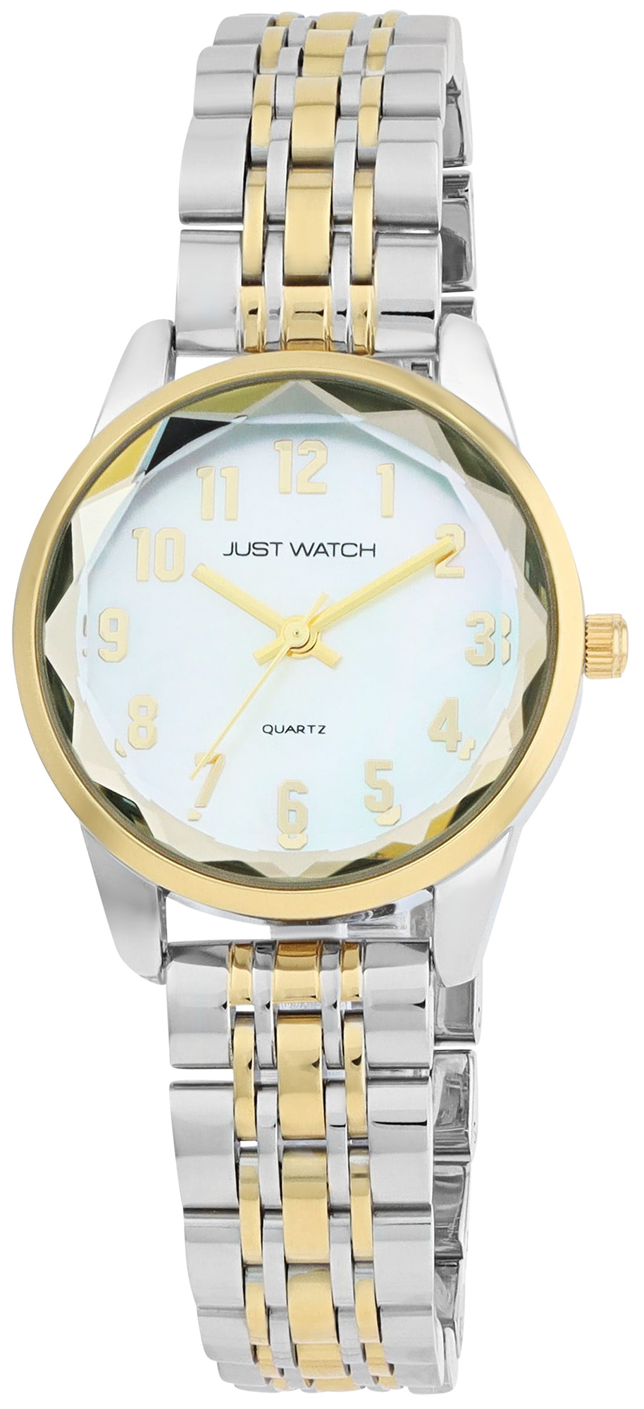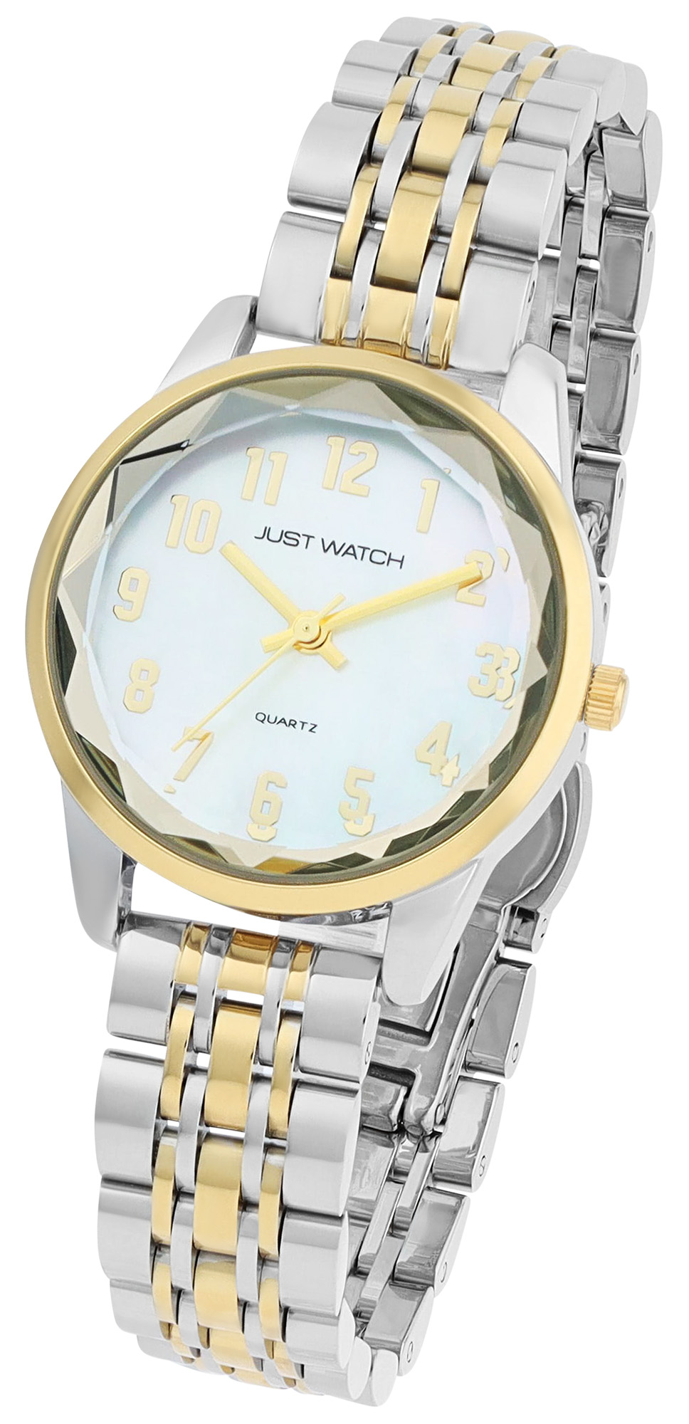Productinformatie "JUST WATCH dameshorloge "Valentia" met roestvrij stalen armband, Ø 30 mm, tweekleurig/parelmoer"