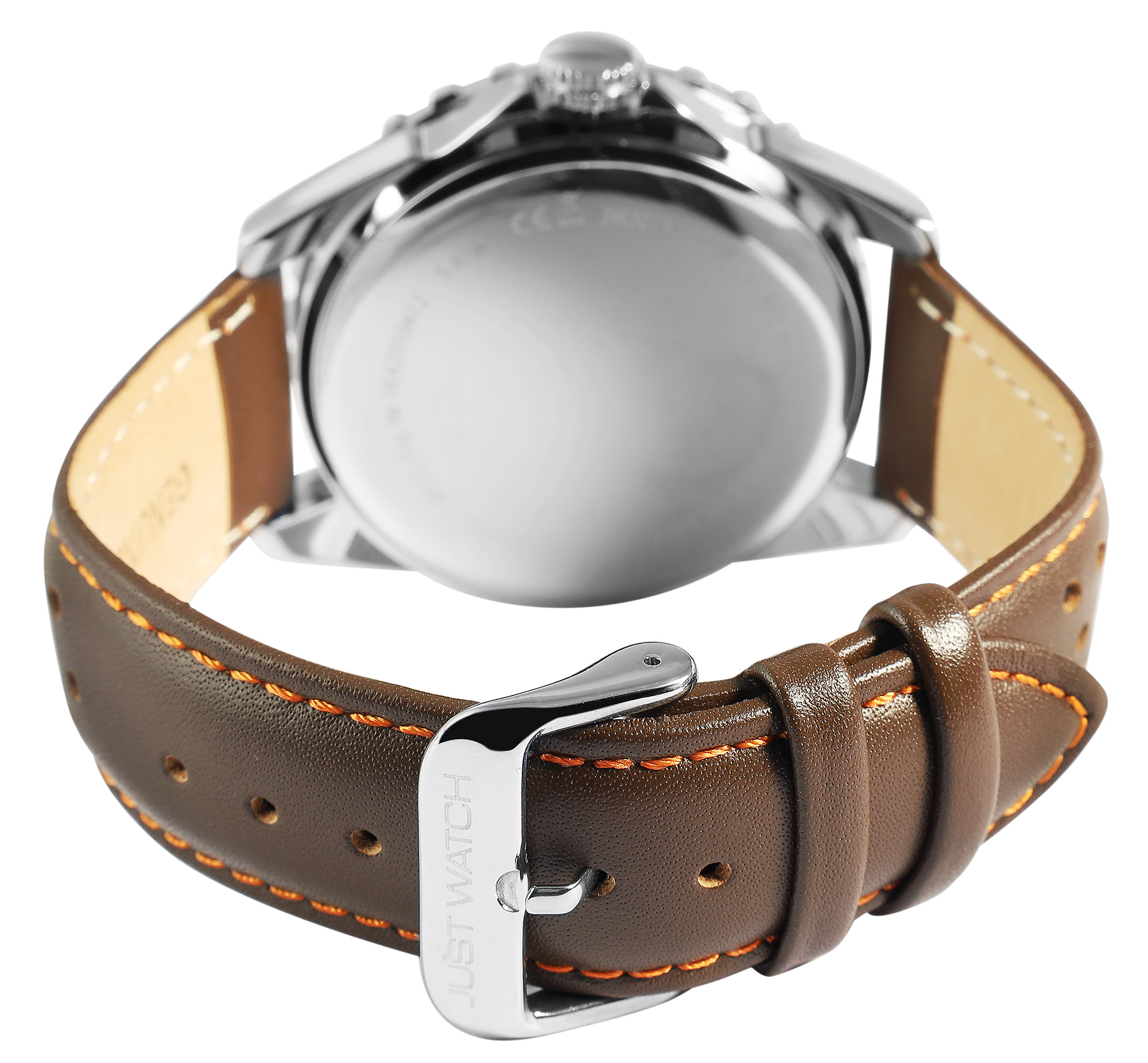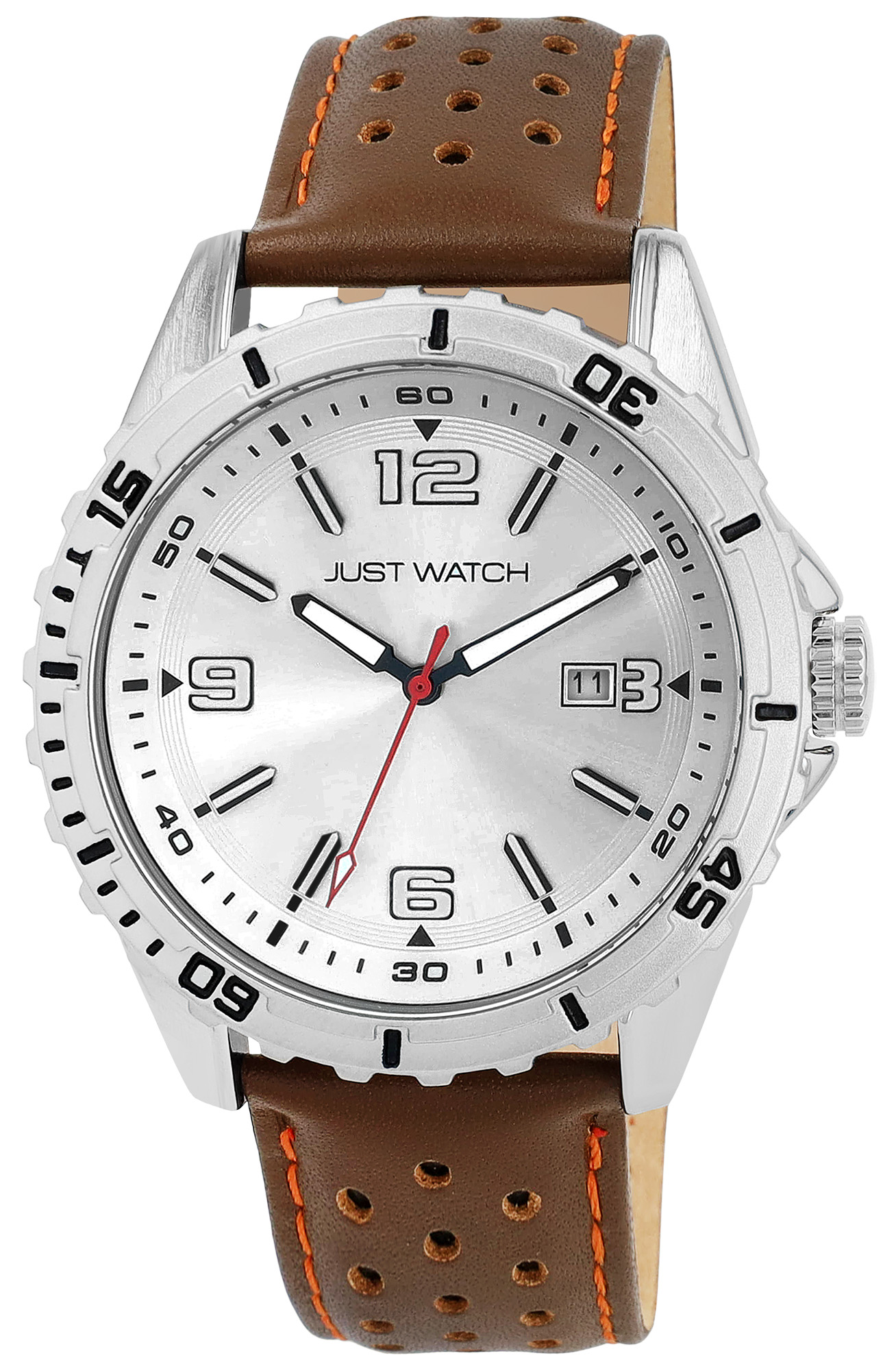 Productinformatie "JUST WATCH herenhorloge "Elwin" met echt lederen band, Ø 43 mm, bruin/zilverkleurig"