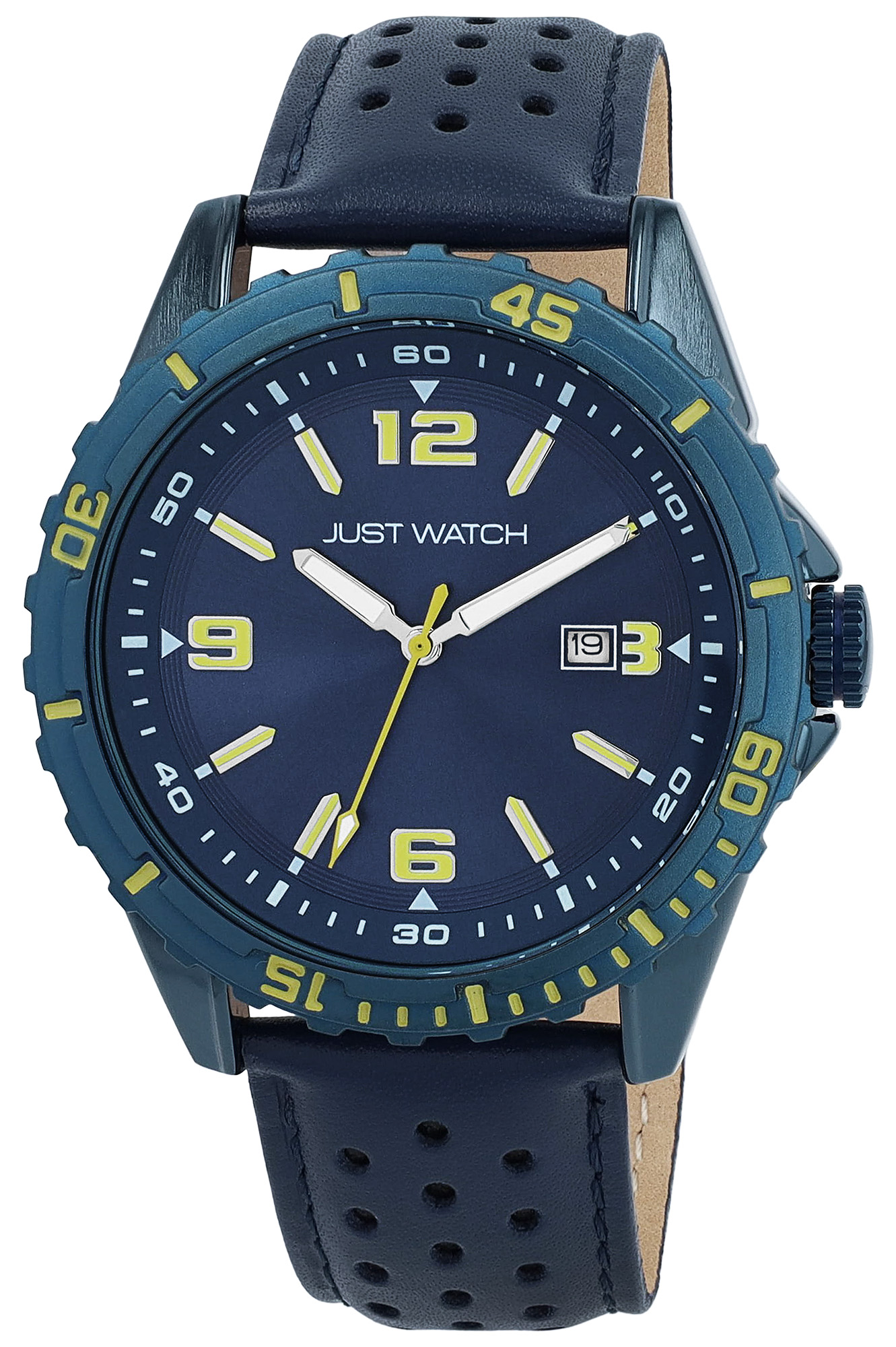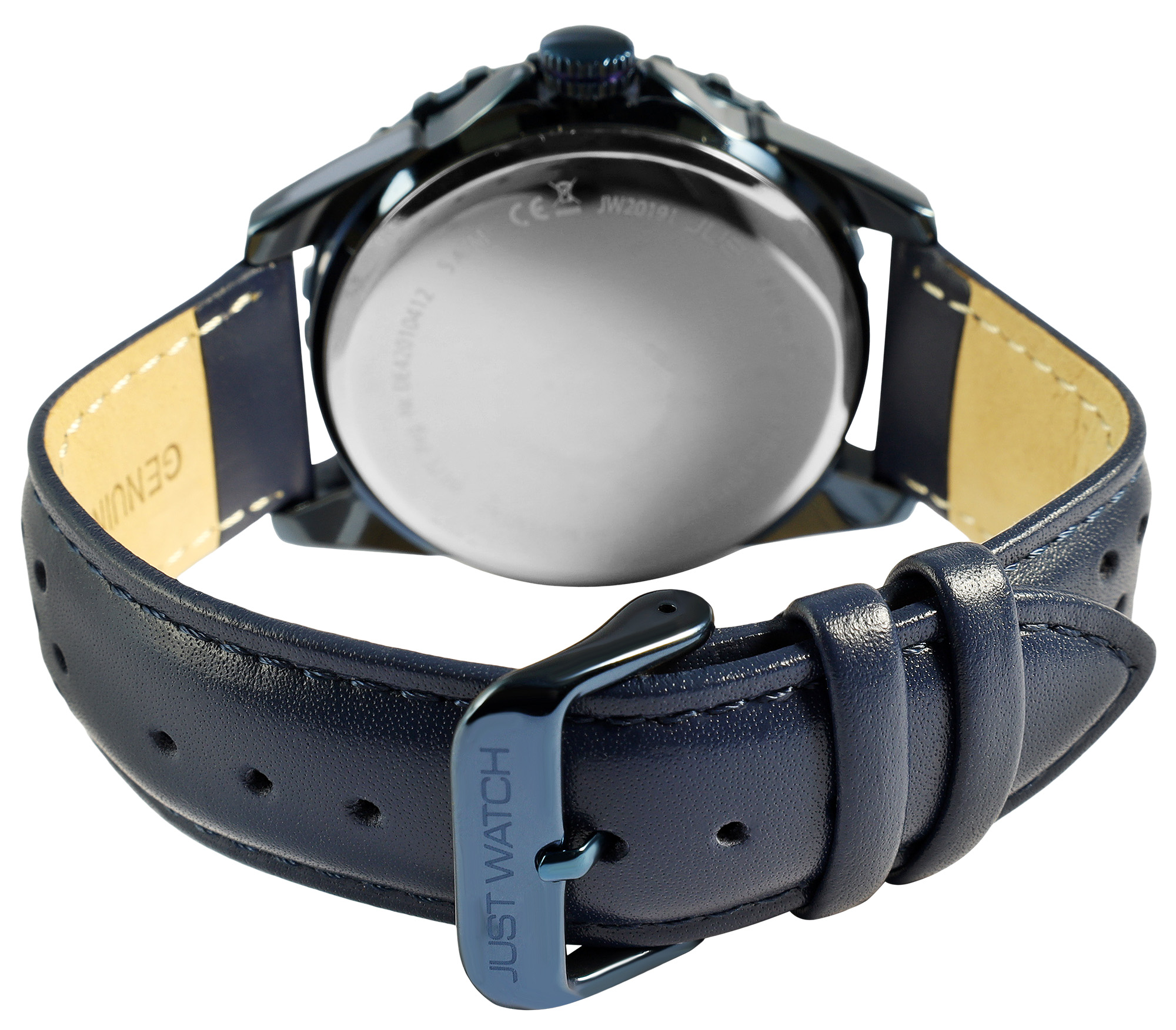 Productinformatie "JUST WATCH herenhorloge "Elwin" met echt lederen band, Ø 43 mm, blauw"