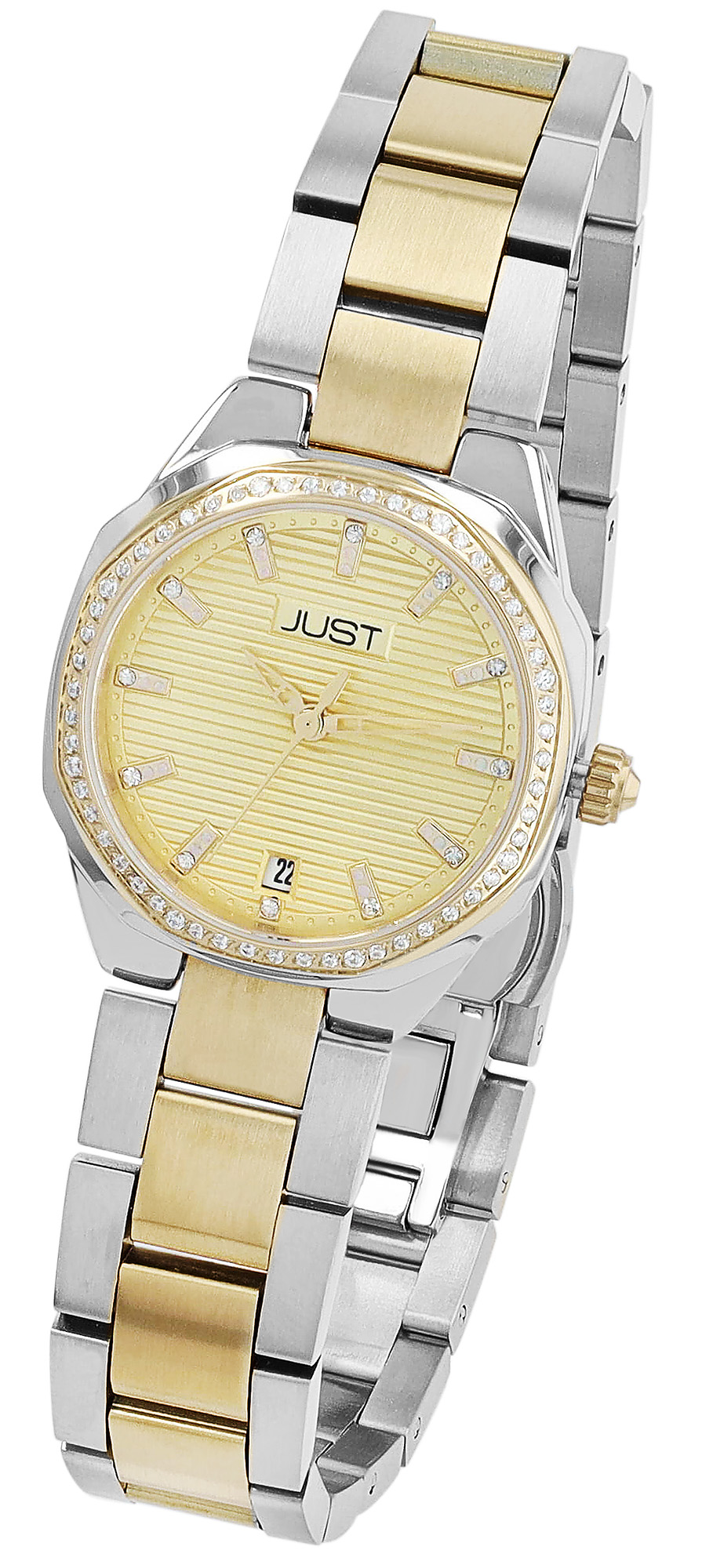 Productinformatie "JUST dameshorloge "Lovis" met roestvrijstalen armband, saffierglas, tweekleurig (goudkleurig/zilverkleurig)"