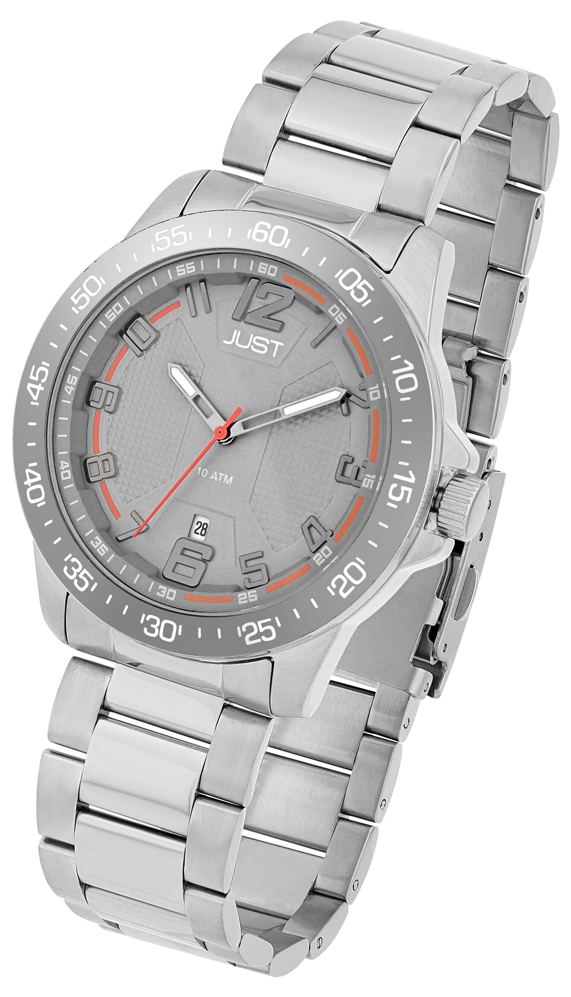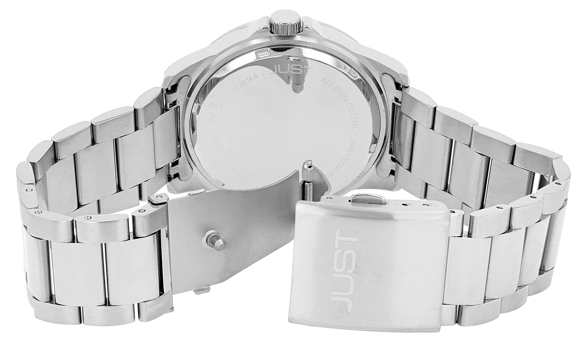 Productinformatie "JUST herenhorloge "Marten" met roestvrij stalen armband, Ø 43 mm, 10 ATM, zilver/grijs"