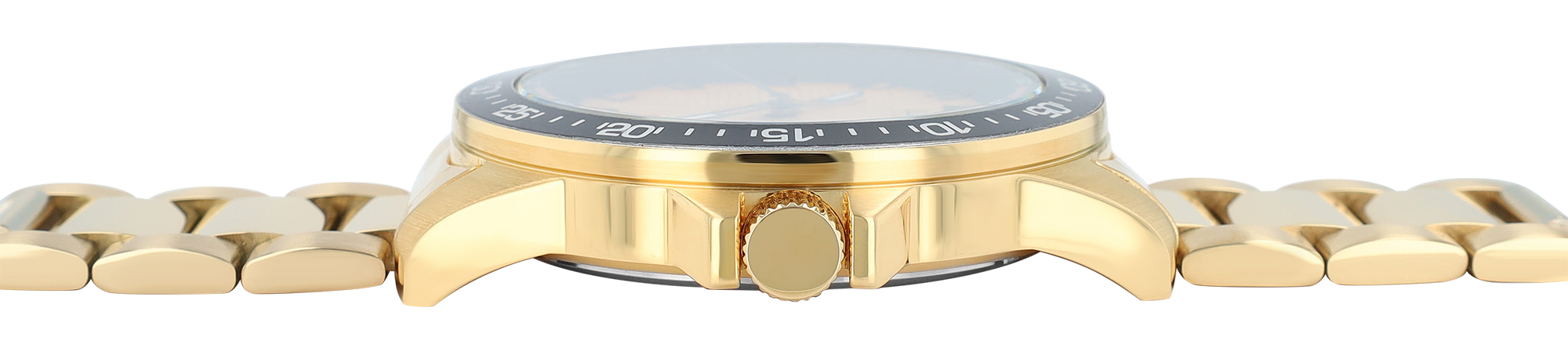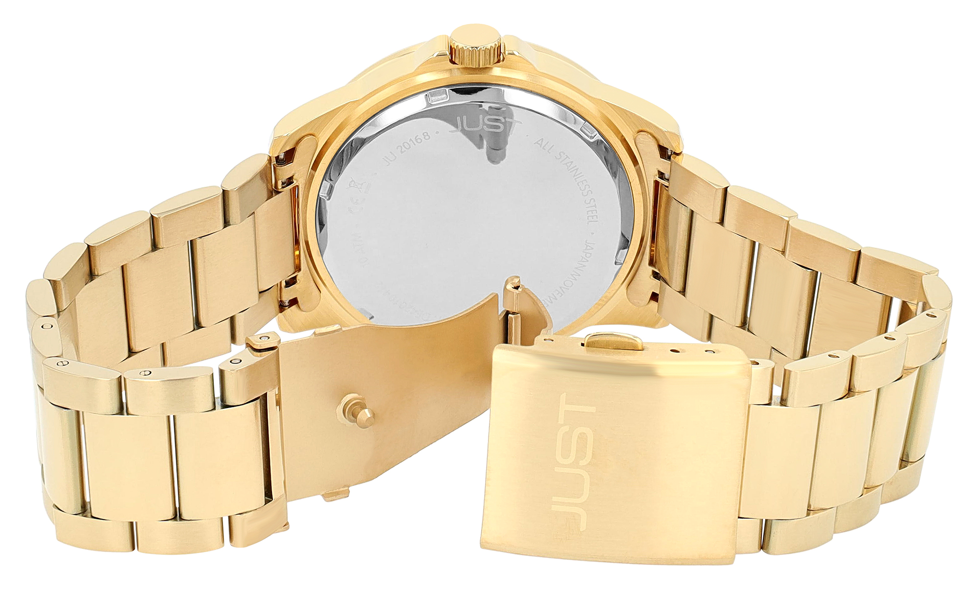 Productinformatie "JUST herenhorloge "Marten" met roestvrijstalen armband, Ø 43 mm, 10 ATM, goudkleurig/zwart"