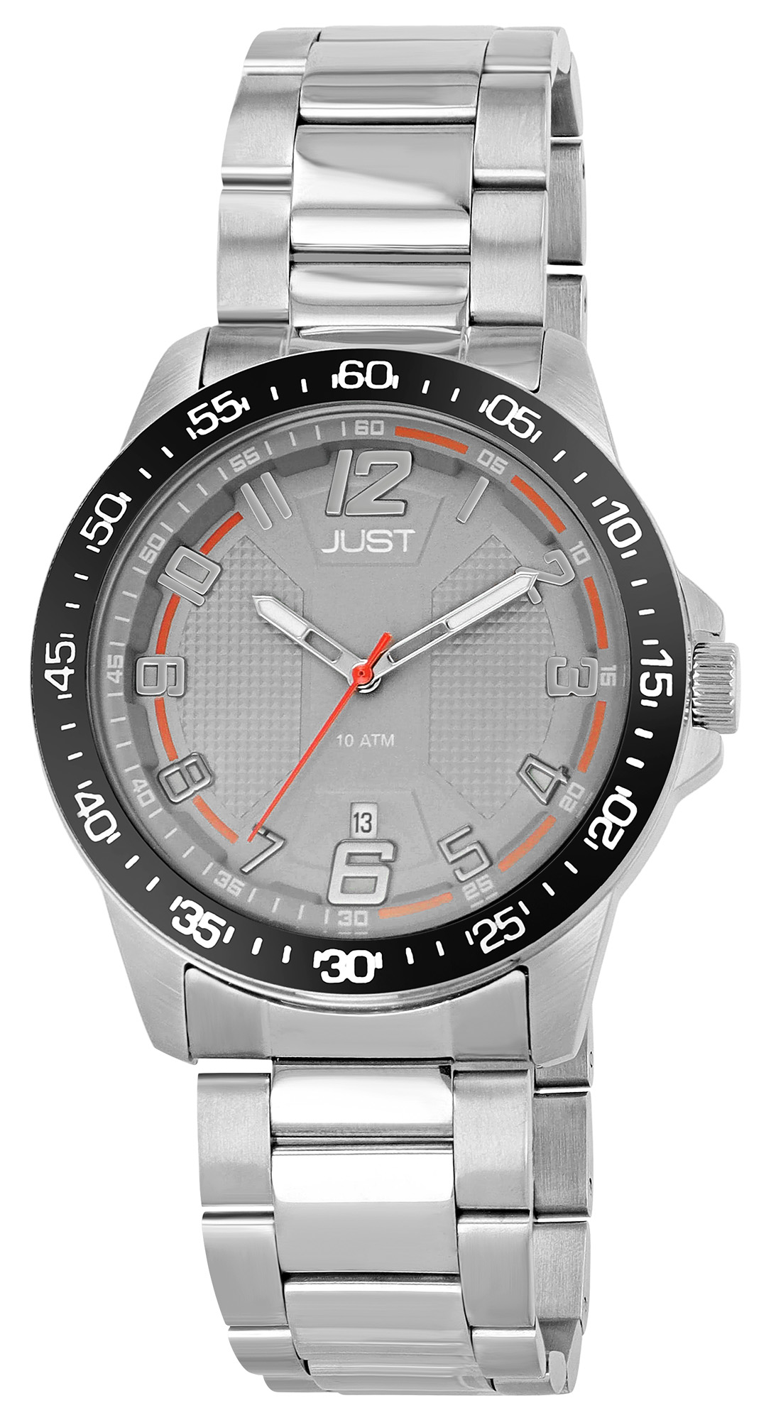 Productinformatie "JUST herenhorloge "Marten" met roestvrijstalen armband, Ø 43 mm, 10 ATM, zilverkleurig/zwart"