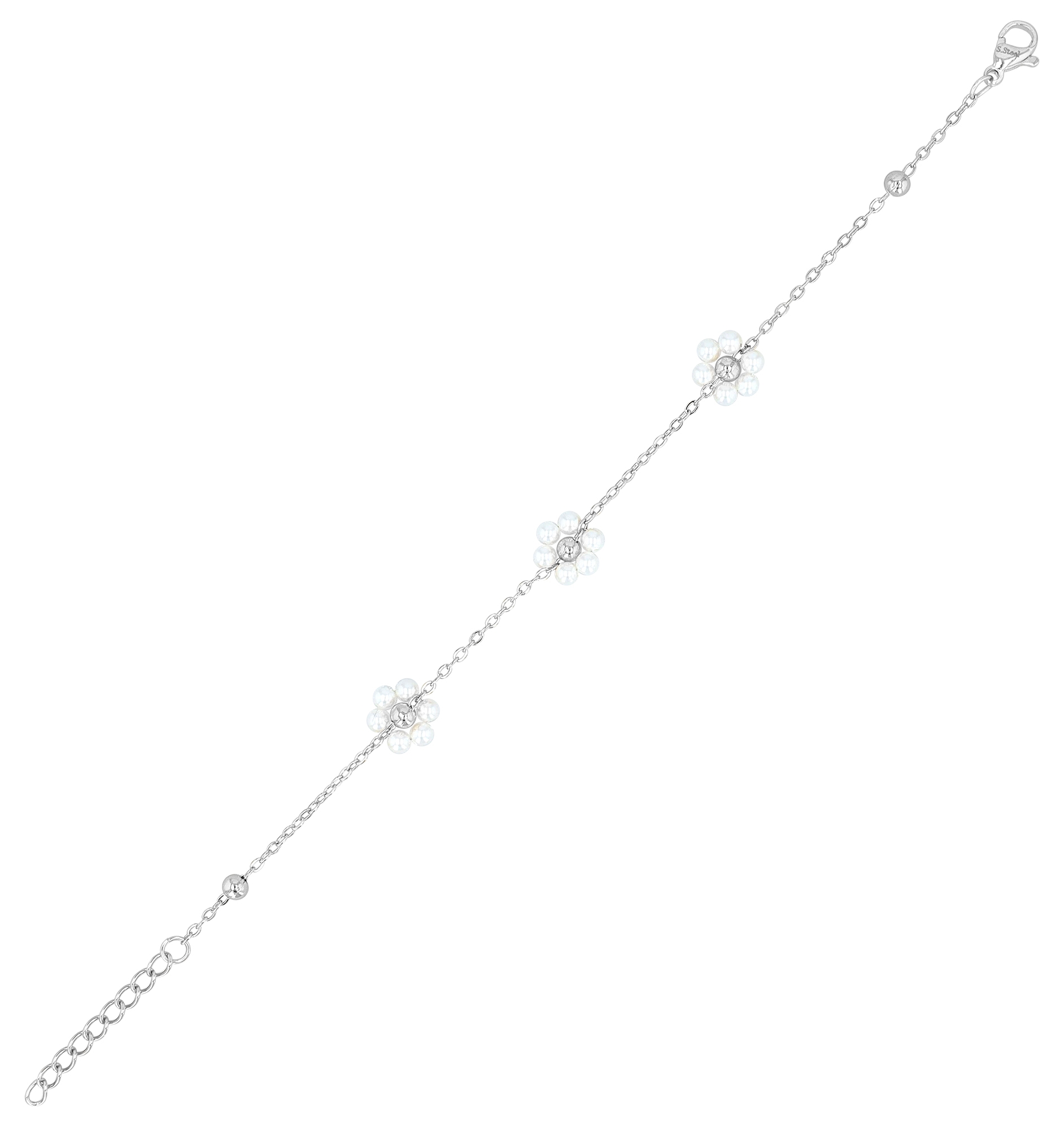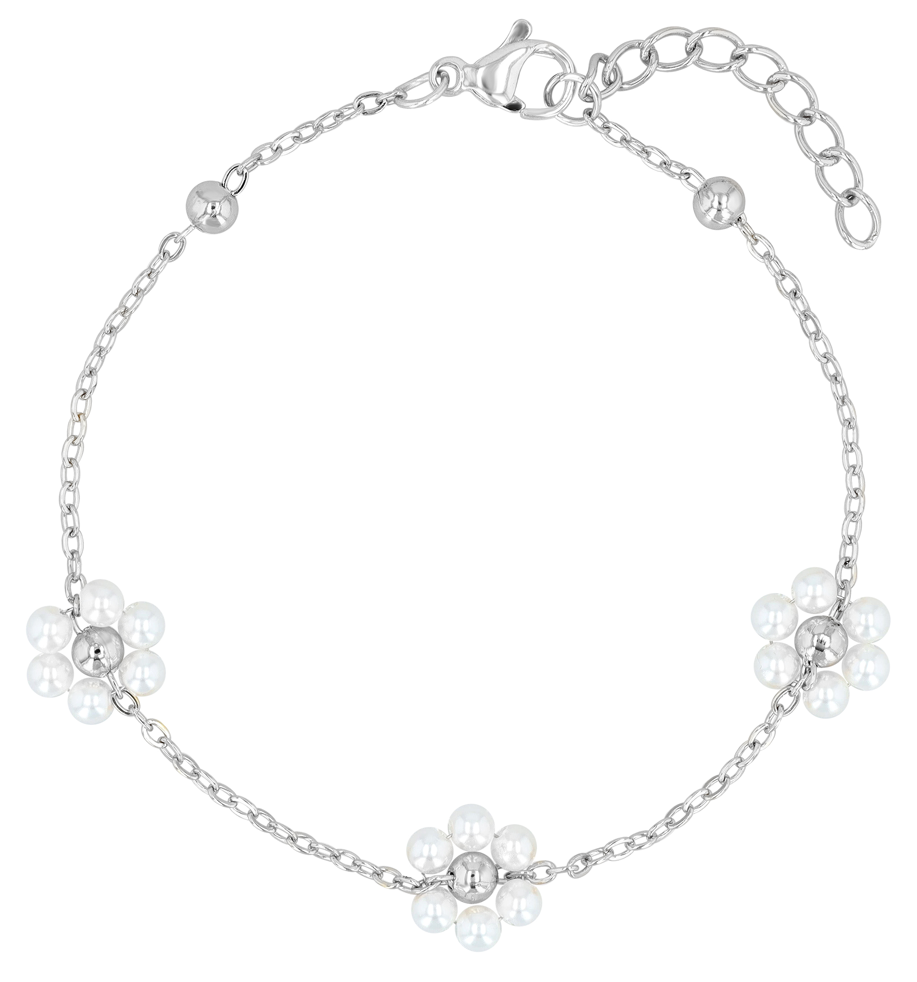 Productinformatie ""Jaika" Armband (17+3 cm), Edelstahl/ Glasperlen, Blüte, silberfarben"
