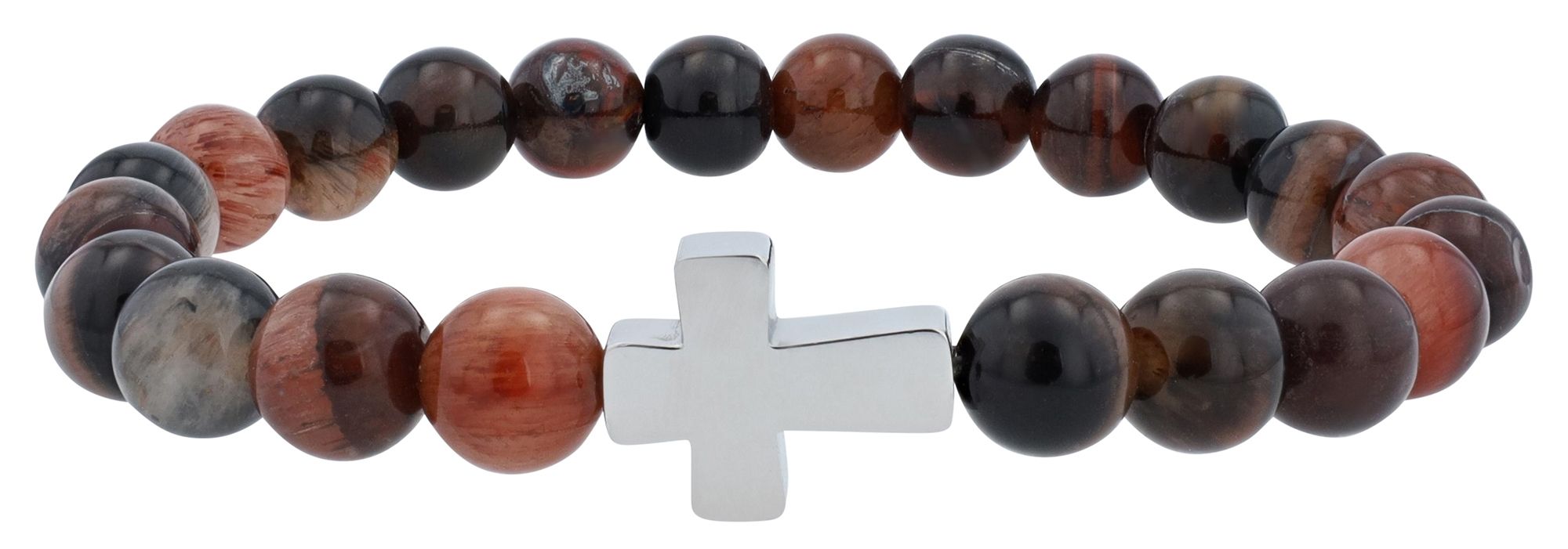 De Akzent kralenarmband is gemaakt van echt natuursteen en roestvrij staal en wordt bij elkaar gehouden met een elastische nylon rubberen band. Omdat de barnsteen kralen een natuurproduct zijn, is elke kraal uniek. De armband bestaat uit 22 kralen en 1 roestvrijstalen kruis en is verkrijgbaar in de kleuren bruin en donkerbruin. Het kruis is zilverkleurig. De afmetingen zijn: binnendiameter: lengte: 17 cm en dikte: 8 mm.