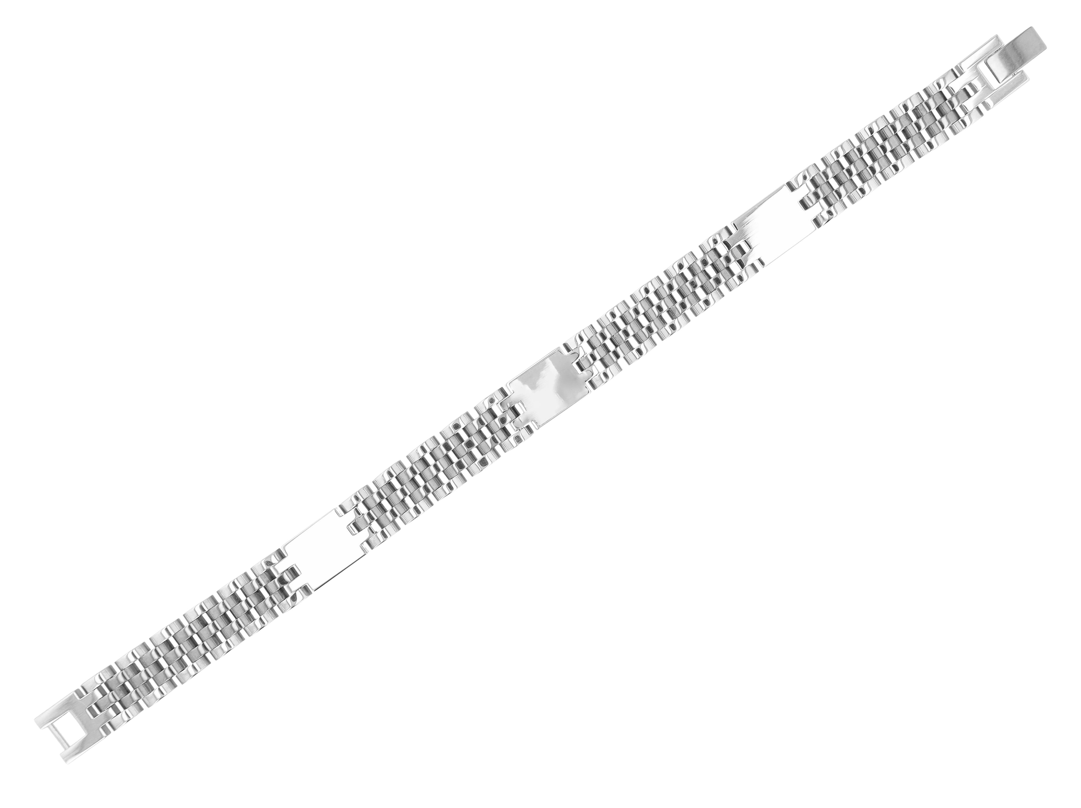 Met een lengte van 21 cm, een breedte van 10 mm en een dikte van 3 mm biedt de armband een comfortabele pasvorm en een opvallende look om de pols. Het combineert niet alleen visuele verfijning en hoge robuustheid, maar biedt ook de mogelijkheid tot personalisatie. De graveerelementen zijn gelijkmatig verdeeld en maken het mogelijk om de armband te personaliseren met namen, data of speciale boodschappen.