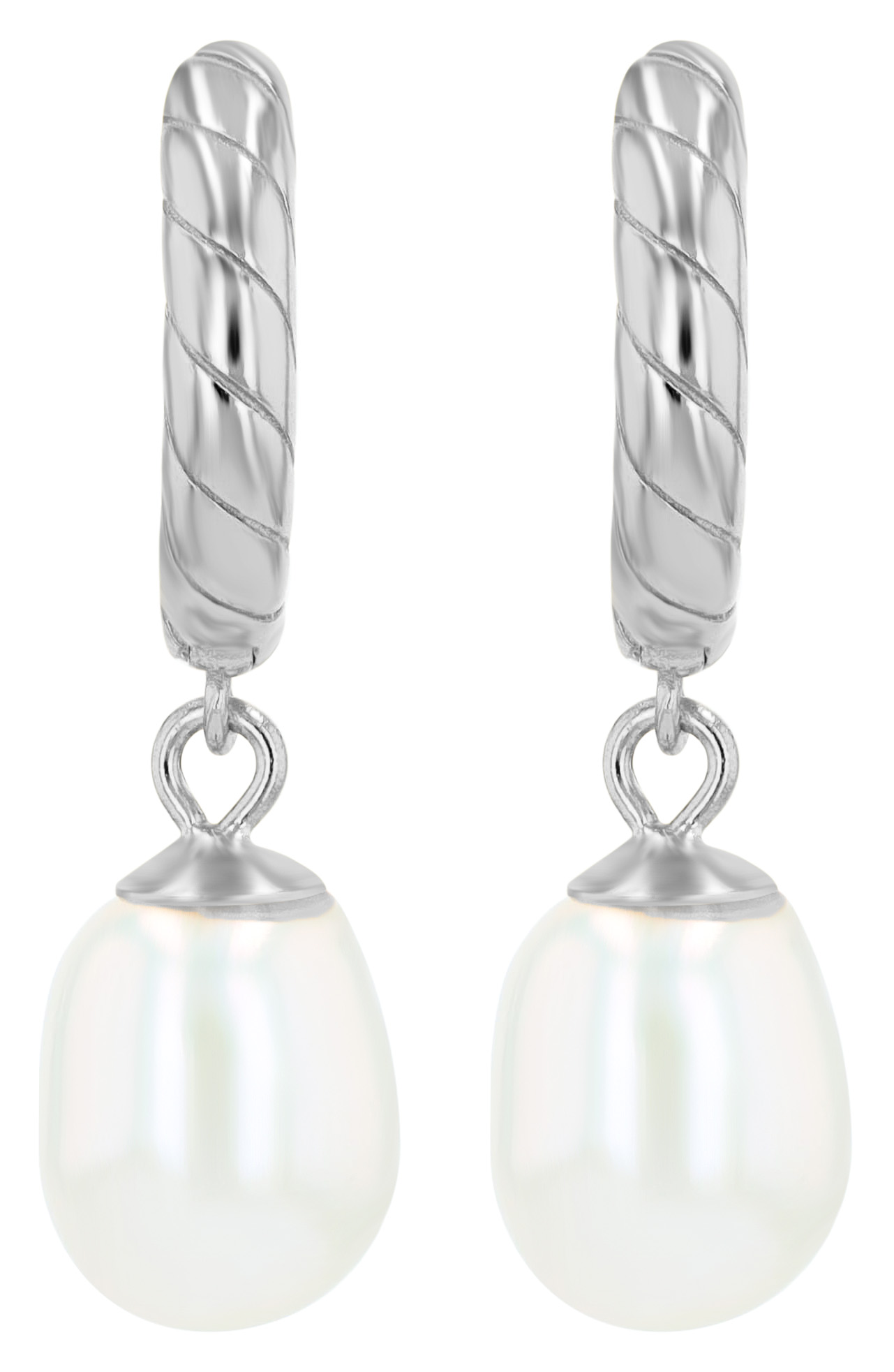 Productinformatie ""Jenni" 925/- echt zilveren oorbellen (Ø 10 mm) met hanger - echte zoetwaterparel, gerhodineerd"