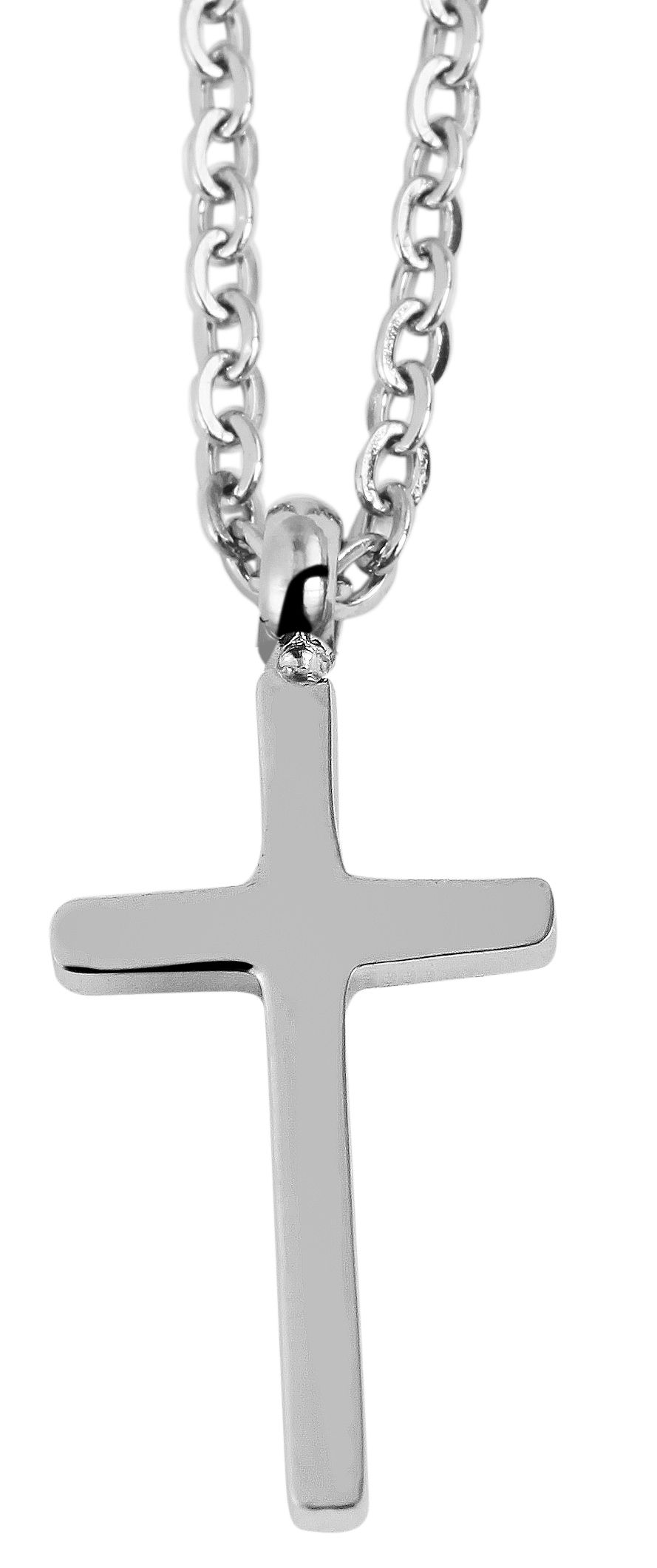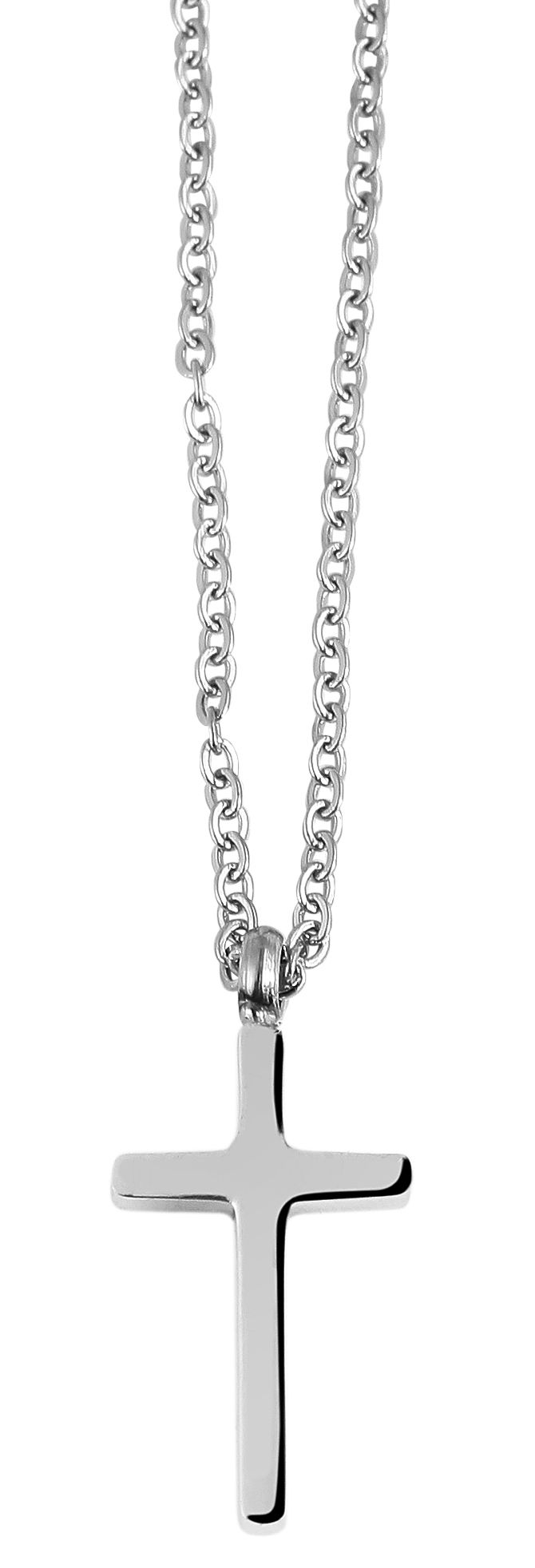 De zilverkleurige damesketting van het merk Akzent heeft een ankerpatroon en is gemaakt van roestvrij staal. De ketting heeft een lengte van 45 cm en is 2 mm breed en dik. De ketting heeft een delicate kruishanger in de kleur van de ketting met een lengte van 11 mm (zonder oogje) en een breedte van 8 mm, met een dikte van 2 mm.