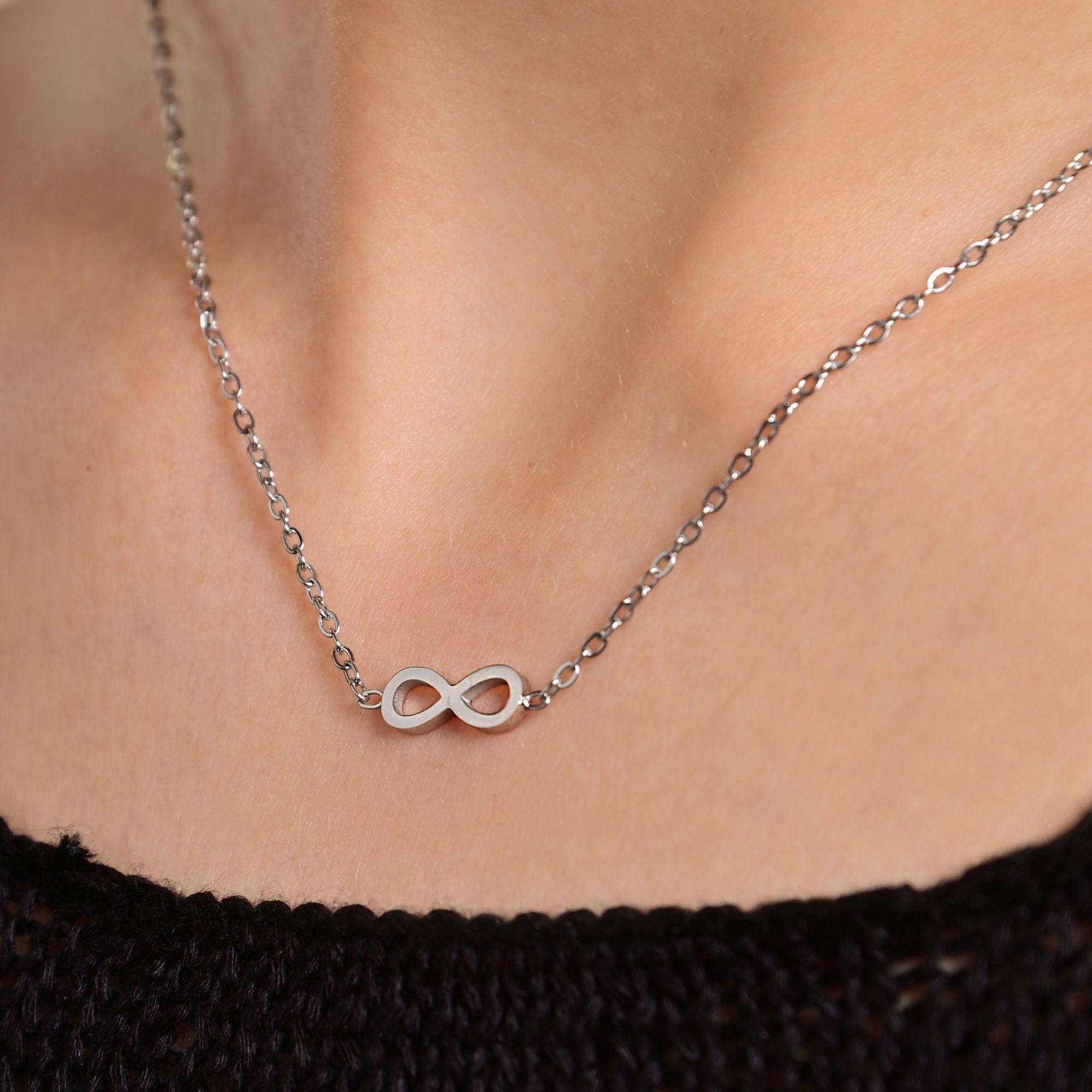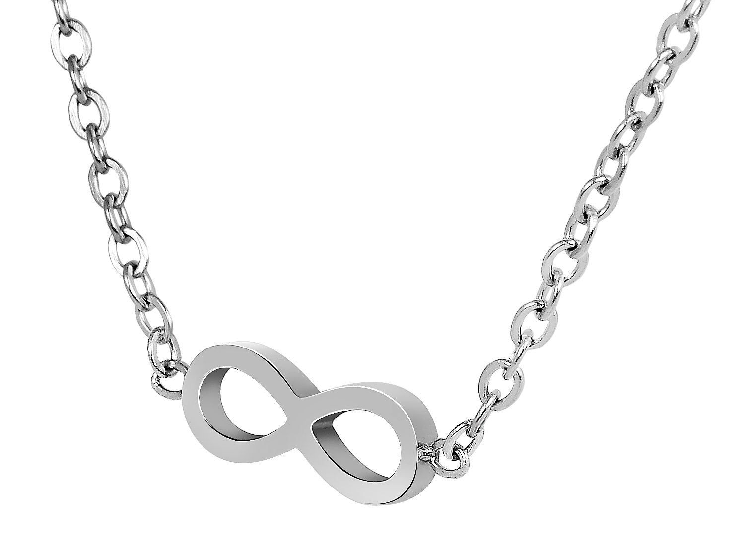 De ketting van het merk Akzent is gemaakt van roestvrij staal in een ankerpatroon. Aan de ketting is een hanger bevestigd in de vorm van een oneindigheidssymbool. Deze is 5 mm lang, 17 mm breed en 1 mm dik. De moderne sieradenketting kan worden geopend en gesloten met een karabijnsluiting, die ook van roestvrij staal is gemaakt. Aan één uiteinde van de ketting is ook een verlengkettinkje van 5 cm bevestigd, waarmee de lengte met maximaal 5 cm kan worden aangepast aan elke outfit. De afmetingen komen voort uit een lengte van 43 cm en een dikte van 1 mm.