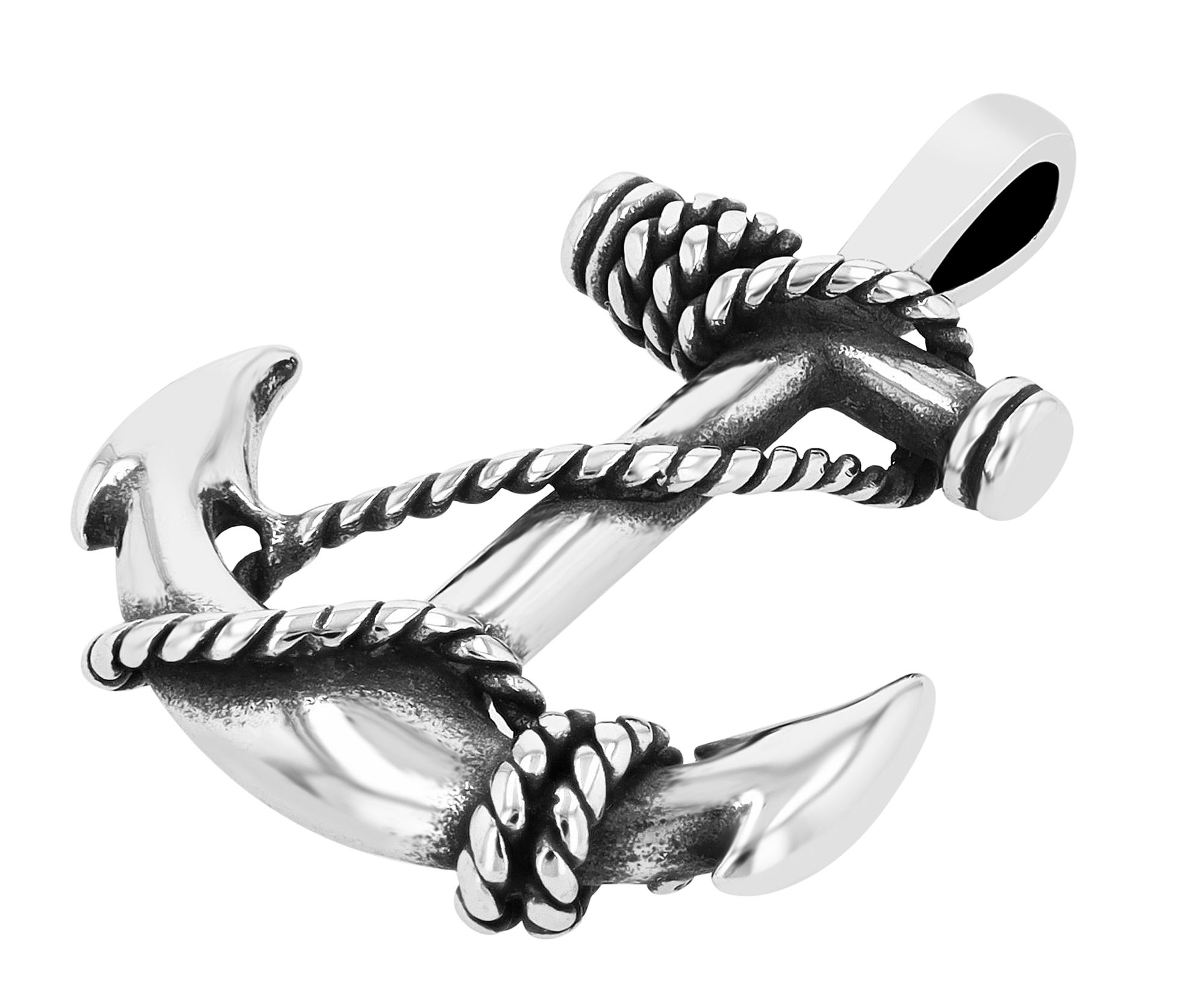 Productinformatie ""Juria" accent hanger anker met touw, roestvrij staal, zilverkleurig + gezwart"