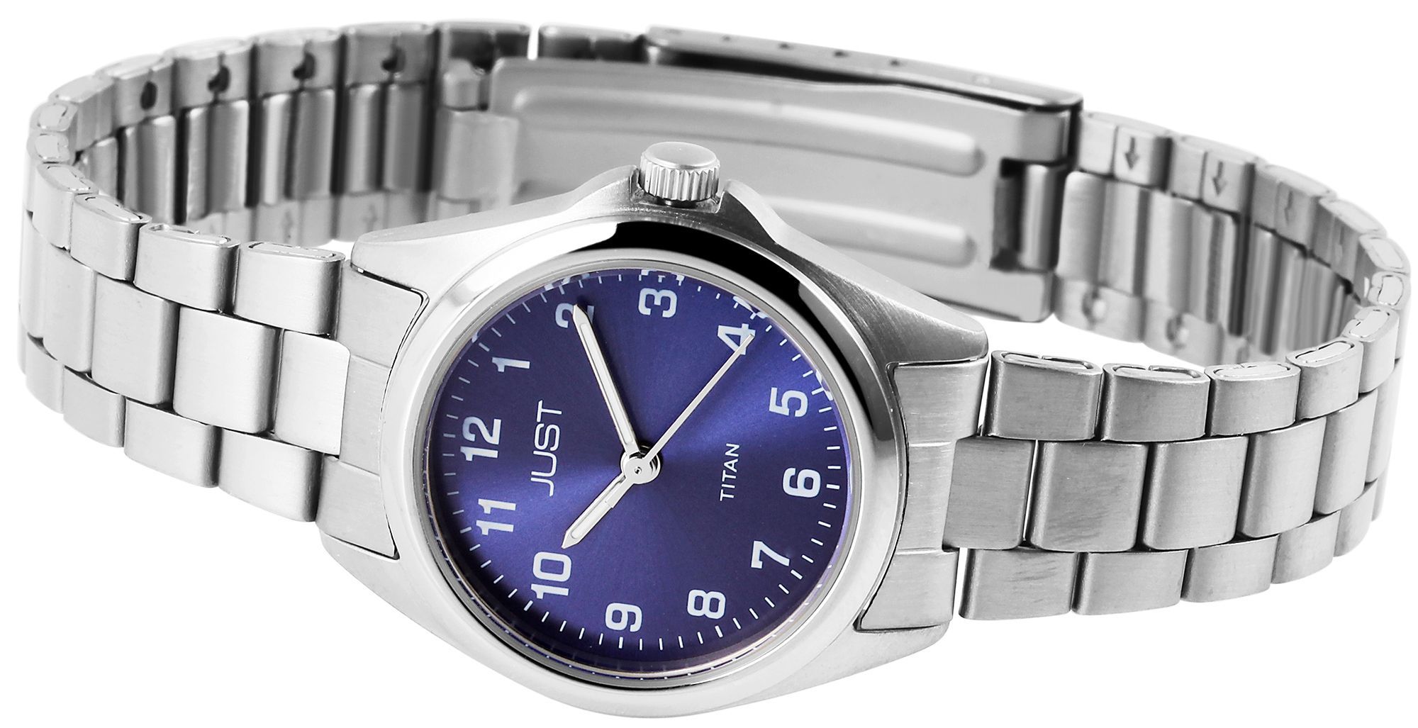 Productinformatie "Just Damenarmbanduhr aus Titan, 5 Bar, blaues ZB"