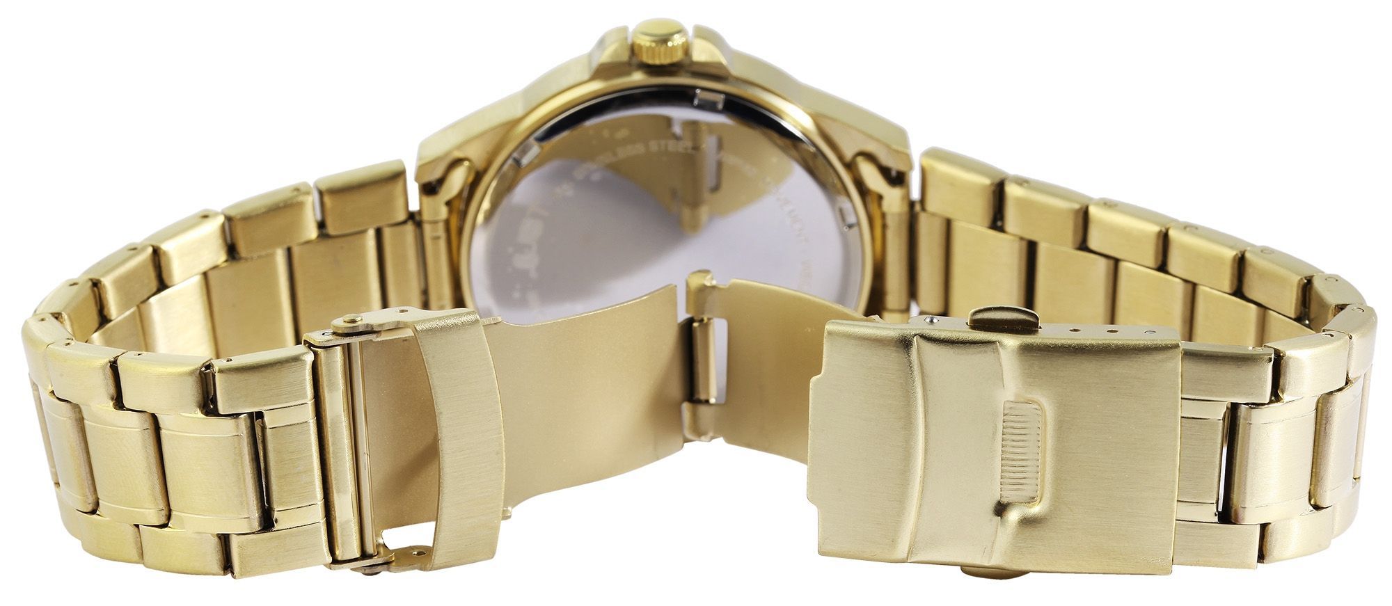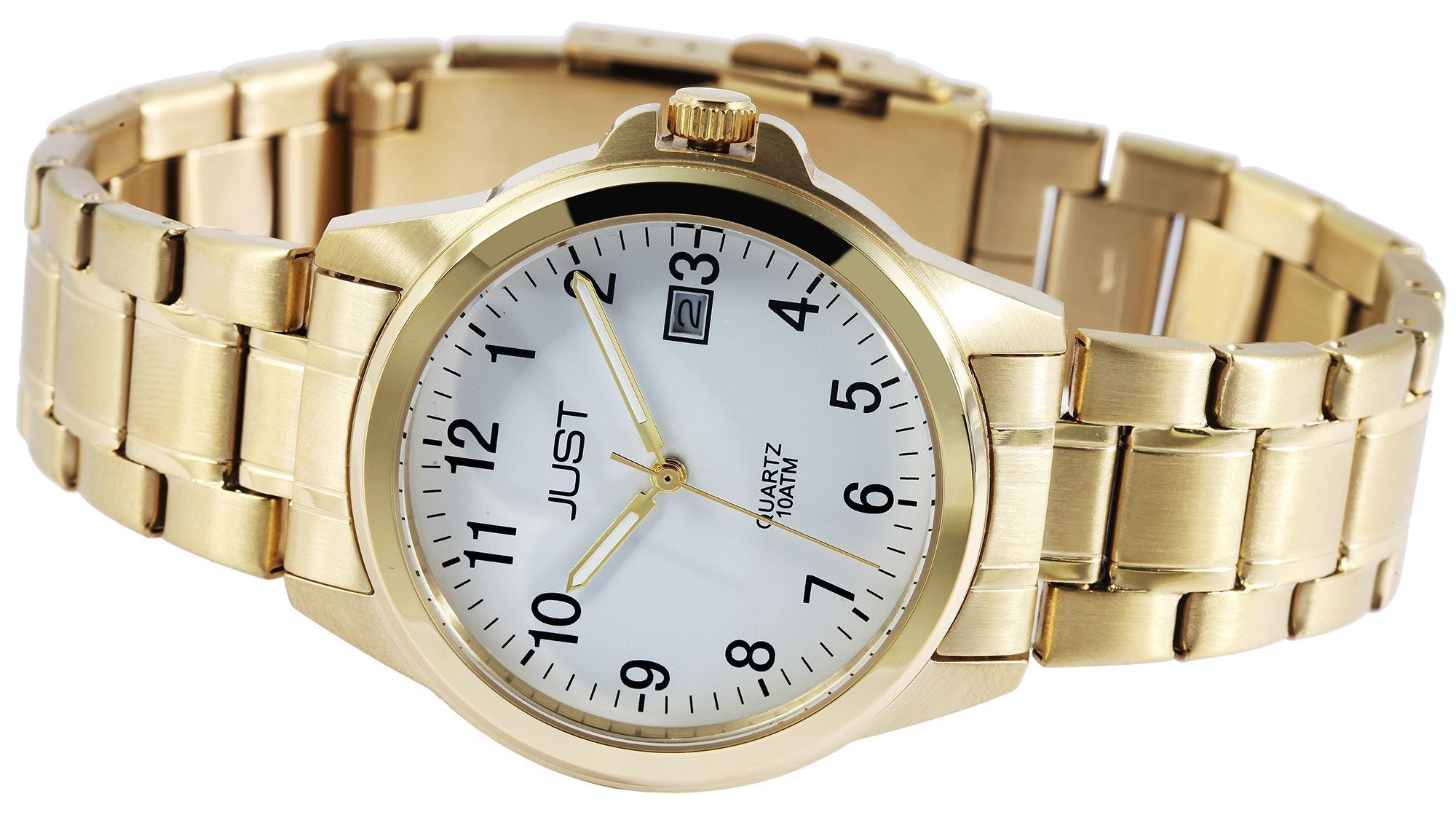 Productinformatie "Just Edelstahl Herrenarmbanduhr, 3-Zeiger, Datumsanzeige, goldfarben, weißes ZB"