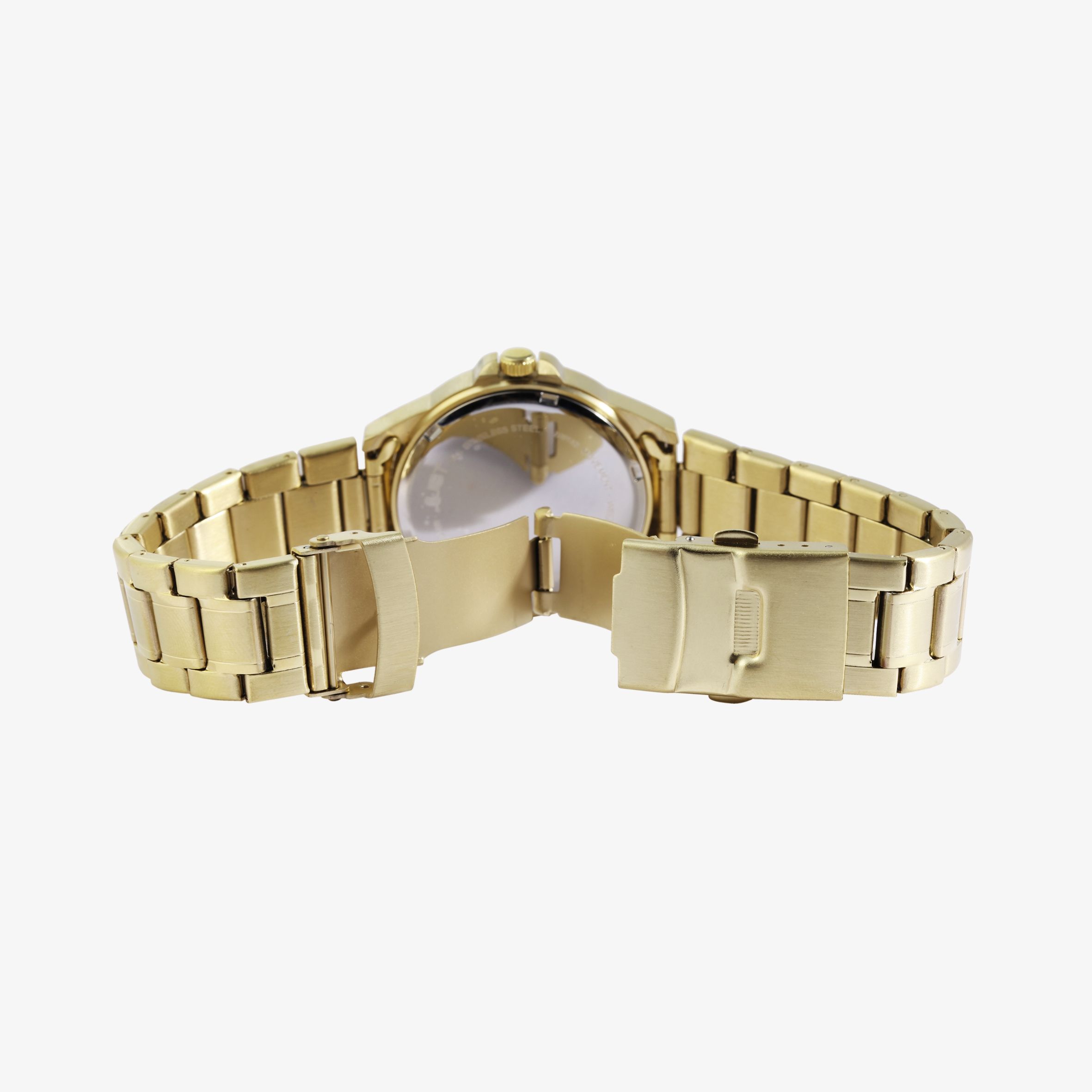Het analoge herenpolshorloge met 3 wijzers van het merk Just heeft een hoogwaardig Miyota 2115 kwartsuurwerk. De goudkleurige roestvrijstalen armband is 18 mm breed bij de lug en kan worden geopend en gesloten met een goudkleurige roestvrijstalen vouwsluiting. De totale lengte van het horloge is 23 cm. De goudkleurige roestvrijstalen kast met mineraalglas heeft een diameter van 38 mm en een kasthoogte van 11 mm. De achterkant van de kast is ook van roestvrij staal. Het horloge heeft een datumweergave op drie uur. De wijzerplaat is wit en de cijfers zijn zwart. De wijzers zijn voorzien van Superluminova, waardoor je de tijd zelfs in het donker gemakkelijk kunt aflezen. Het horloge heeft een waterdichtheid van 10 bar. Je ontvangt een garantiekaart en een originele doos van het merk Just als accessoires voor je product.