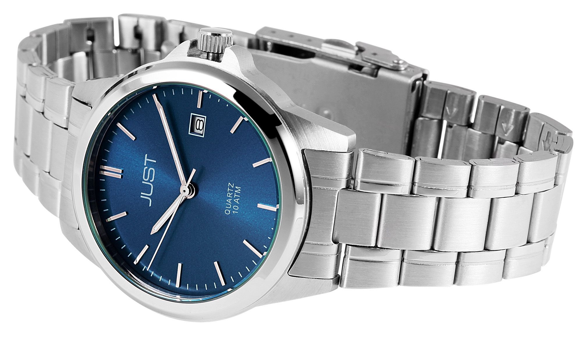 Productinformatie "Just Edelstahl Herrenarmbanduhr, 3-Zeiger, Datumsanzeige, silberfarben, petrolfarbenes ZB"