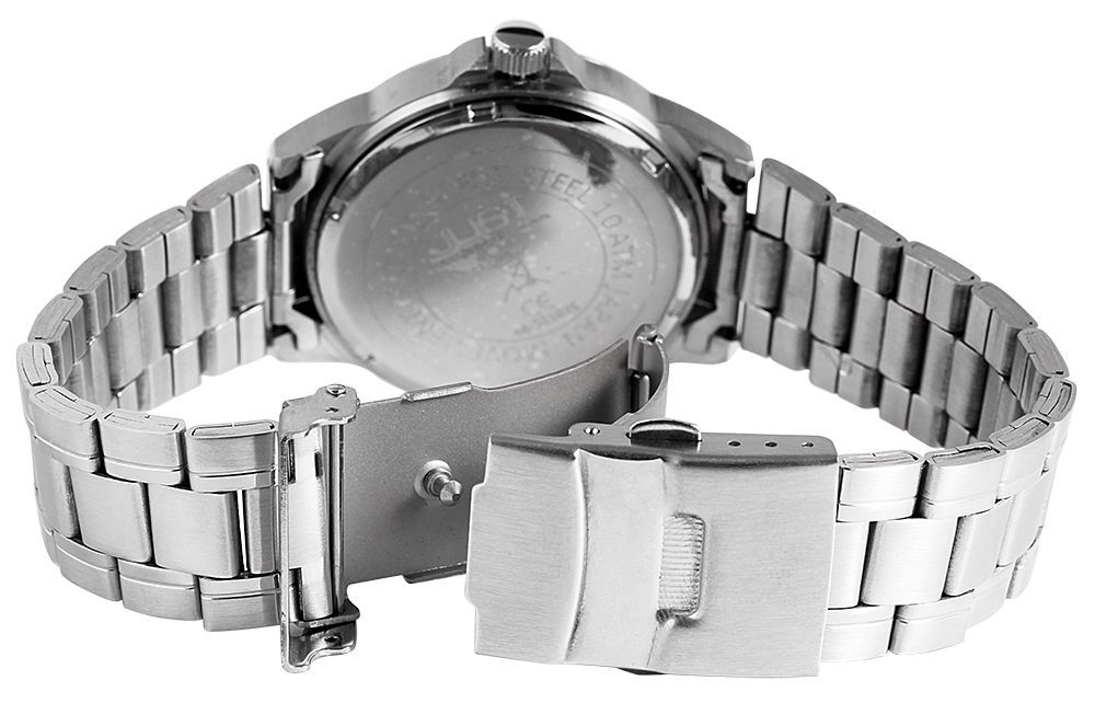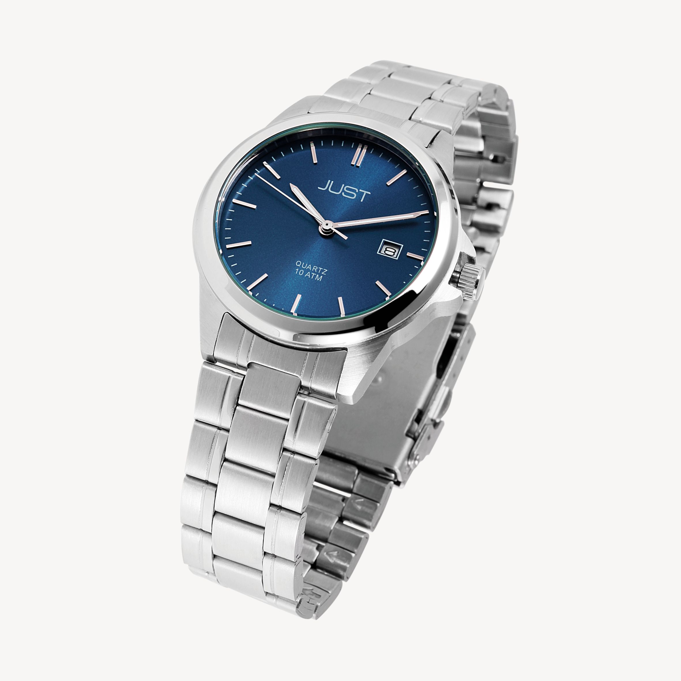 Het analoge herenpolshorloge met 3 wijzers van het merk Just heeft een hoogwaardig Miyota 2115 kwartsuurwerk. De roestvrijstalen armband is 18 mm breed bij de lug en kan worden geopend en gesloten met een roestvrijstalen vouwsluiting. De totale lengte van het horloge is 23 cm. De roestvrijstalen kast met mineraalglas heeft een diameter van 38 mm en een kasthoogte van 11 mm. De achterkant van de kast is ook van roestvrij staal. Het horloge heeft een datumweergave op drie uur. De wijzerplaat is eenvoudig gehouden en de wijzers en cijfers hebben dezelfde kleur. De wijzers zijn voorzien van Superluminova, waardoor je de tijd zelfs in het donker gemakkelijk kunt aflezen. Het horloge heeft een waterdichtheid van 10 bar. Je ontvangt een garantiekaart en een originele doos van het merk Just als accessoires voor je product.