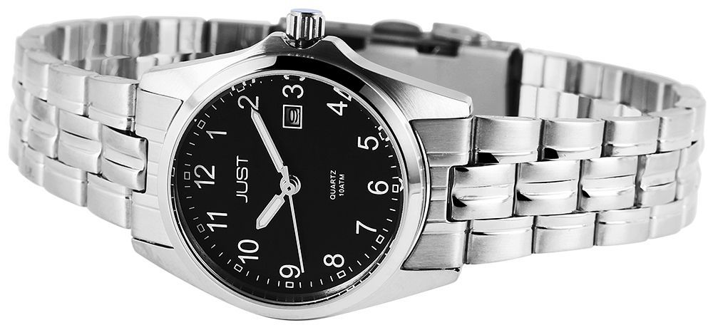 Productinformatie "Just "Esrah" roestvrijstalen damespolshorloge, 3 wijzers, datumindicatie, zilverkleurige/zwarte wijzerplaat"