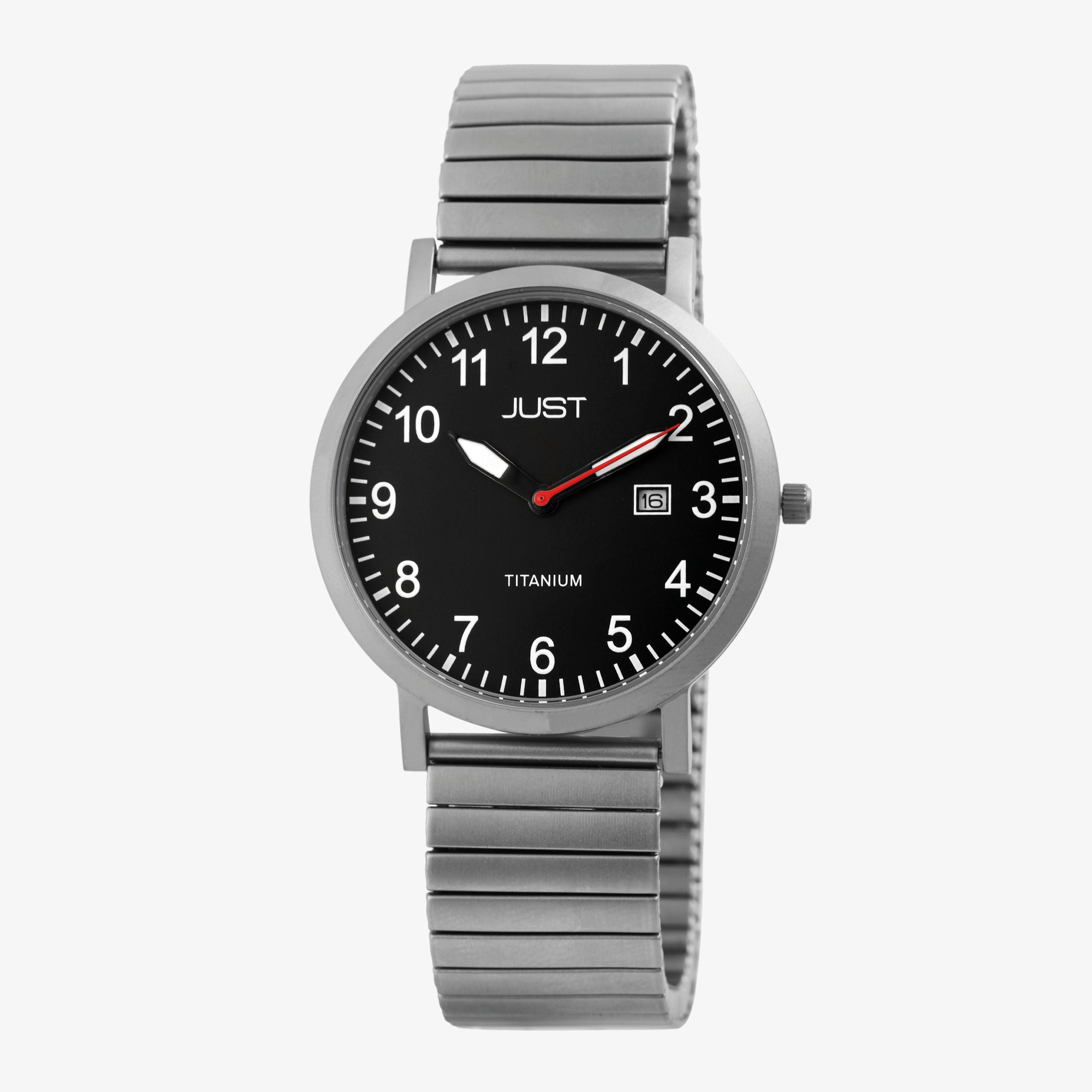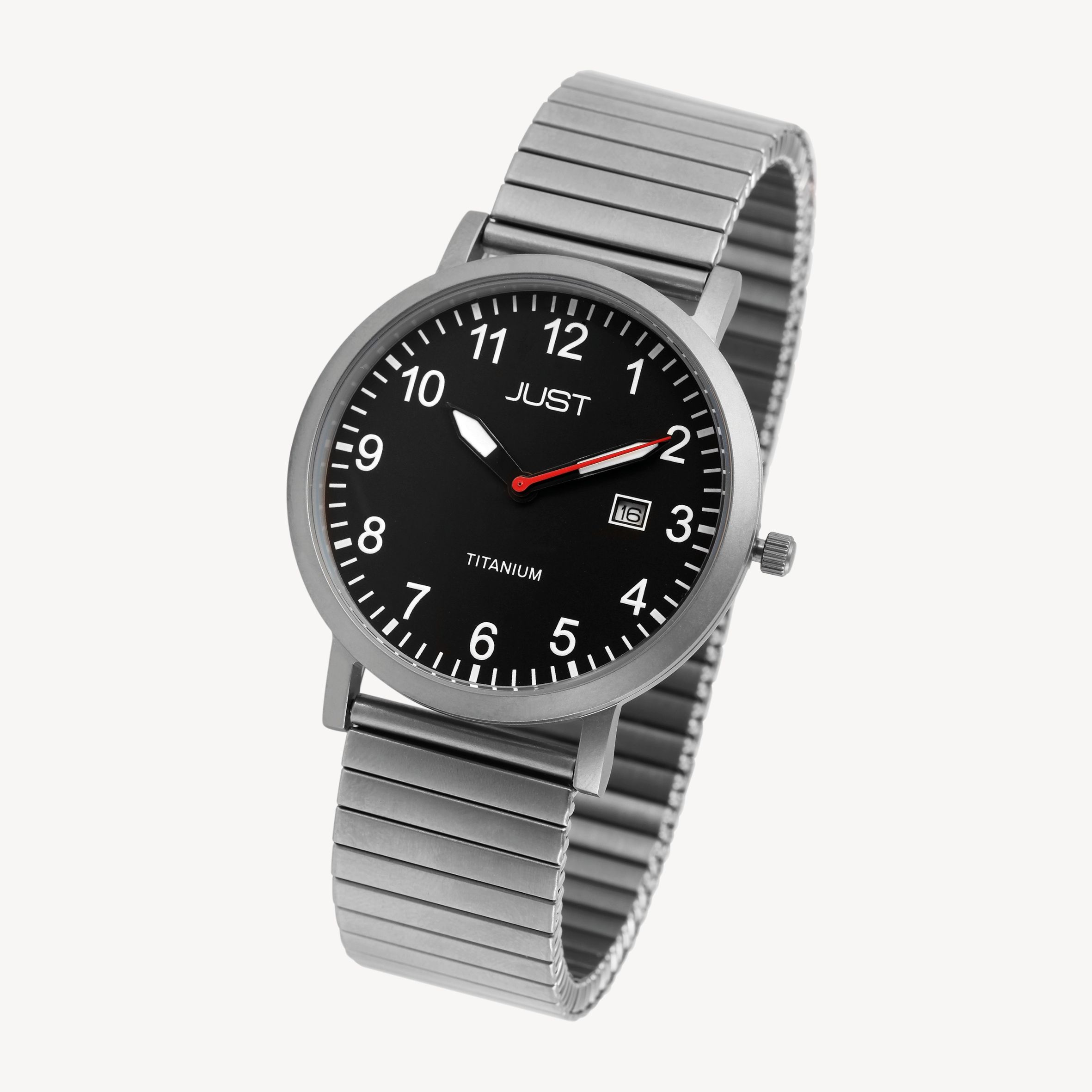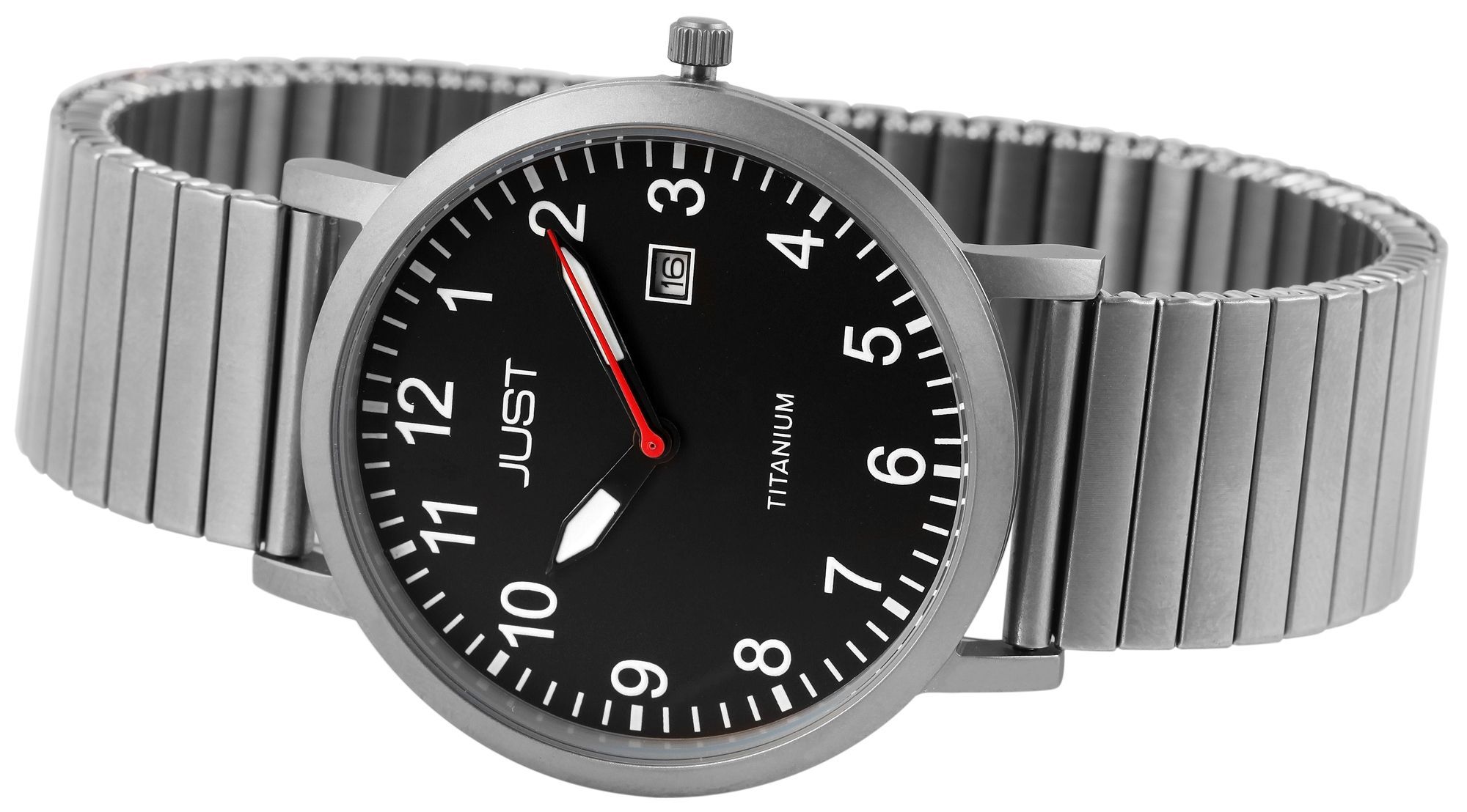 Productinformatie "Just Herrenuhr mit Zugarmband, Titan, 5 ATM, schwarzes ZB"