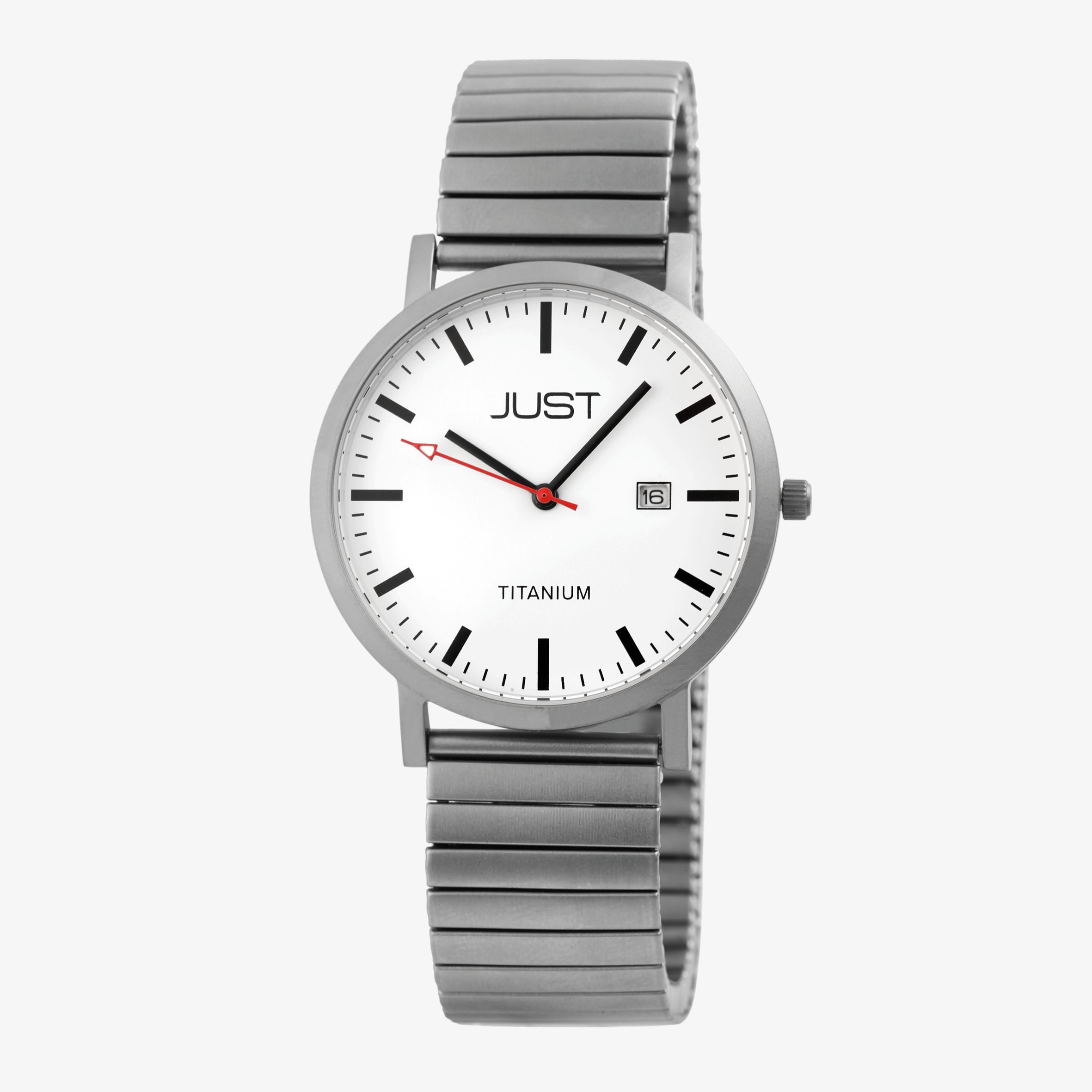 Productinformatie "Just Herrenuhr mit Zugarmband, Titan, 5 ATM, weißes ZB"