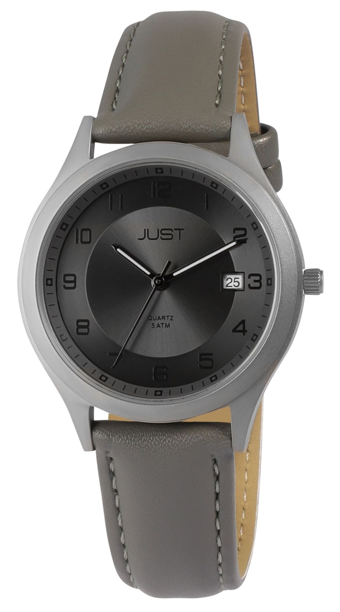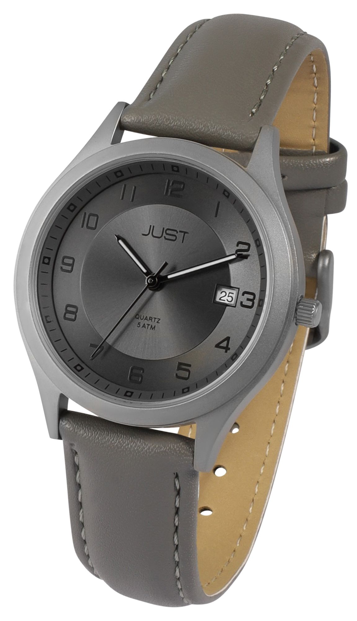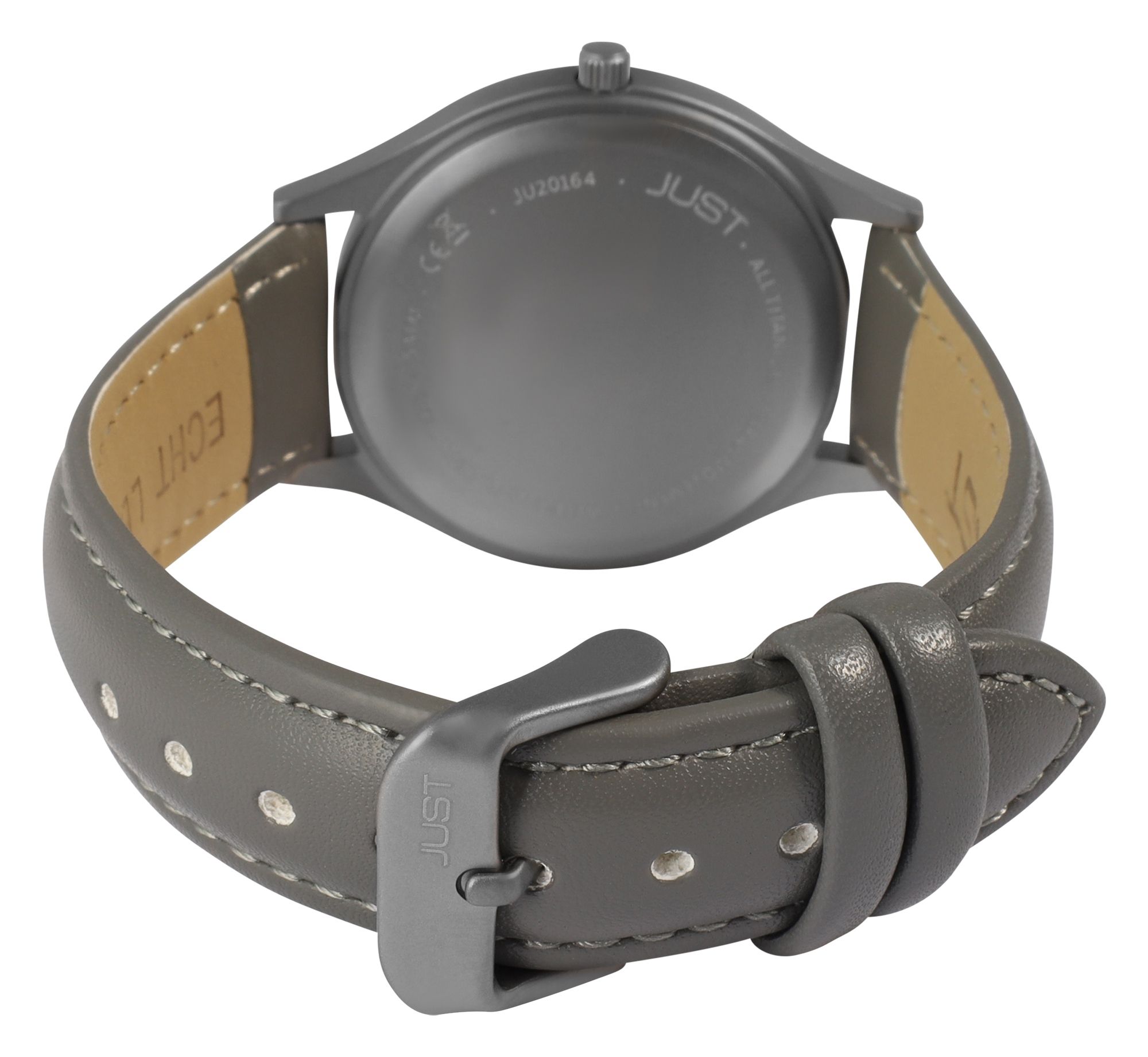 Productinformatie "Just "Leon" Herrenuhr mit Echt Lederband, Titangehäuse, 5ATM, Grau"