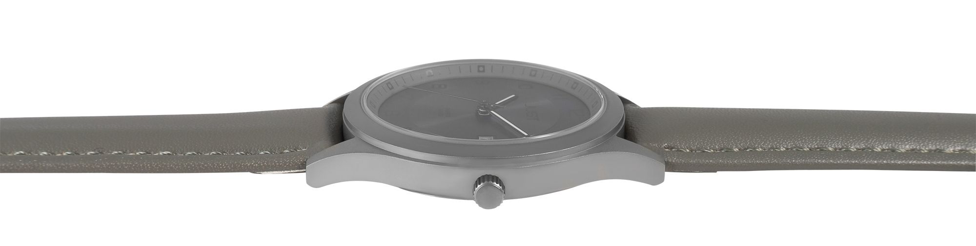 De band van echt leer met een breedte van 18 mm bij de stop biedt maximaal comfort en elegantie. Met een totale lengte van 24 cm past het horloge perfect om elke pols. De praktische datumaanduiding rondt het functionele ontwerp van het horloge af en maakt het de ideale metgezel voor elke dag.