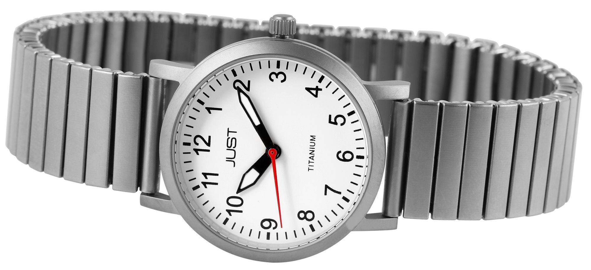 Productinformatie "Just Titan Damenuhr mit Titanzugband, weiß"