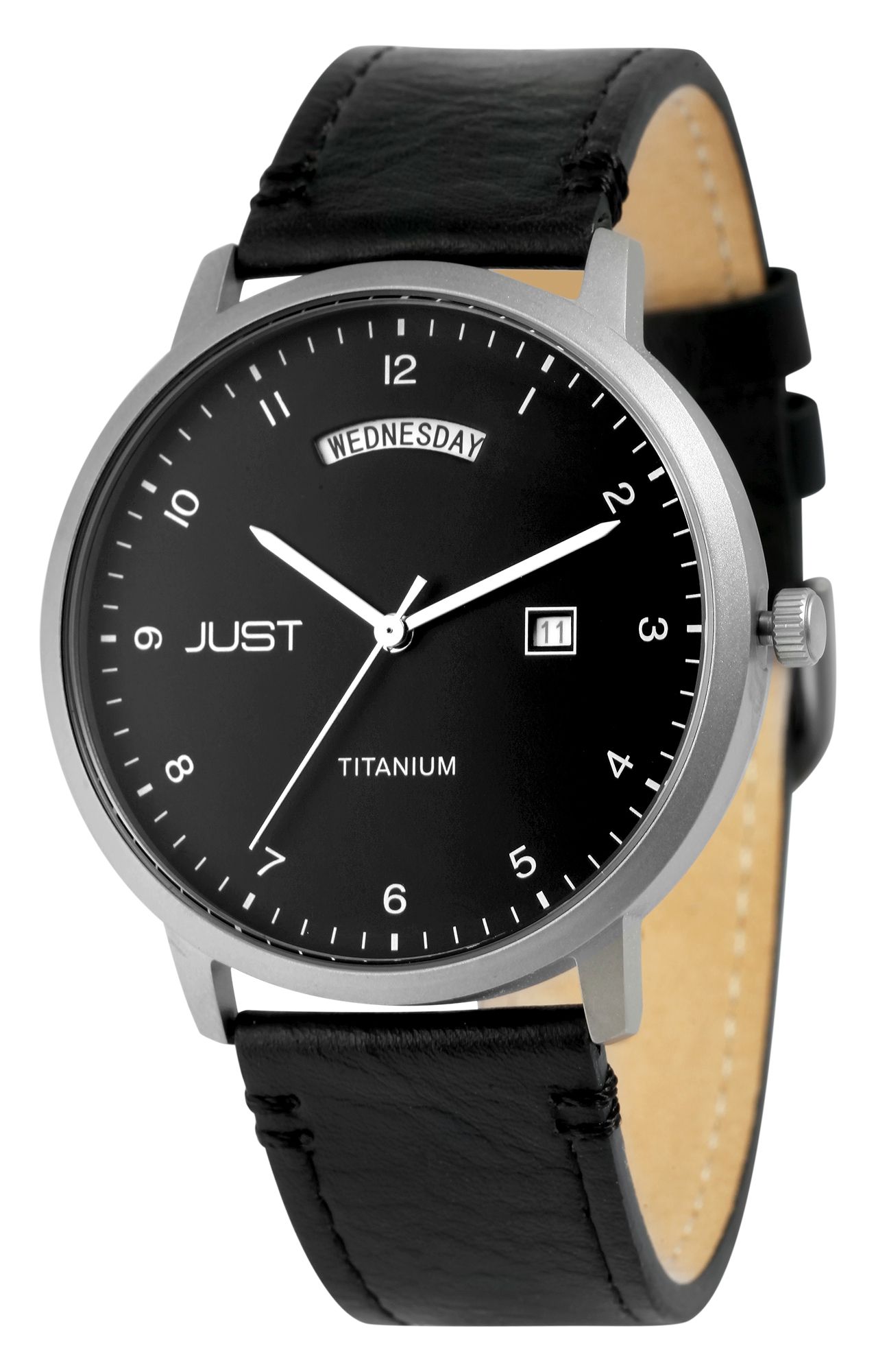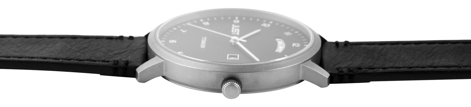 Productinformatie "Just Titan Herrenuhr mit Echtlederarmband, 5 ATM, schwarz"
