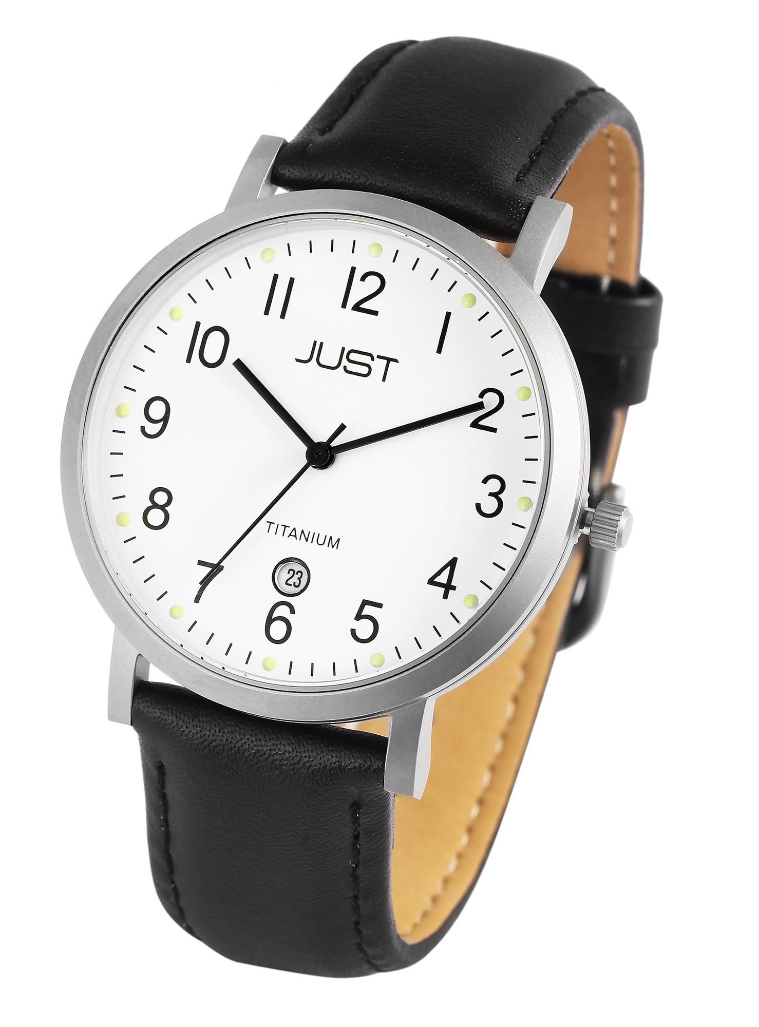 Productinformatie "Just Titan Herrenuhr mit Echtlederband, 5 ATM, schwarz/weiß"