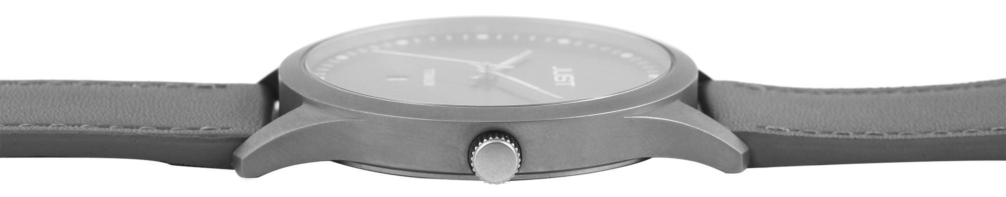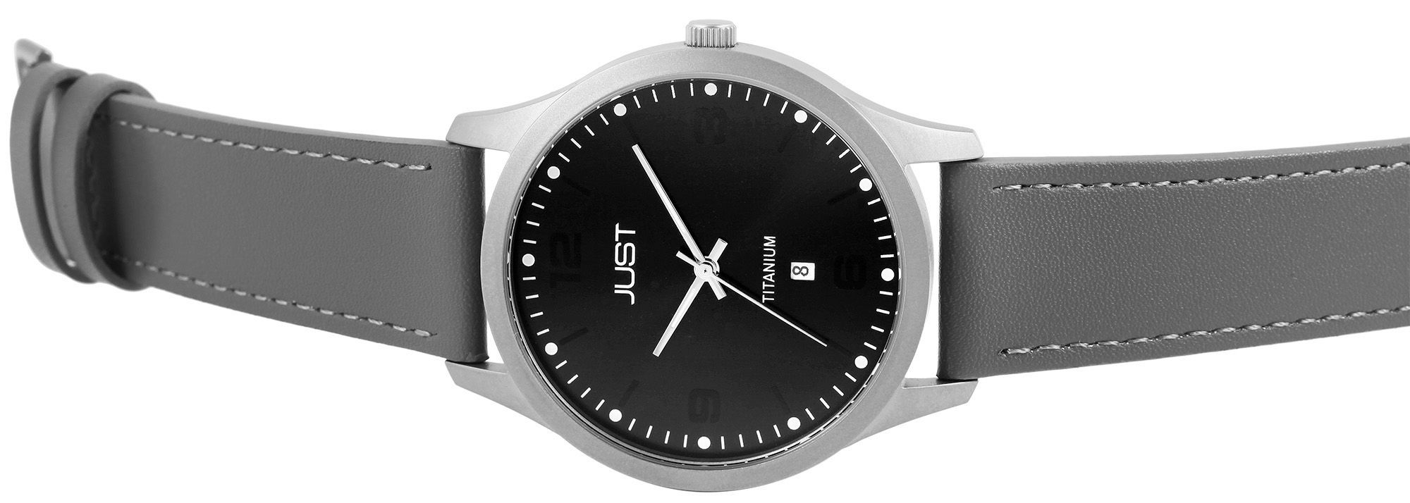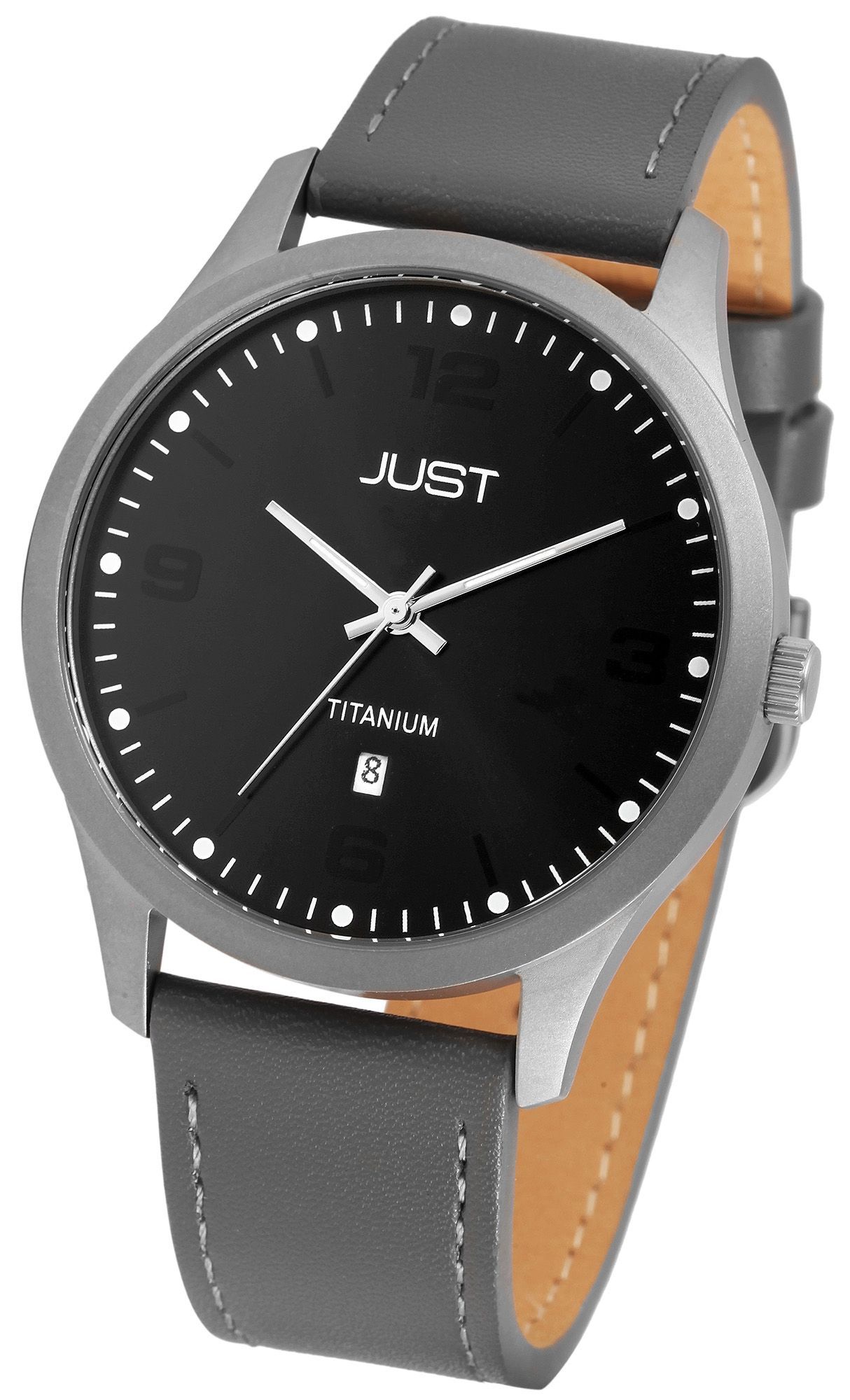 Productinformatie "Just Titan herenhorloge met echt lederen band grijs"