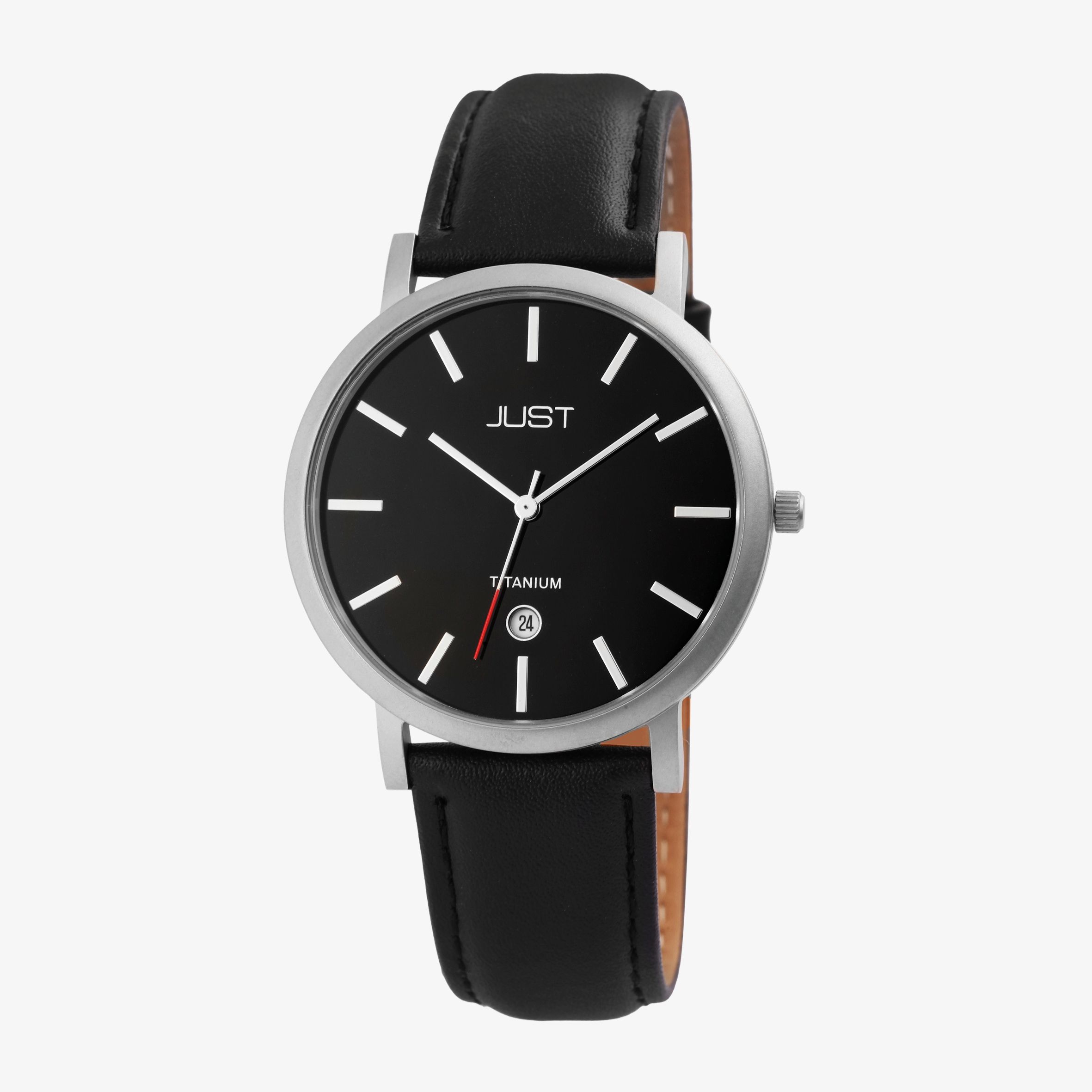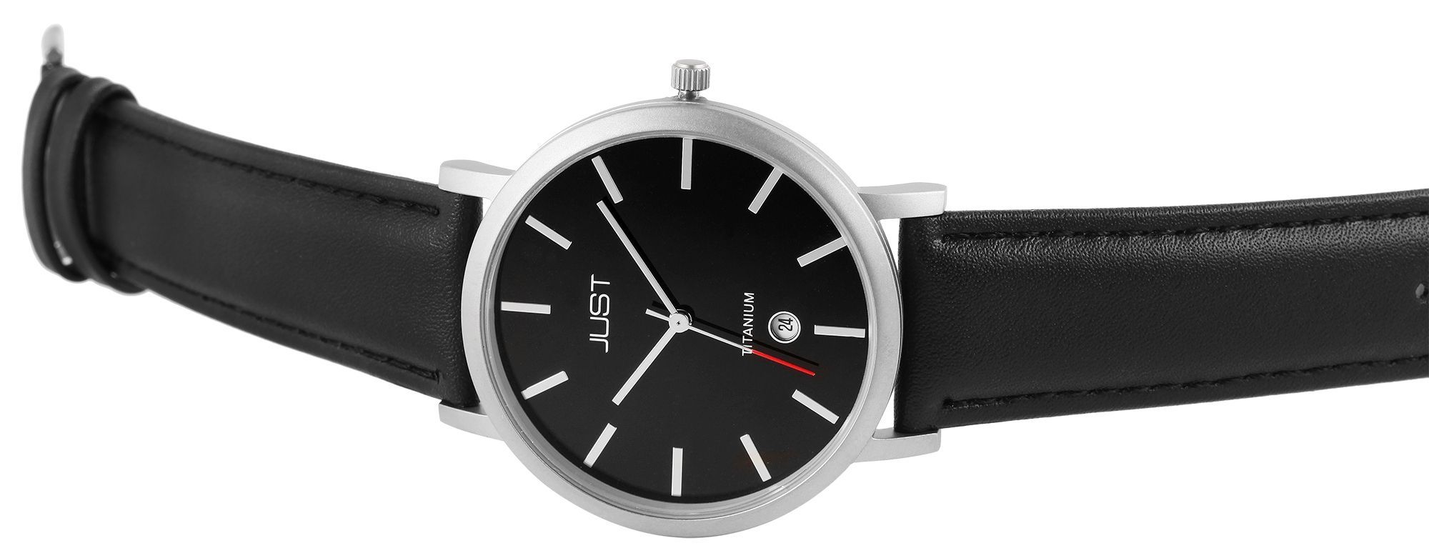 Productinformatie "Just Titan herenhorloge met echt lederen band zwart"