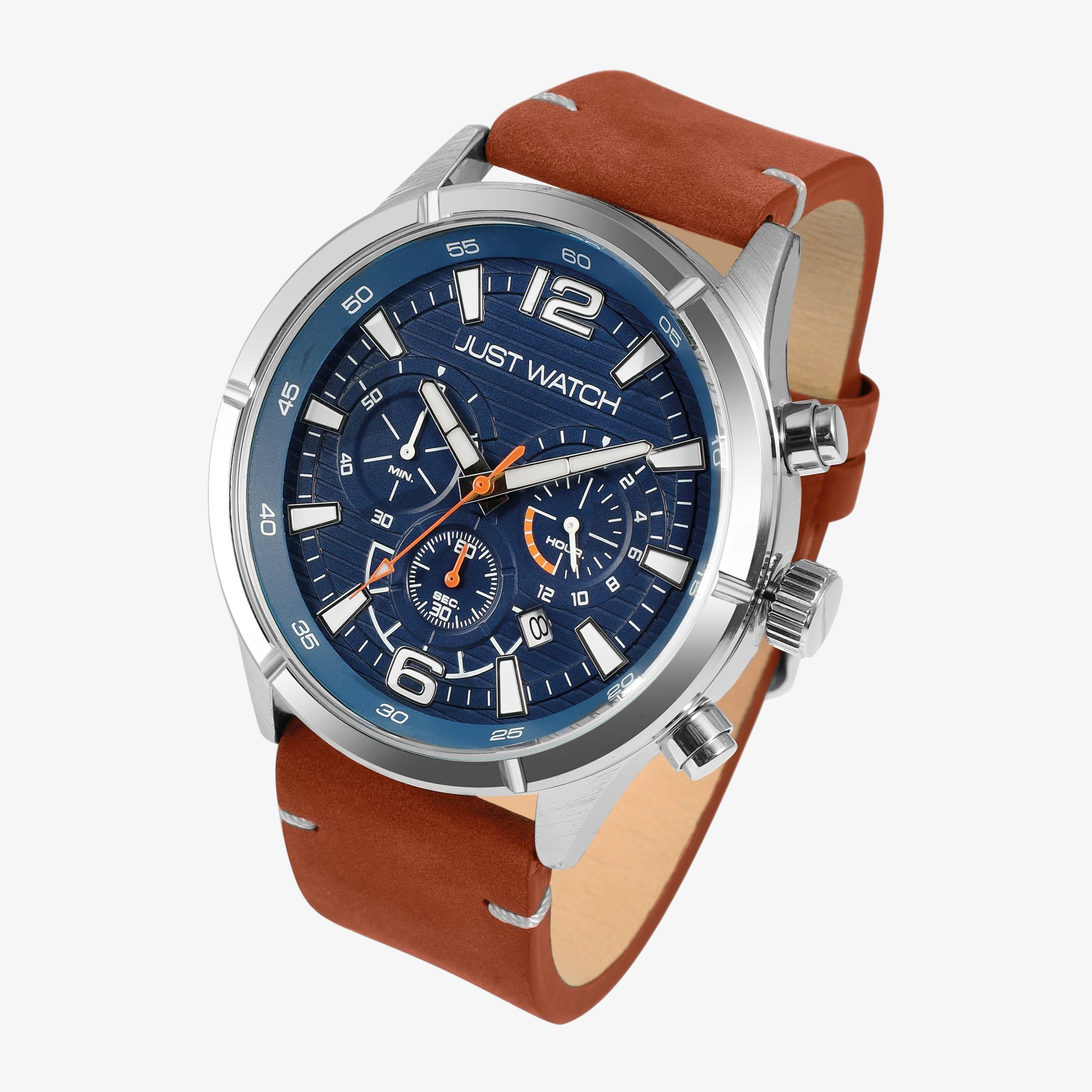 Ontdek de symbiose van elegantie, functionaliteit en individualiteit met onze Just Watch herenchronograaf met leren band en laat je inspireren door de precisie en schoonheid van dit uurwerk!