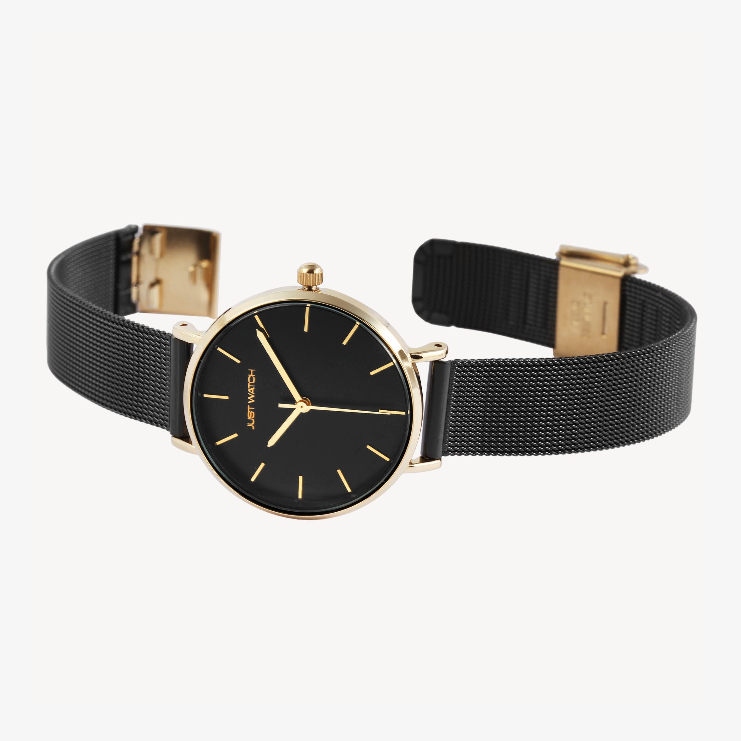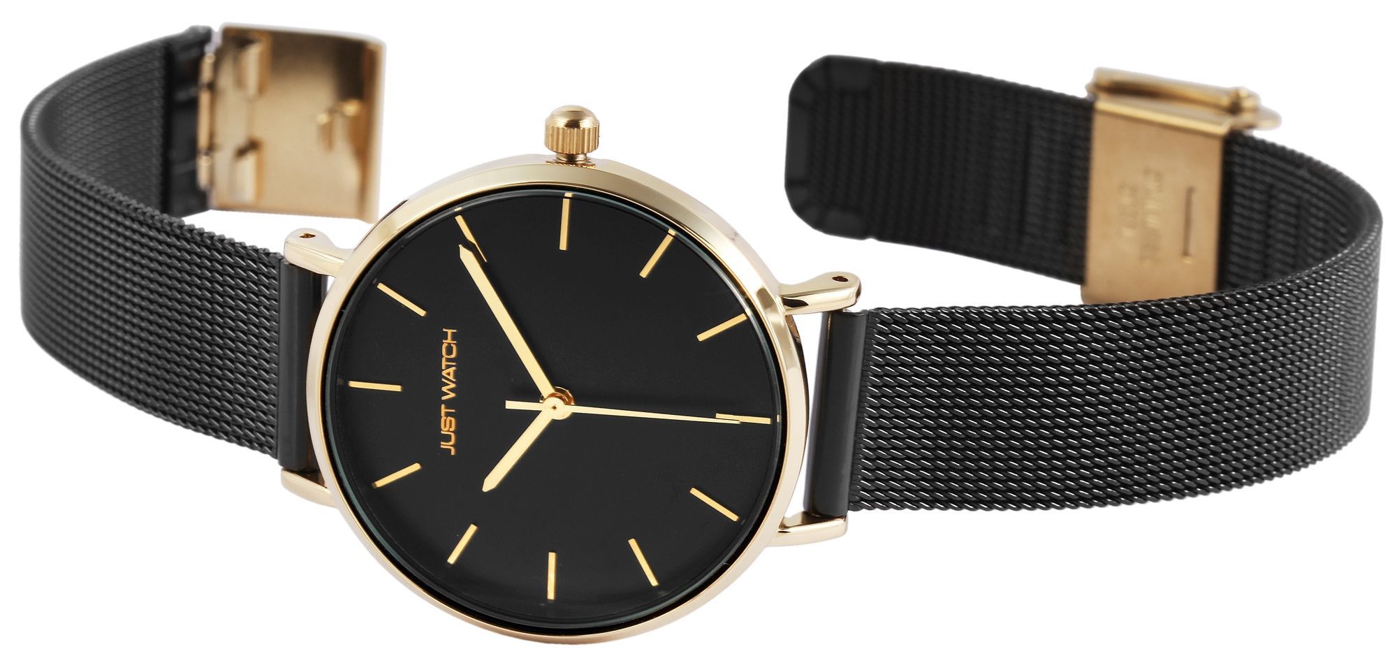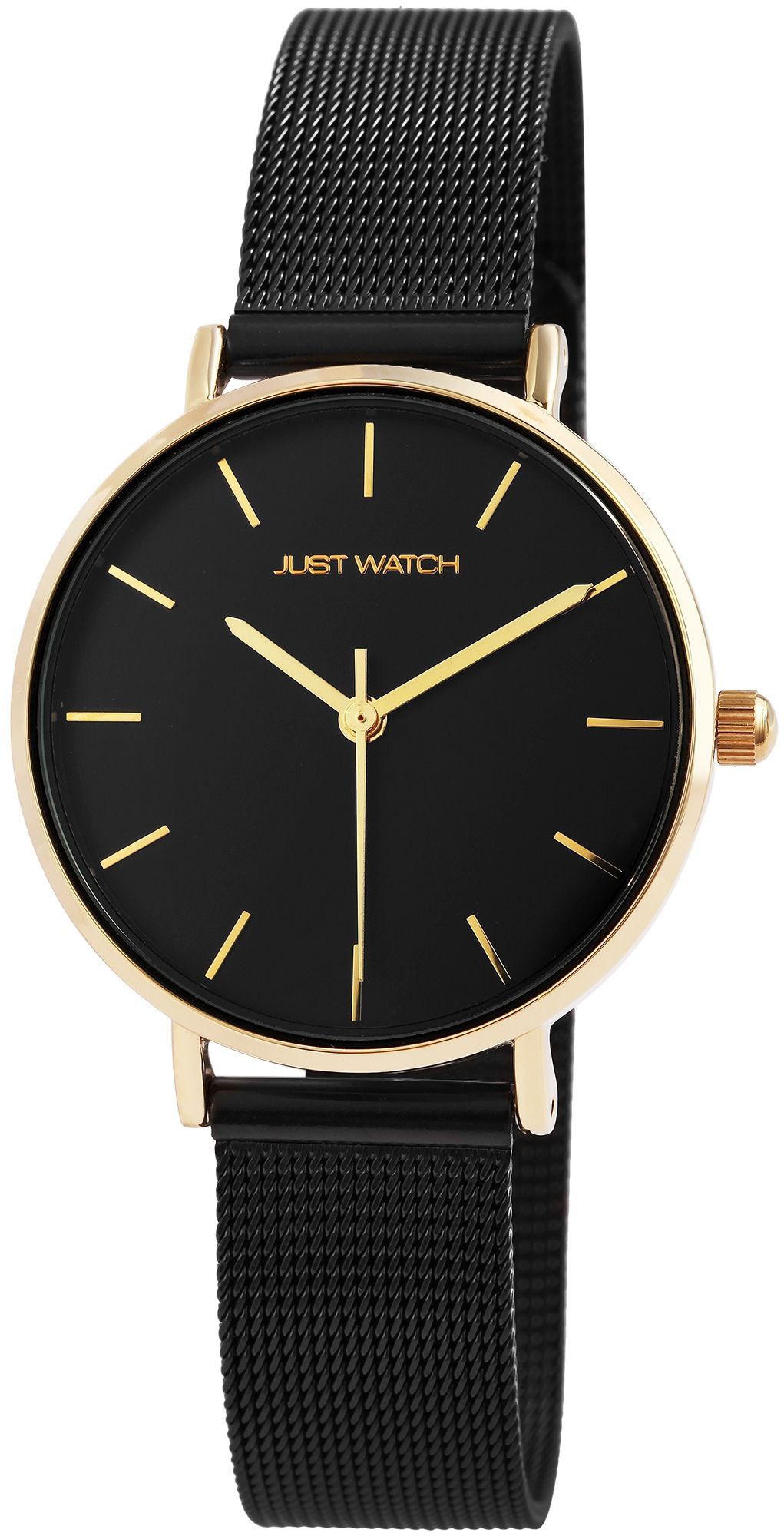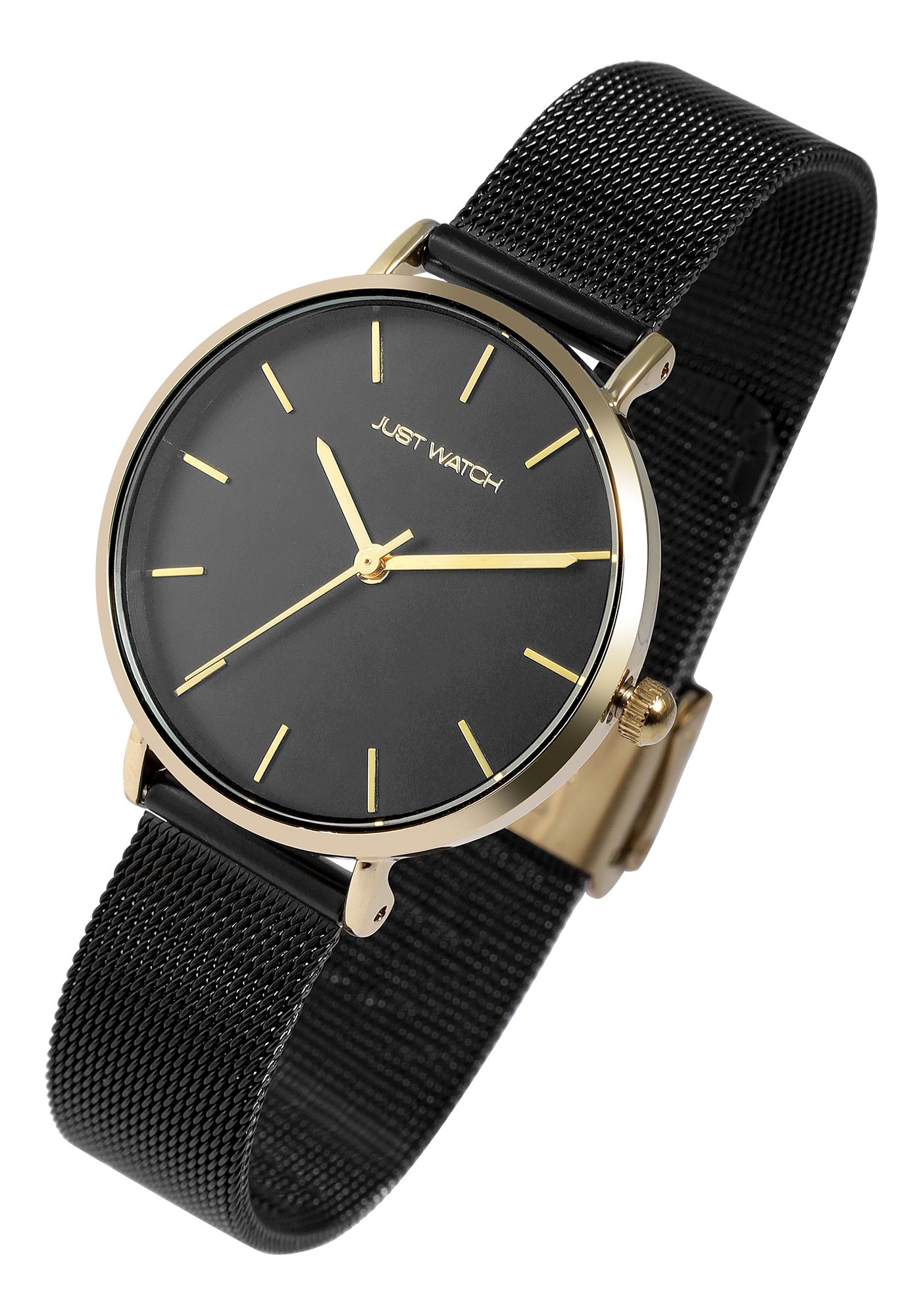 Productinformatie "Just Watch Damenarmbanduhr, Milanesearmband, schwarz/goldfarben"